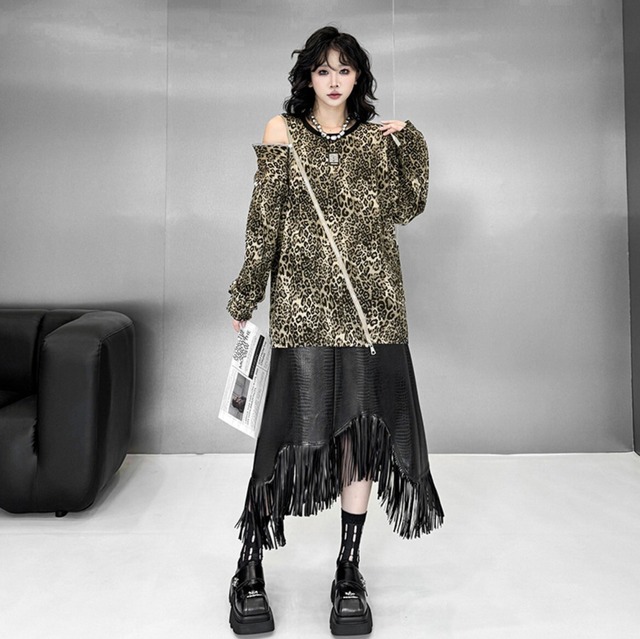 レオパードジップワンショルダープルオーバー/レディース 韓国ファッション モード系|NEIRA