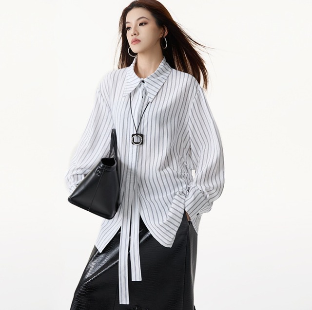 モダンロングタイストライプシャツ/レディース 韓国ファッション モード系|NEIRA