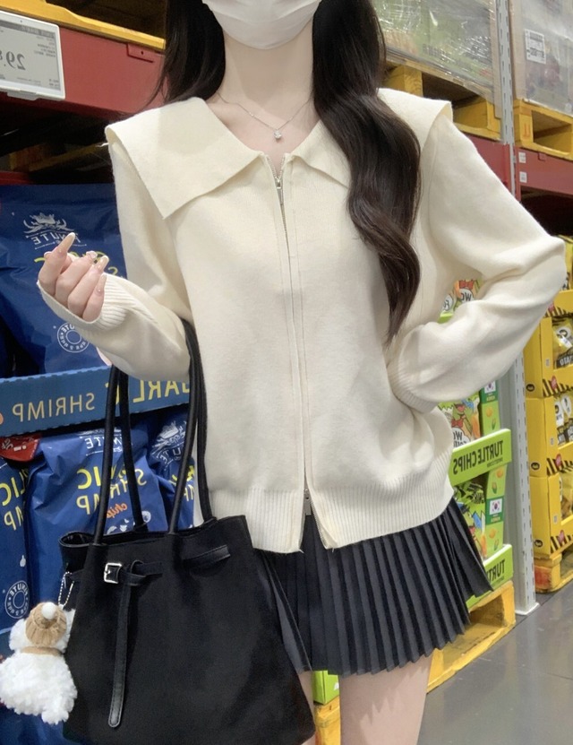 ビッグセーラーカラー 2WAYジップ ニットカーディガン/レディース 韓国ファッション モード系|NEIRA