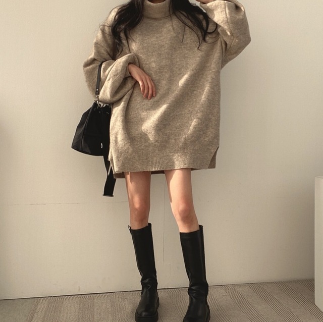 オーバーサイズ タートルネックニットワンピ/レディース 韓国ファッション モード系|NEIRA