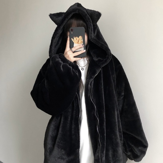 猫耳もこもこファージップフーディ オーバーサイズ/レディース 韓国ファッション モード系|NEIRA