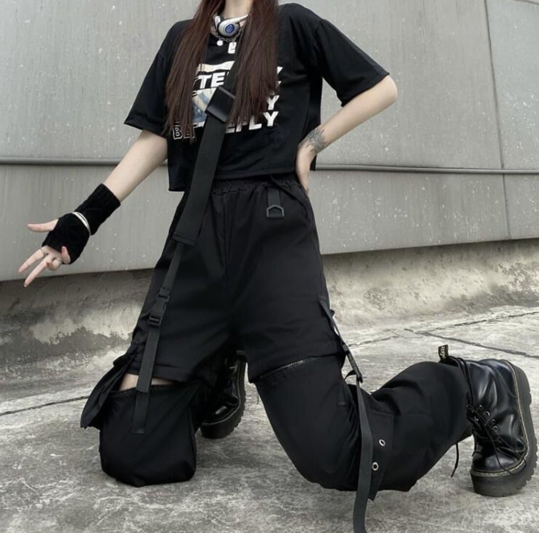 #2wayパンツ #取り外しパンツ #変形パンツ #カーゴパンツ #サイバーパンク #暗黒系 #Y2Kファッション #ストリート系女子 #韓国ファッション #ホワイトコーデ #ブラックコーデ #テック系ファッション #個性派ファッション #レッグストラップ #モードストリート #NEIRA