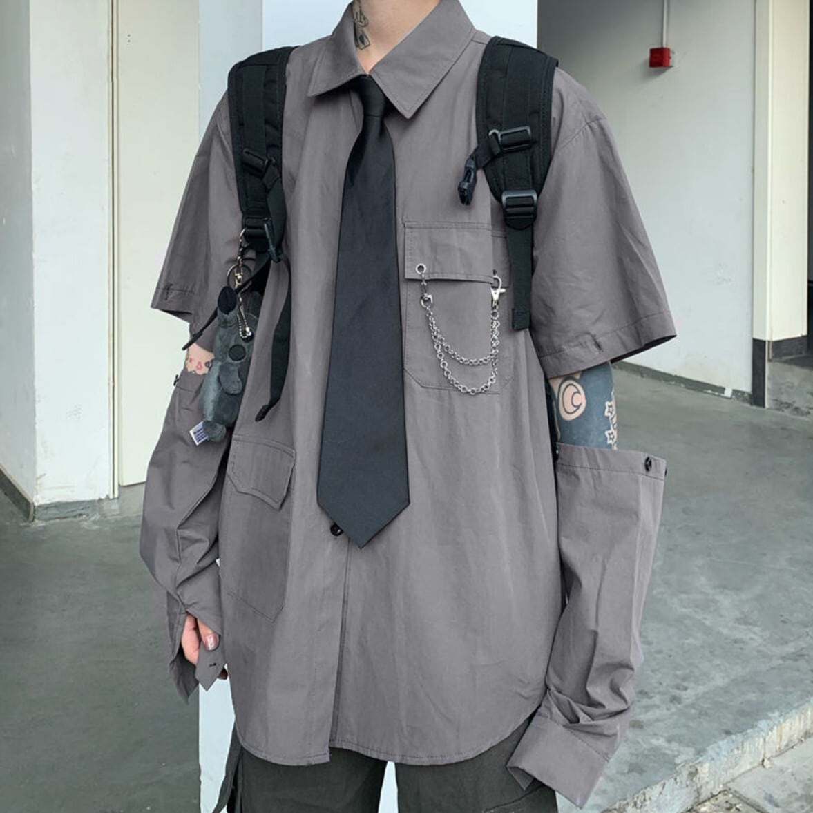 #袖着脱シャツ #チェーンシャツ #デザインシャツ #ユニセックス #原宿系 #ダークファッション #モードストリート #オーバーサイズシャツ #ネクタイ付きシャツ #NEIRA