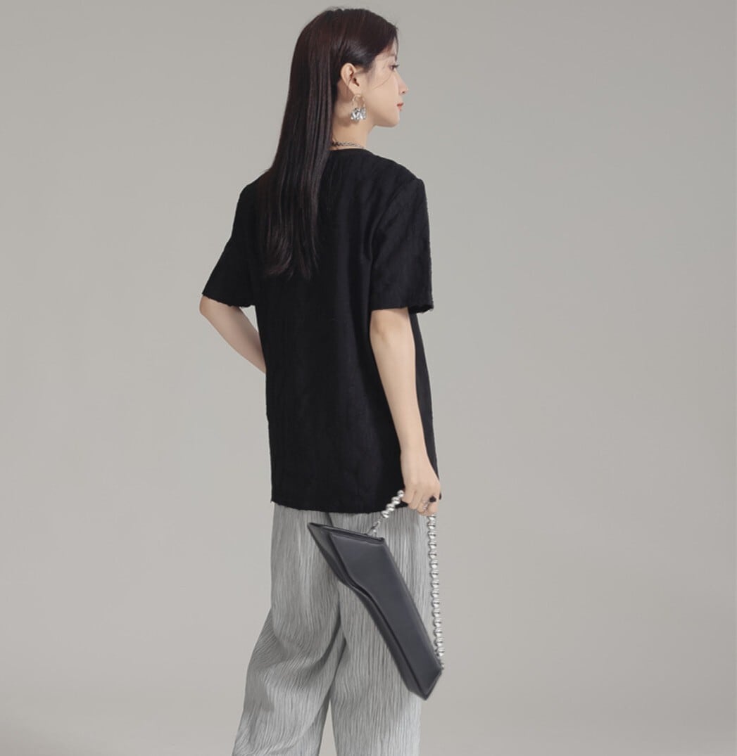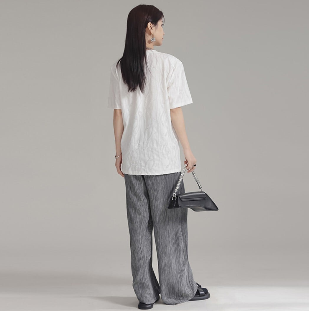 波柄テクスチャーアシンメトリーTシャツ/ユニセックス 韓国ファッション モード系|NEIRA
