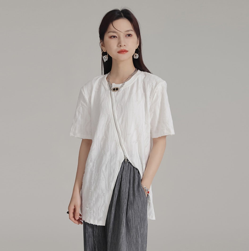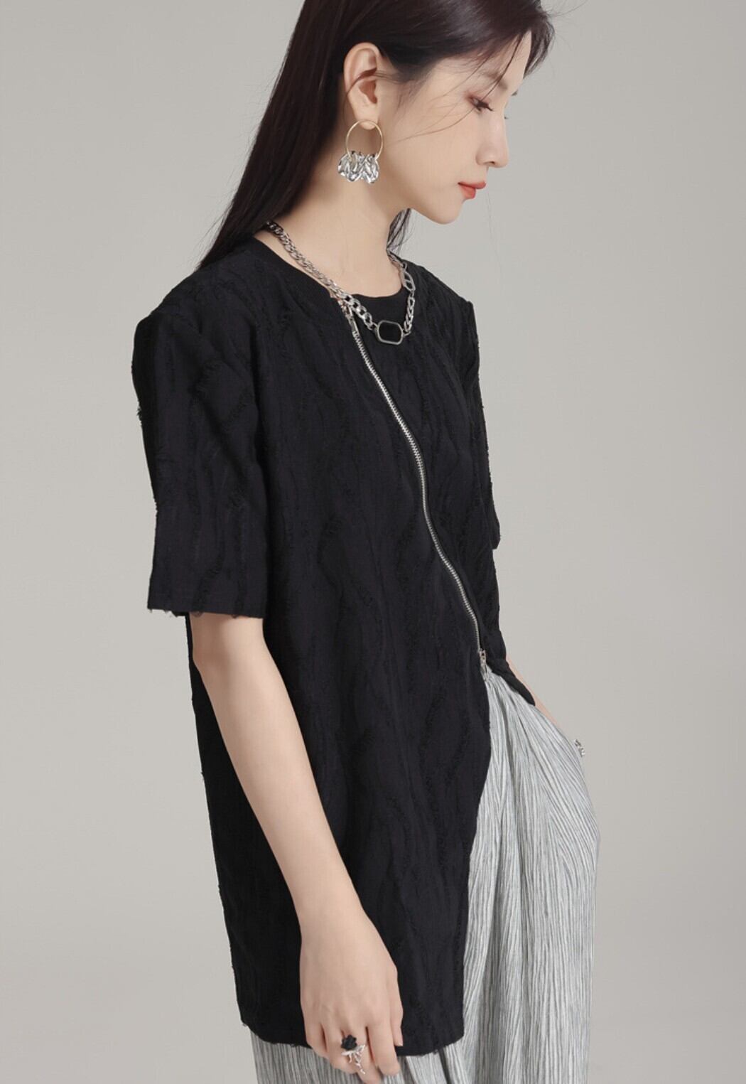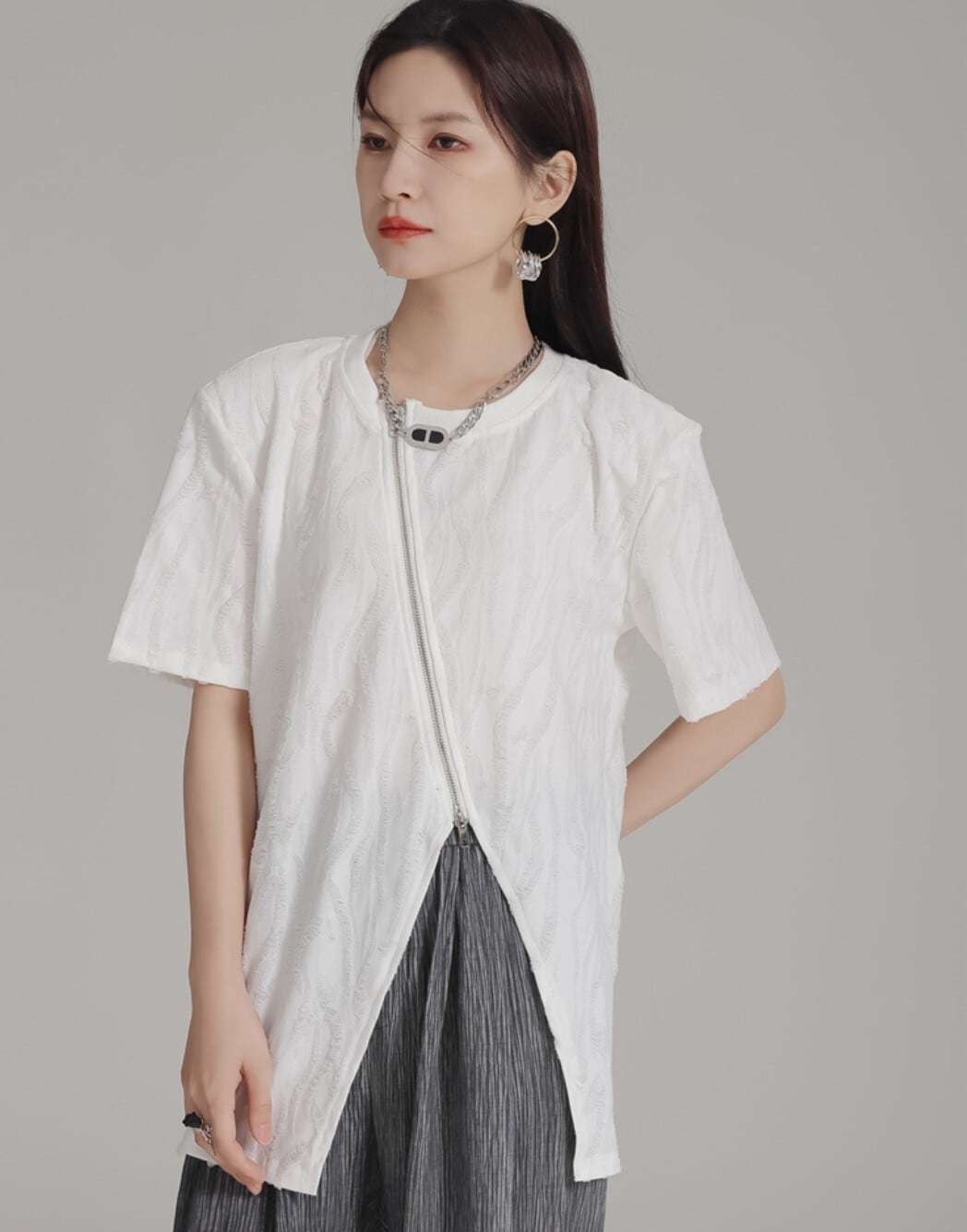 #NEIRA #トップス #Tシャツ #半袖 #アシメジップ #スリットデザイン #テクスチャー生地 #韓国ファッション #モード系 #ダークファッション #個性派ファッション