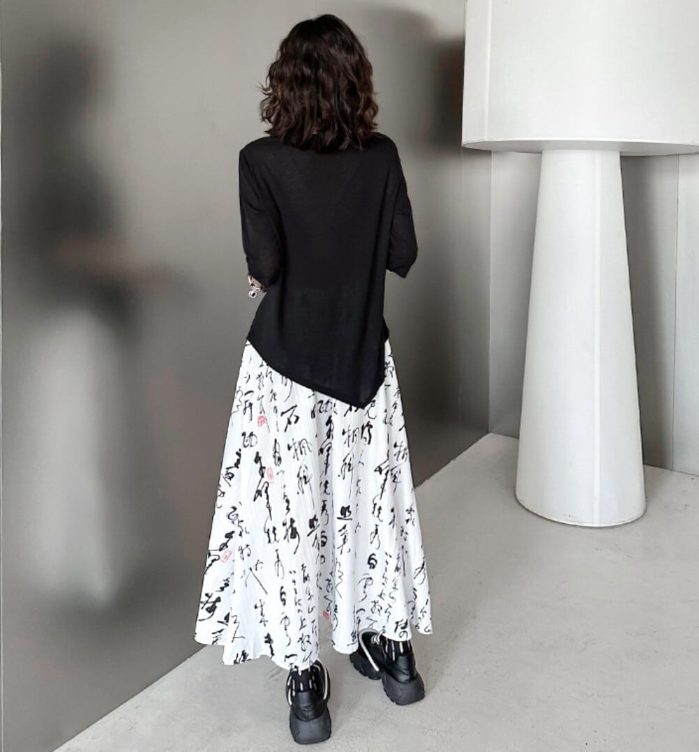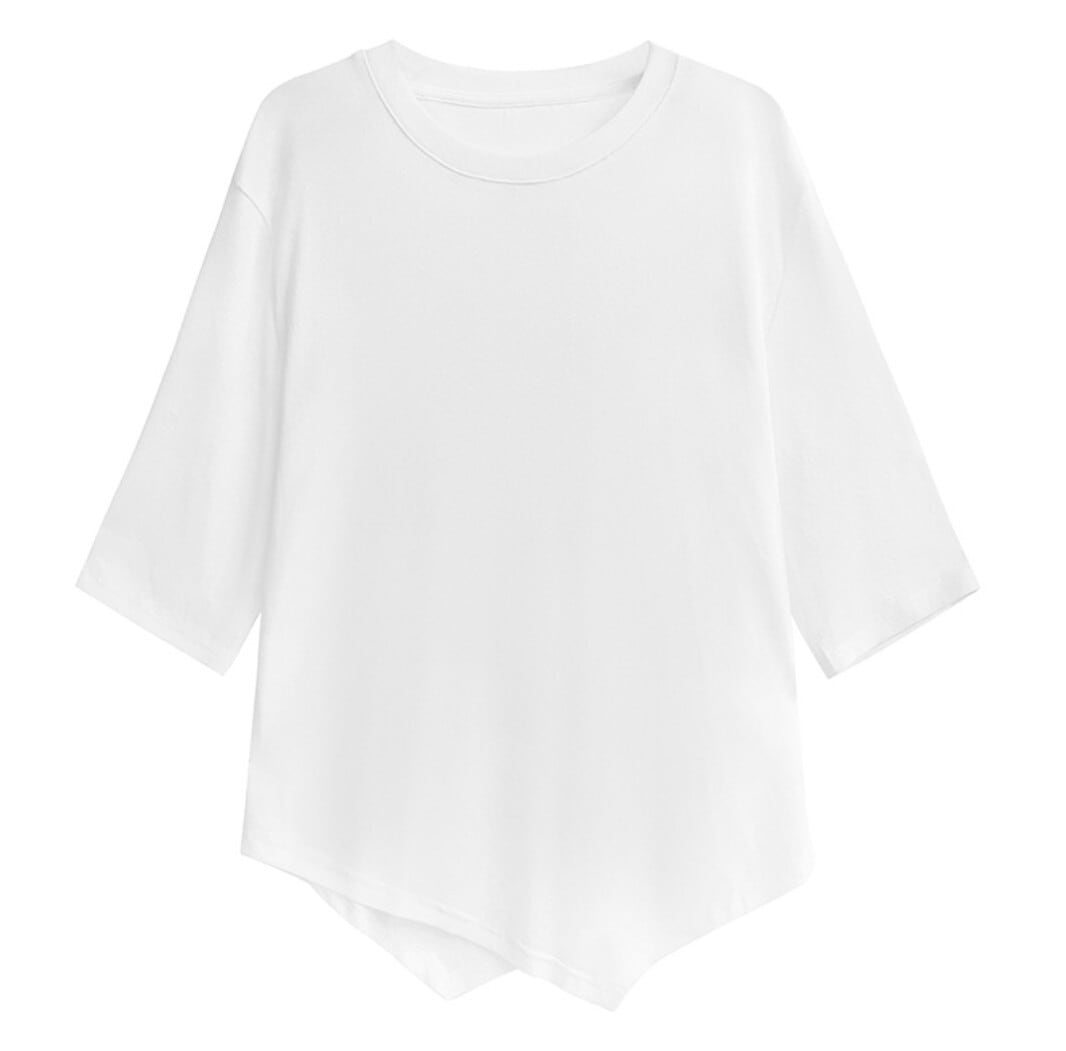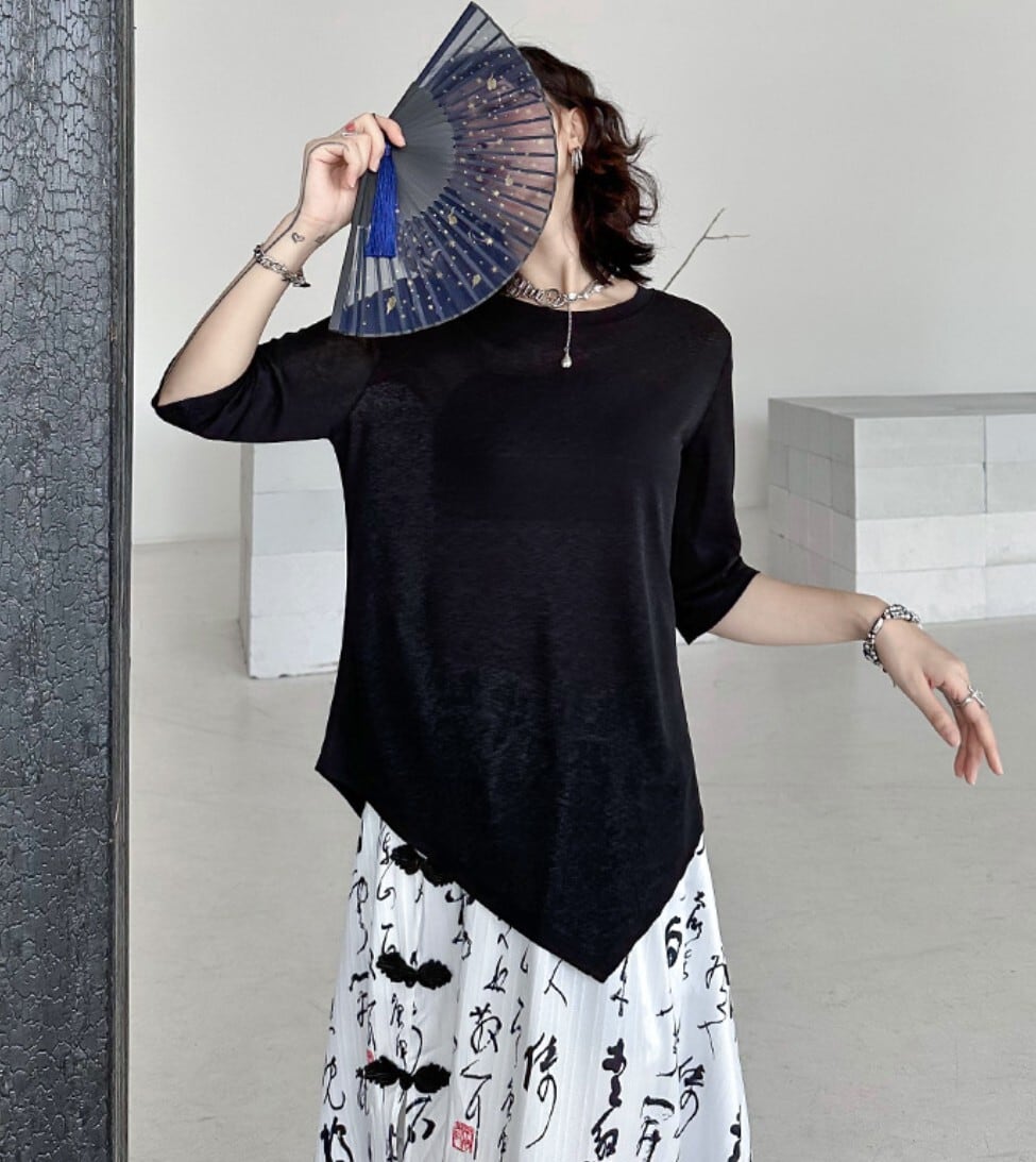 #Tシャツ #5分袖トップス #アシンメトリー #モード系 #韓国ファッション #ゆったりシルエット #ブラックコーデ #ホワイトコーデ #夏コーデ #カジュアルコーデ