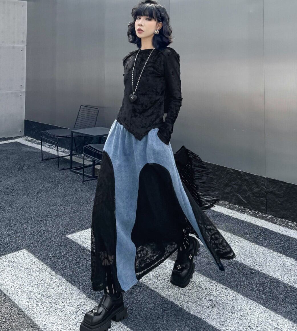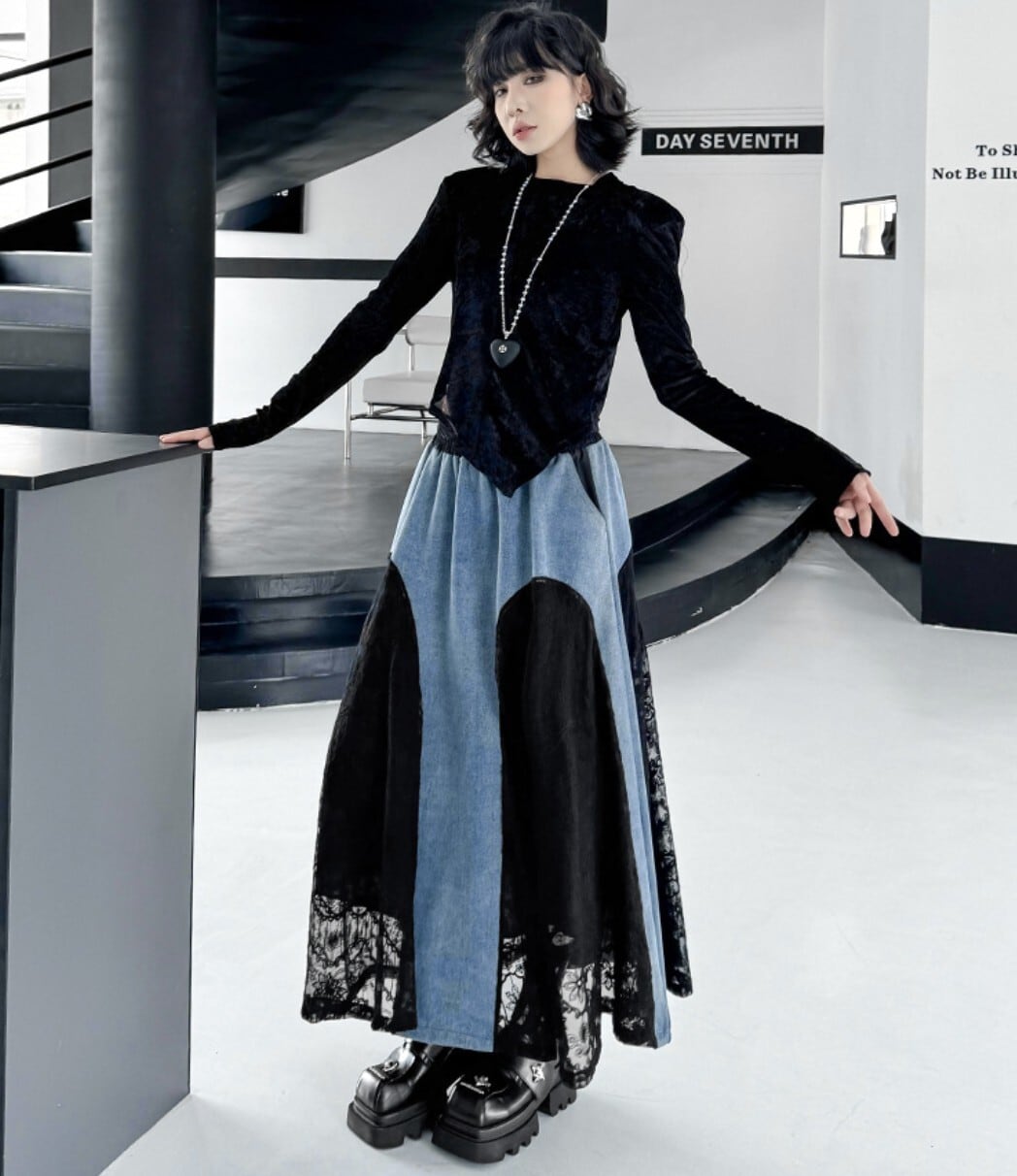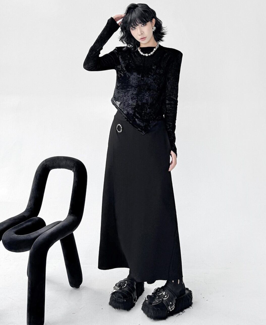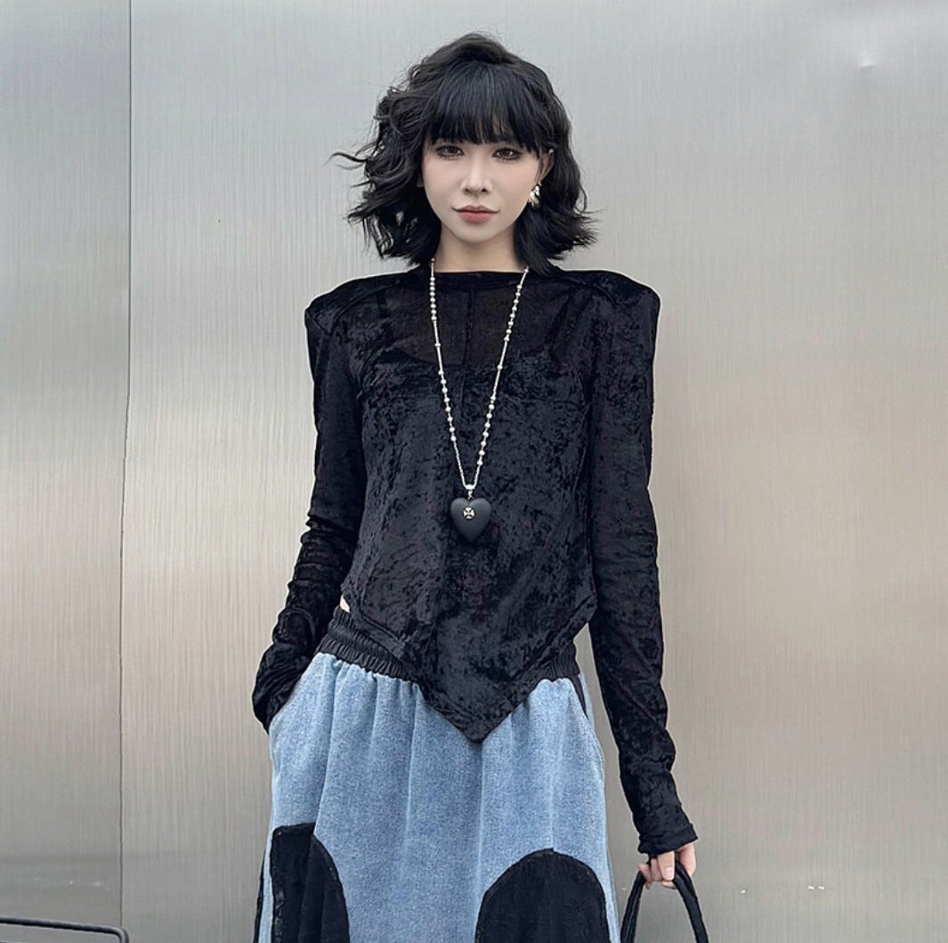 #トップス #長袖 #ベロア #ショルダーパッド #アシンメトリー #ブラック #モード #韓国ファッション #ダークファッション #NEIRA