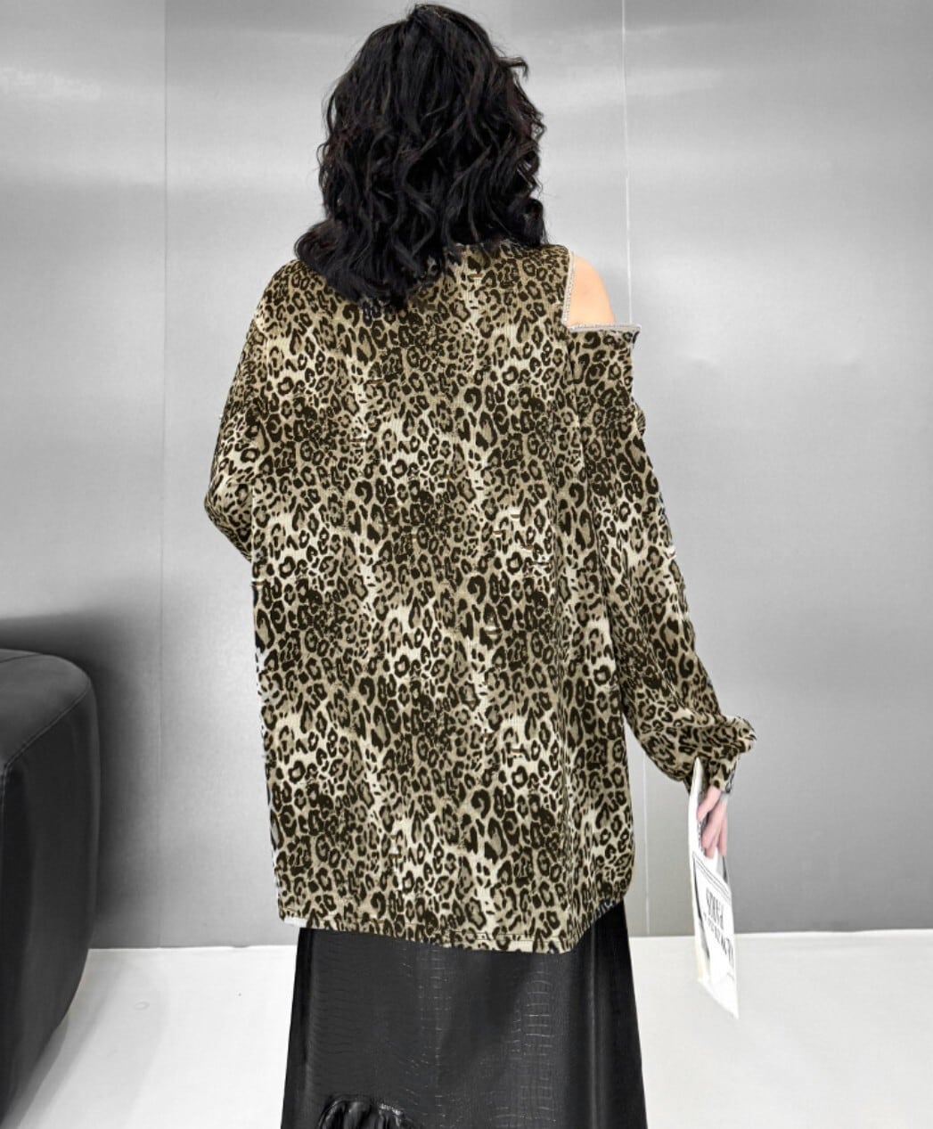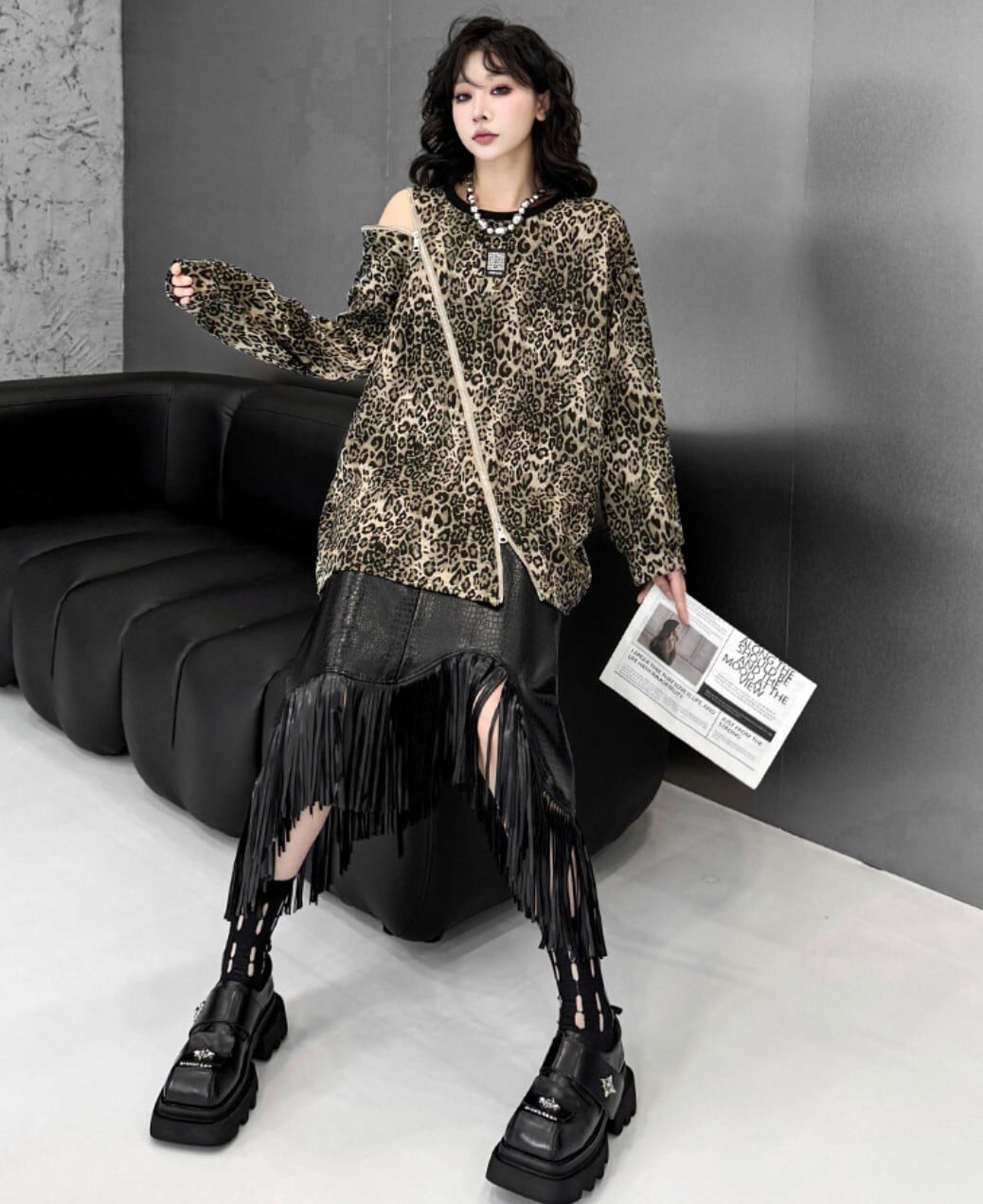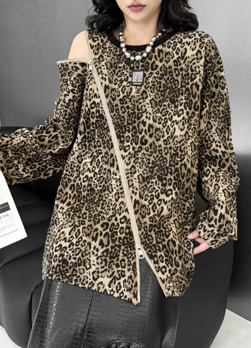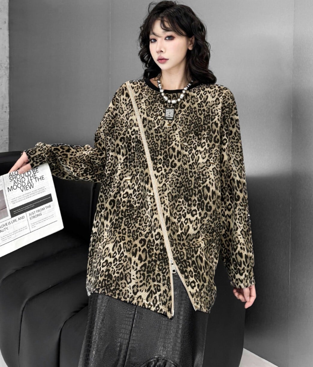 レオパードジップワンショルダープルオーバー/レディース 韓国ファッション モード系|NEIRA