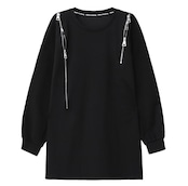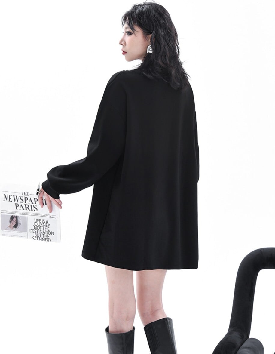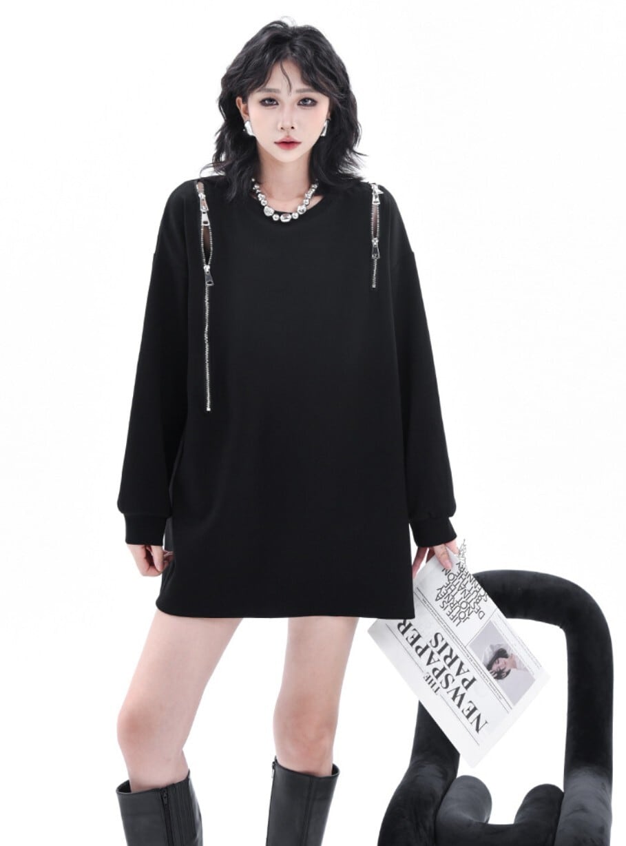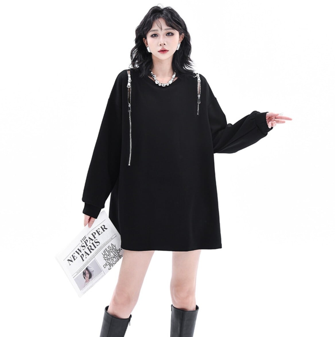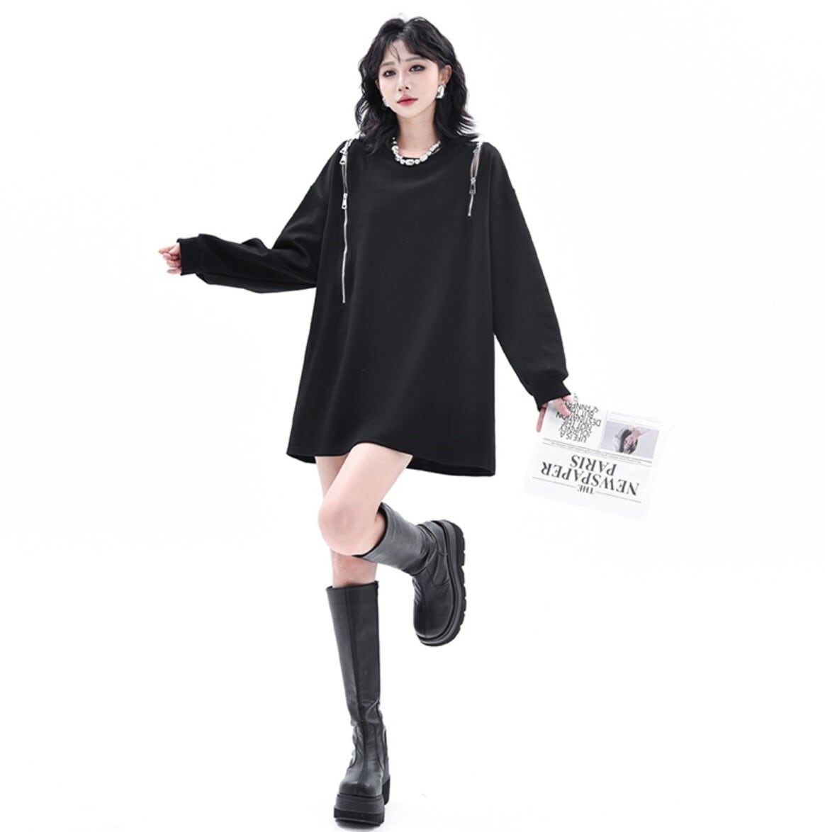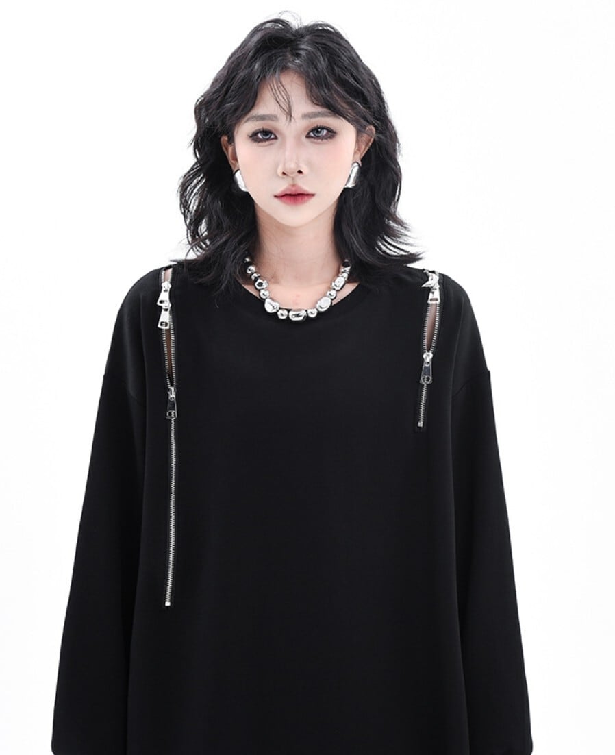 #スウェット #トレーナー #ロングトップス #ショルダージップ #オーバーサイズ #モノトーン #ミニ丈 #モード系 #韓国ファッション #ブラックトップス #NEIRA