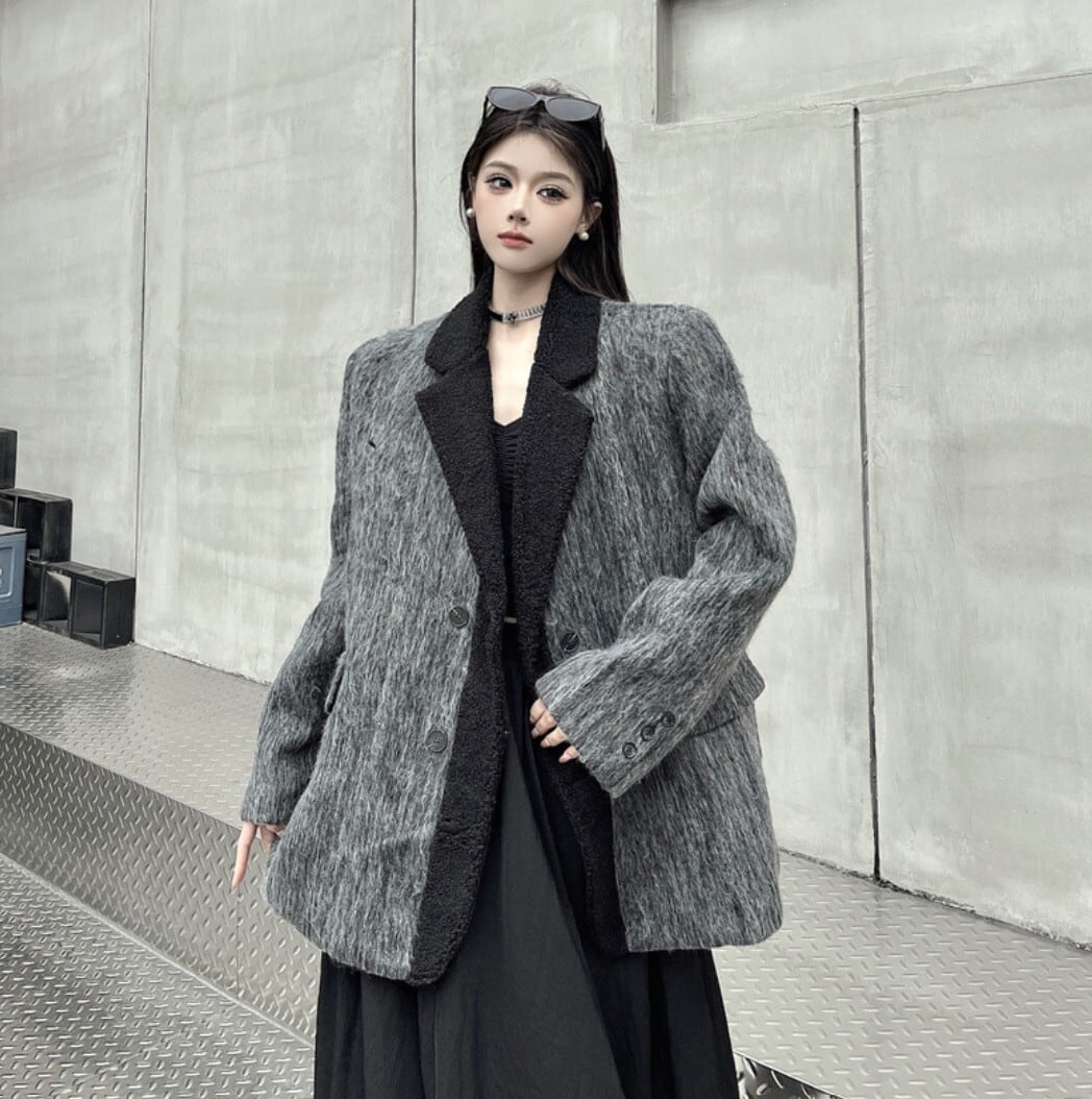 #アウター #ジャケット #テーラードジャケット #オーバーサイズ #ビッグシルエット #ボア襟 #ラペルデザイン #ヘアリー素材 #グレー #ブラック #モード系 #韓国ファッション #ダークファッション #ユニセックス #きれいめモード #NEIRA