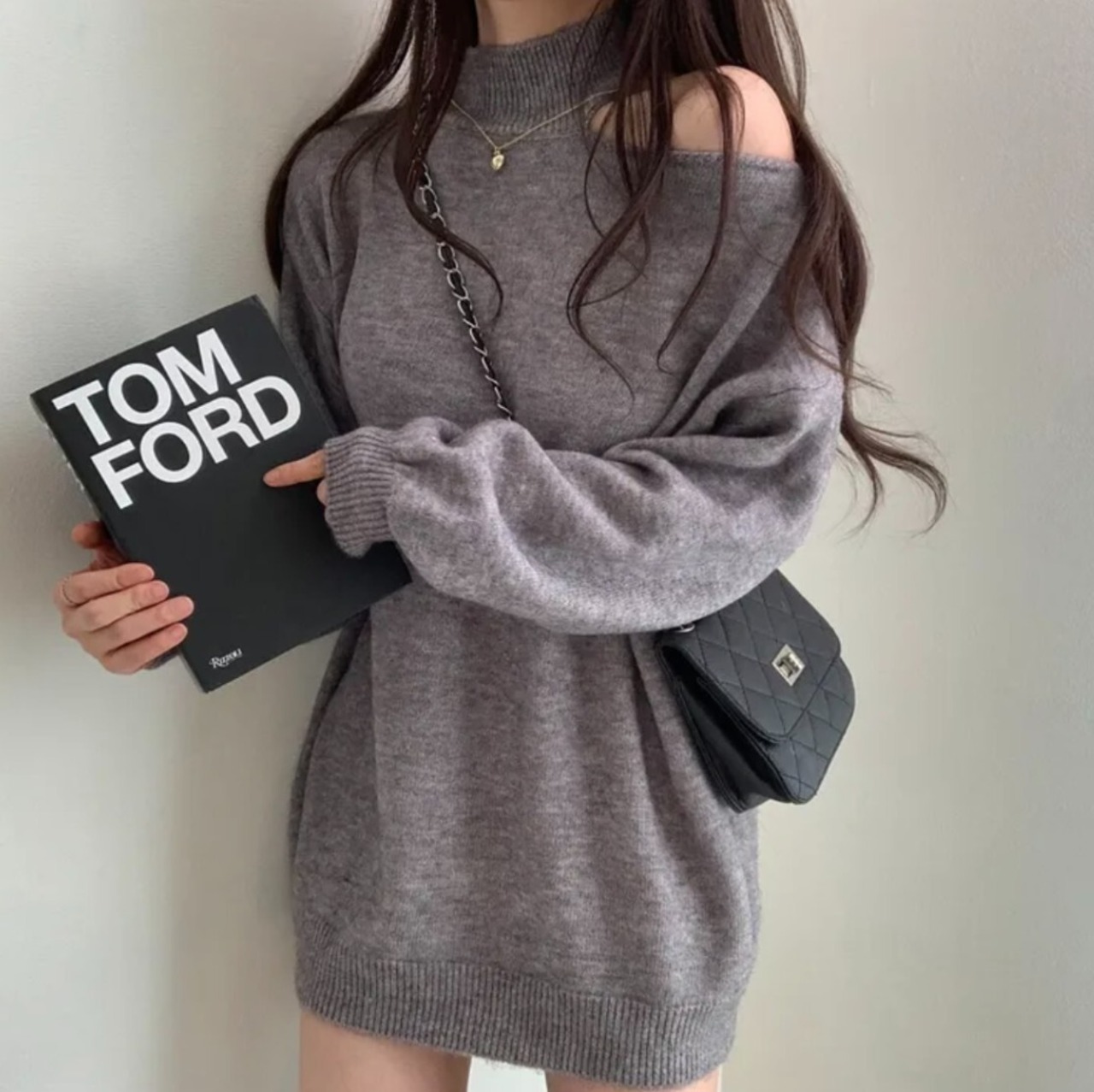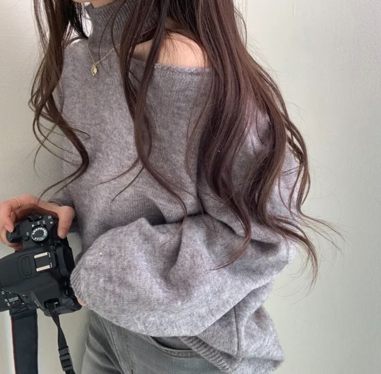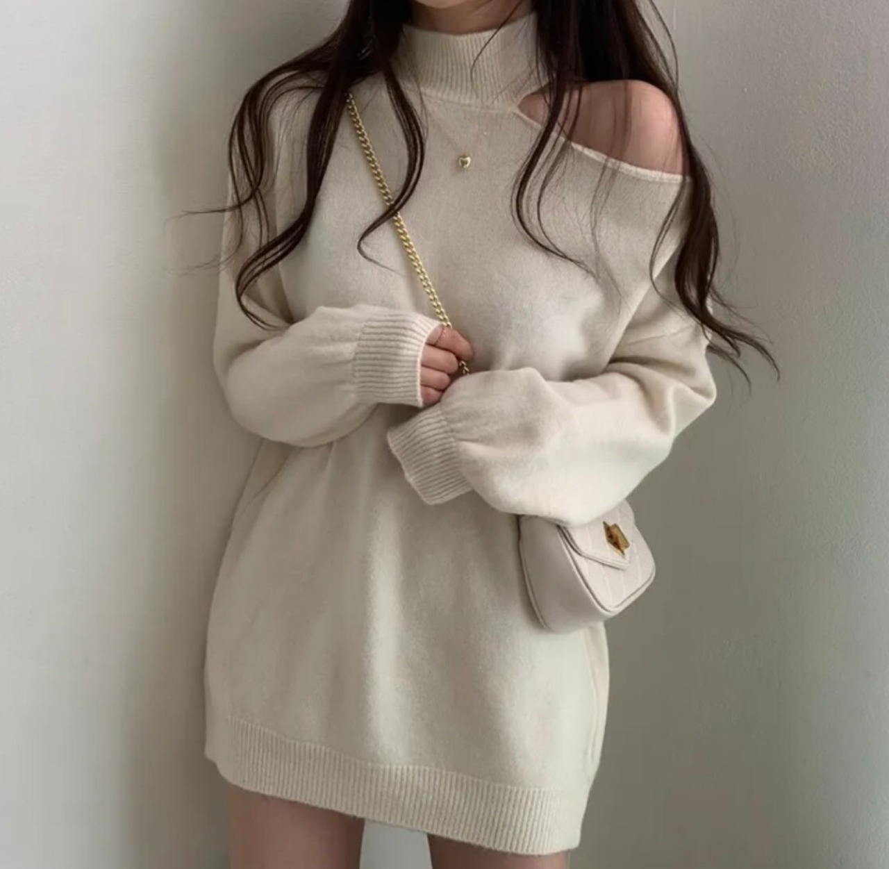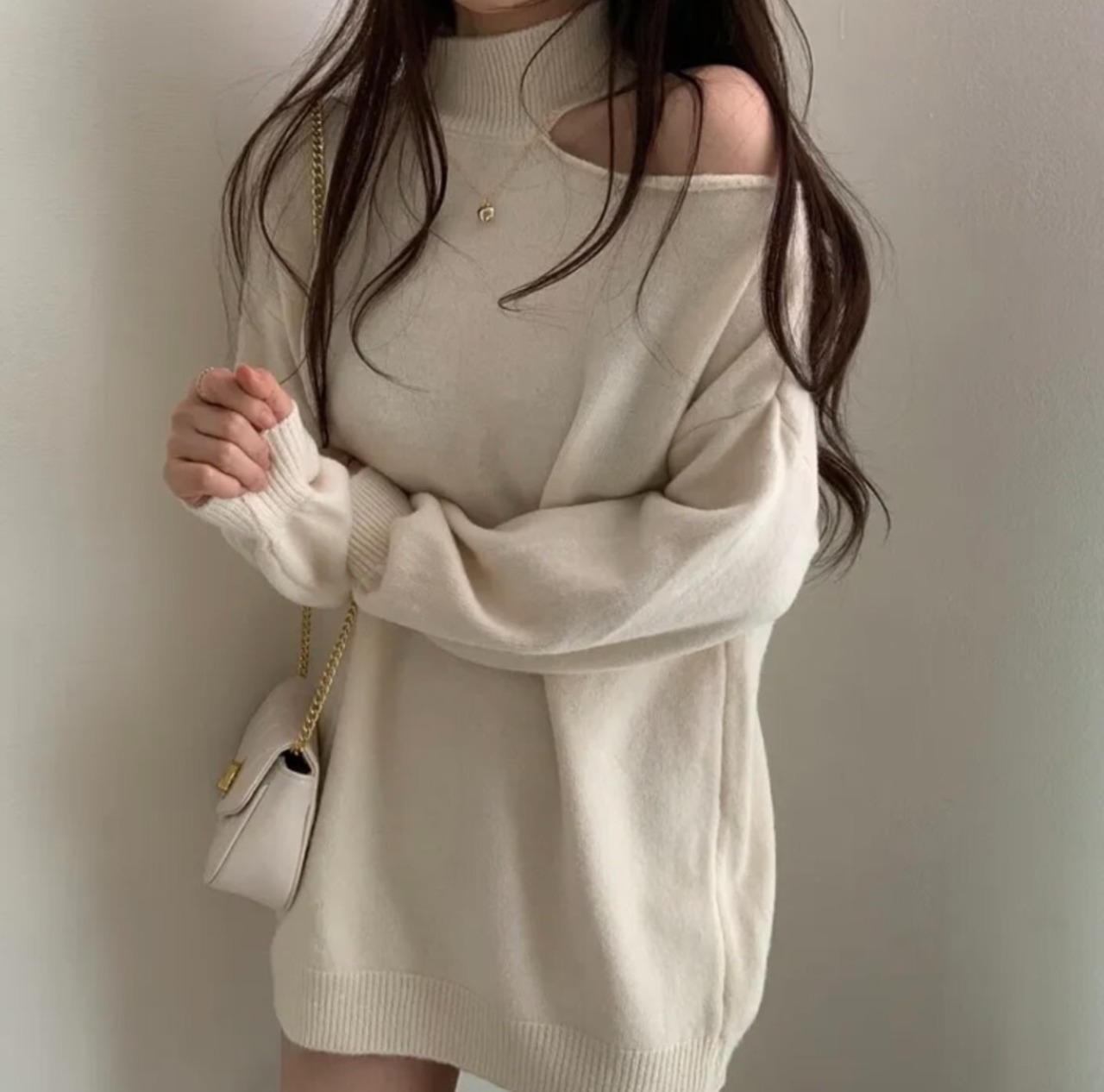 #ニット #セーター #ハイネック #オフショル #ワンショル #カットアウト #肩出し #ボリュームスリーブ #体型カバー #華奢見え #きれいめ #カジュアル #韓国ファッション #デートコーデ #秋冬トップス #着回し #モードフェミニン #kfashion