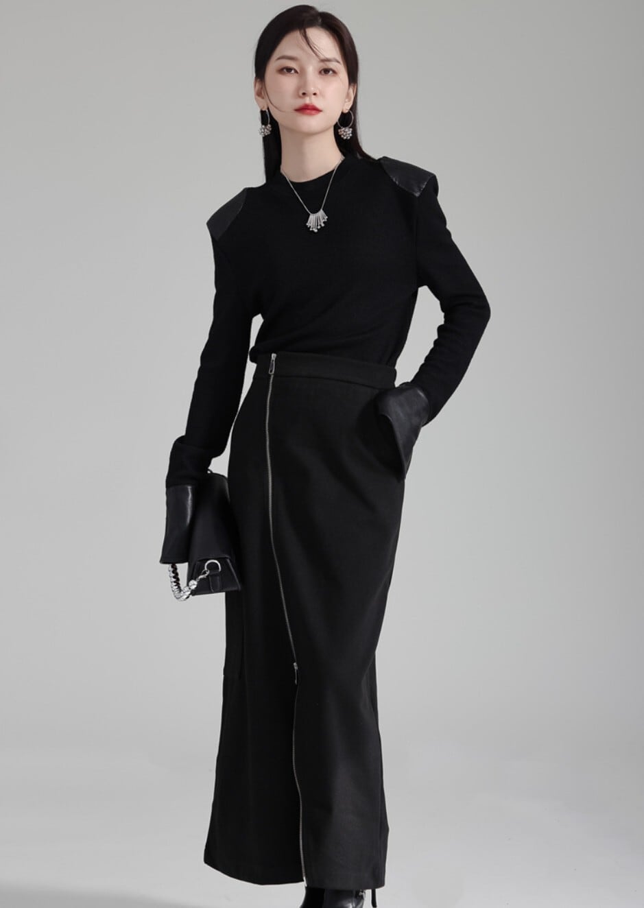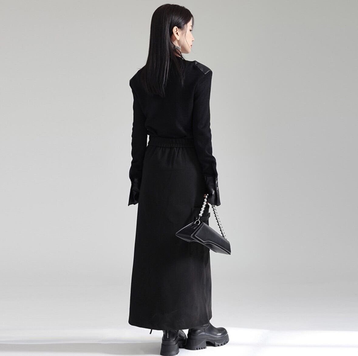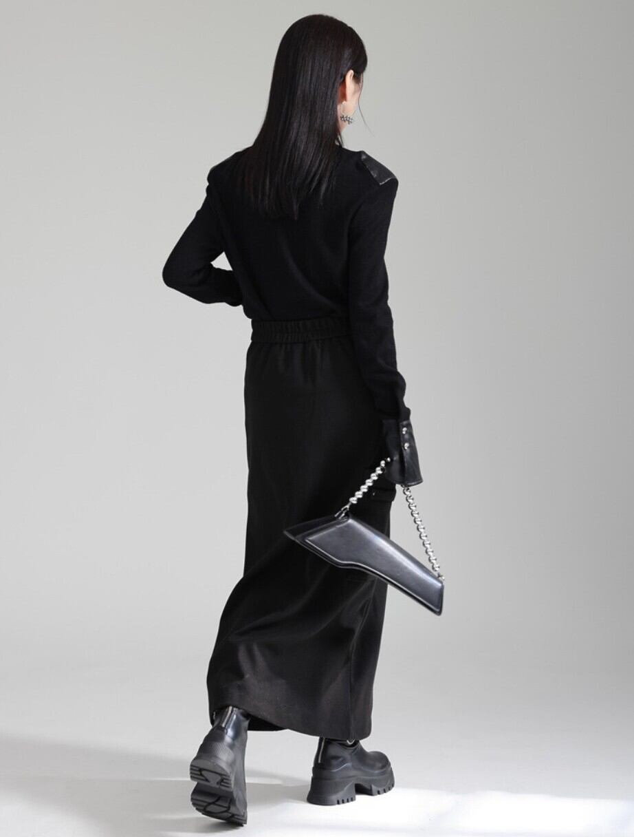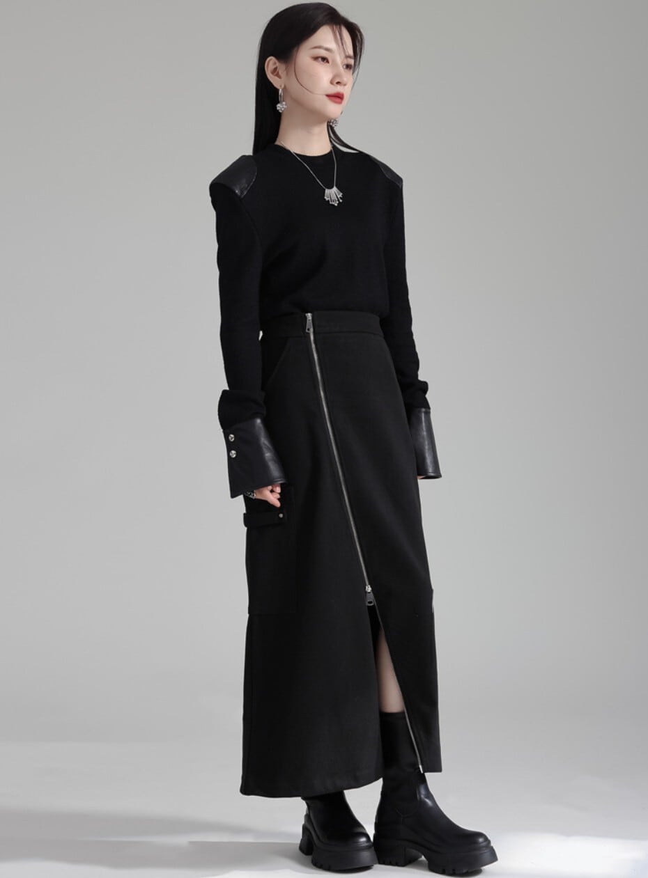 #スカート #ロングスカート #ジップスカート #フロントジップ #スリット #カーゴポケット #ハイウエスト #モード #ダークモード #韓国モード #黒コーデ #ユニセックス #秋冬 #ブーツコーデ