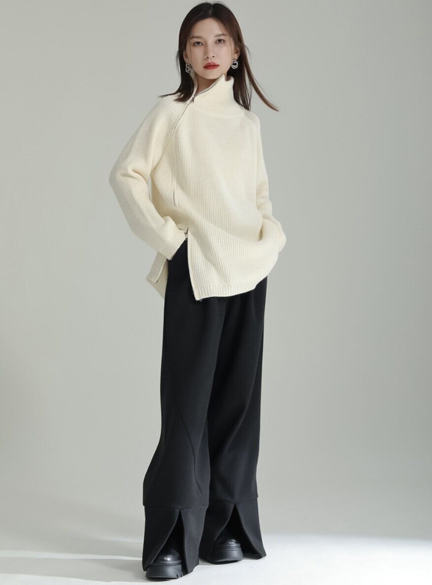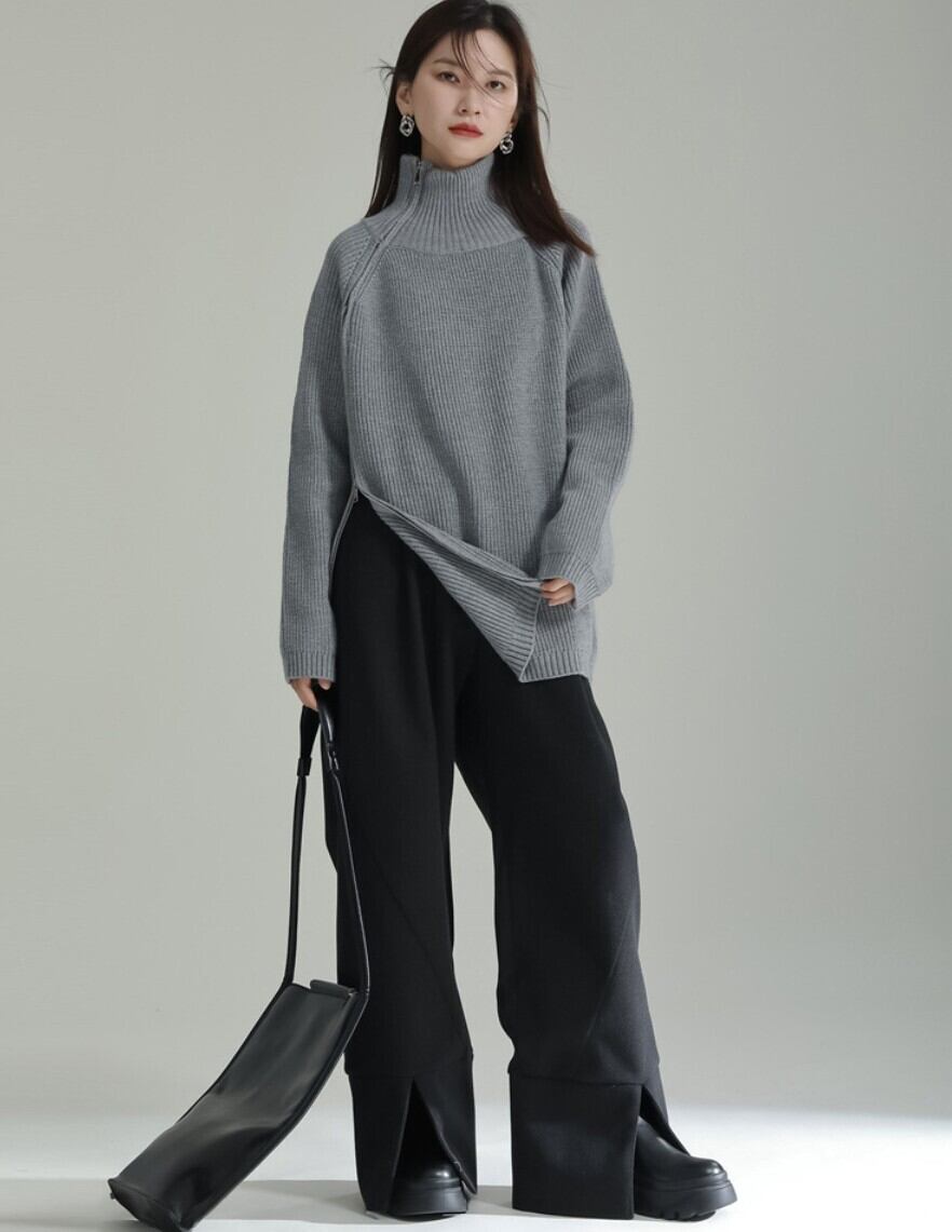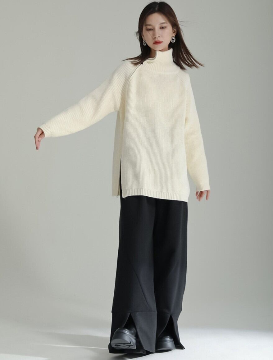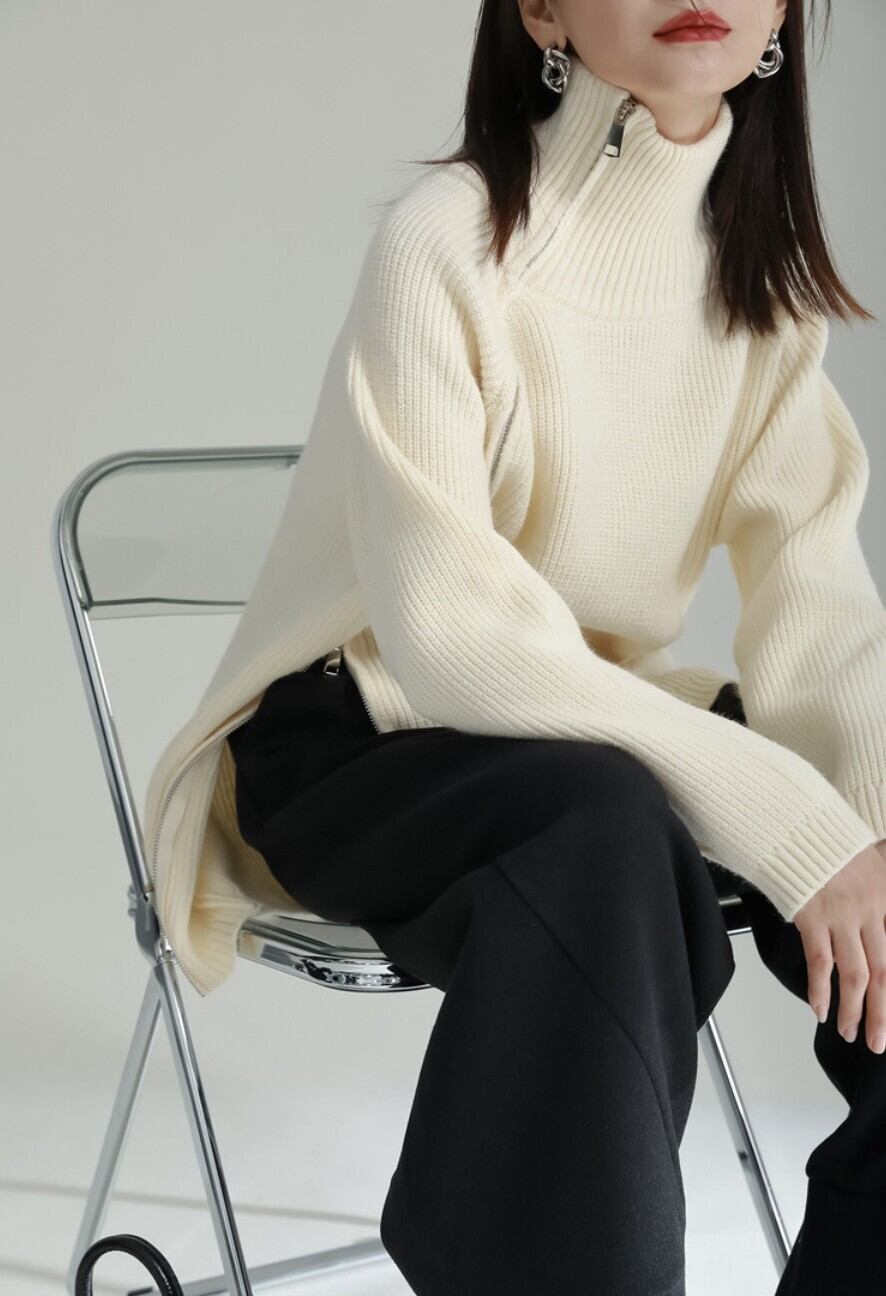ハイネック サイドジップモダンリブニット/レディース 韓国ファッション モード系|NEIRA