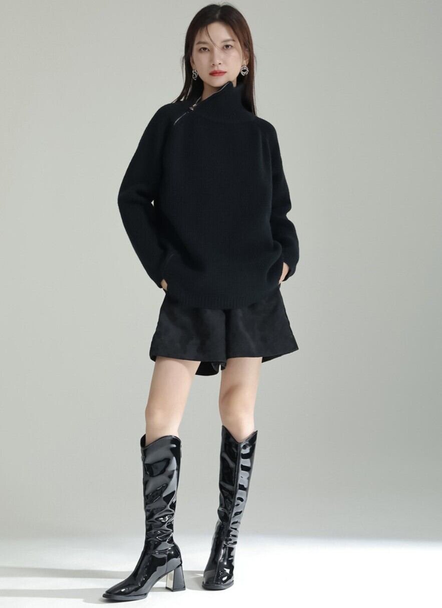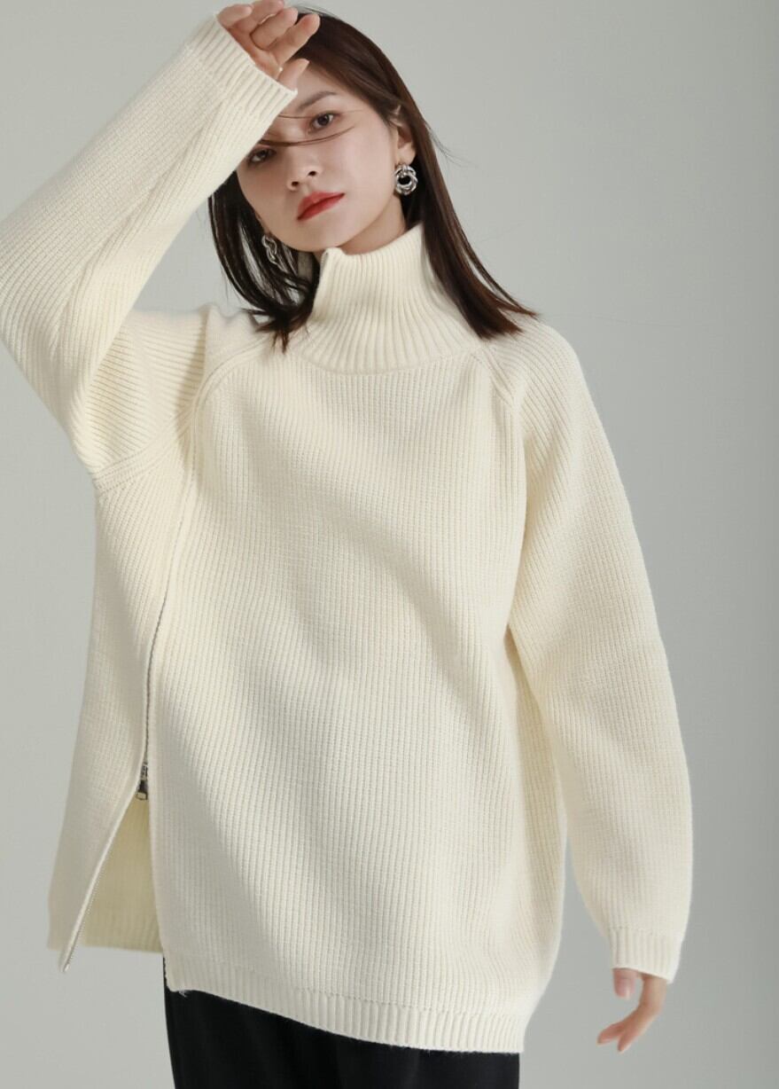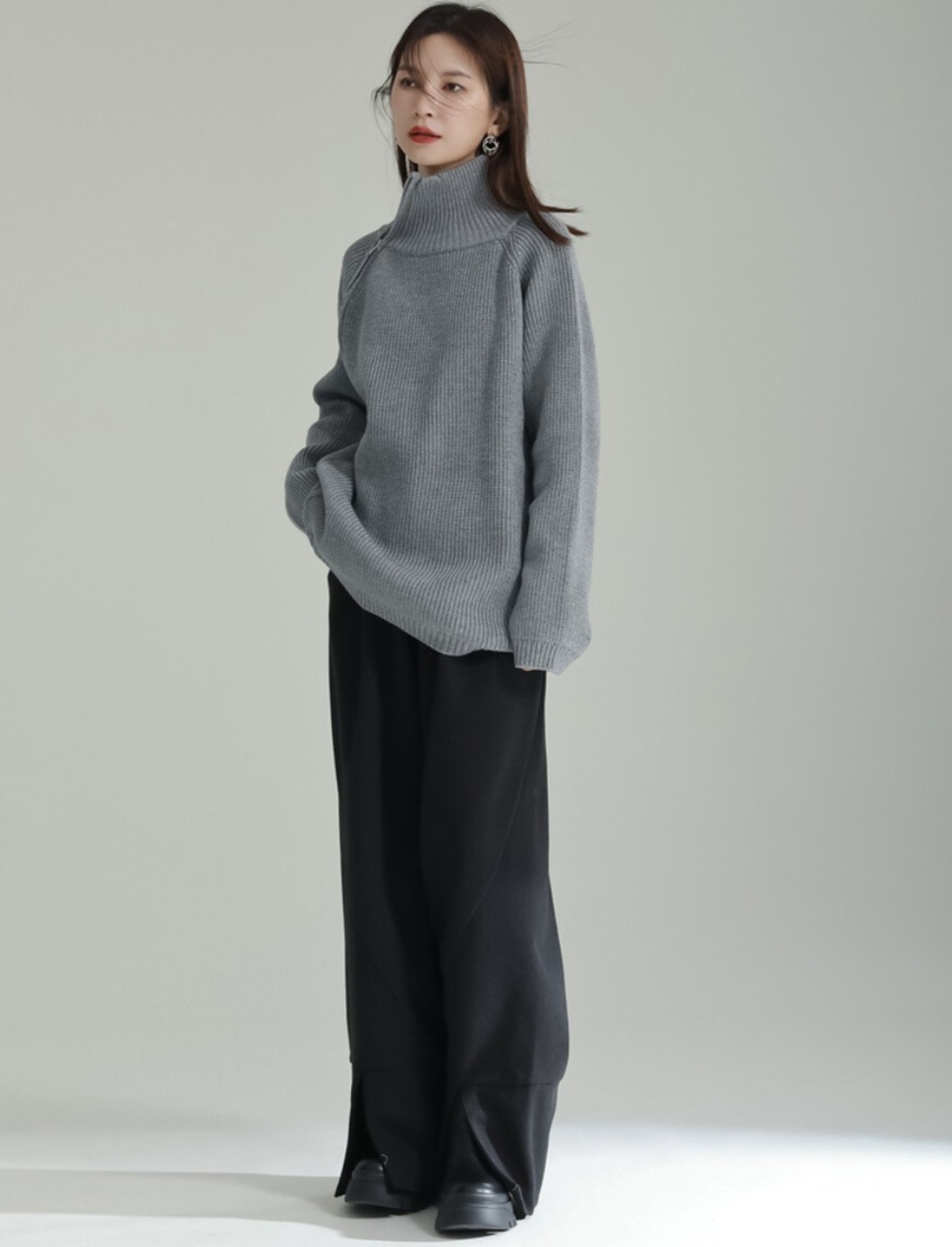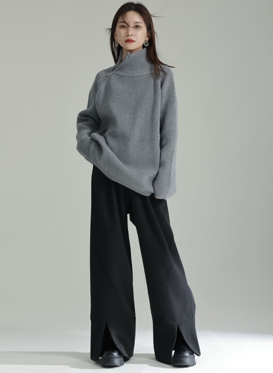 ハイネック サイドジップモダンリブニット/レディース 韓国ファッション モード系|NEIRA