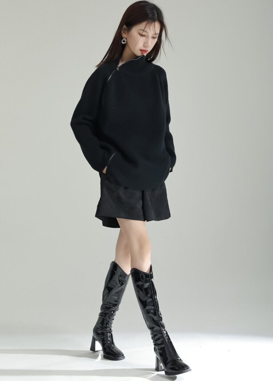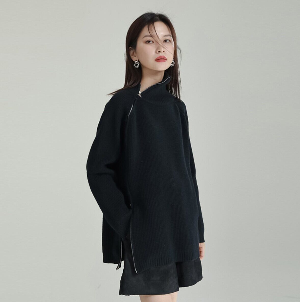 #NEIRA #モード #モードファッション #韓国ファッション #ハイネック #ハイネックニット #リブニット #サイドジップ #ロングトップス #秋冬トップス #ブラックコーデ #モノトーン #ユニセックス
