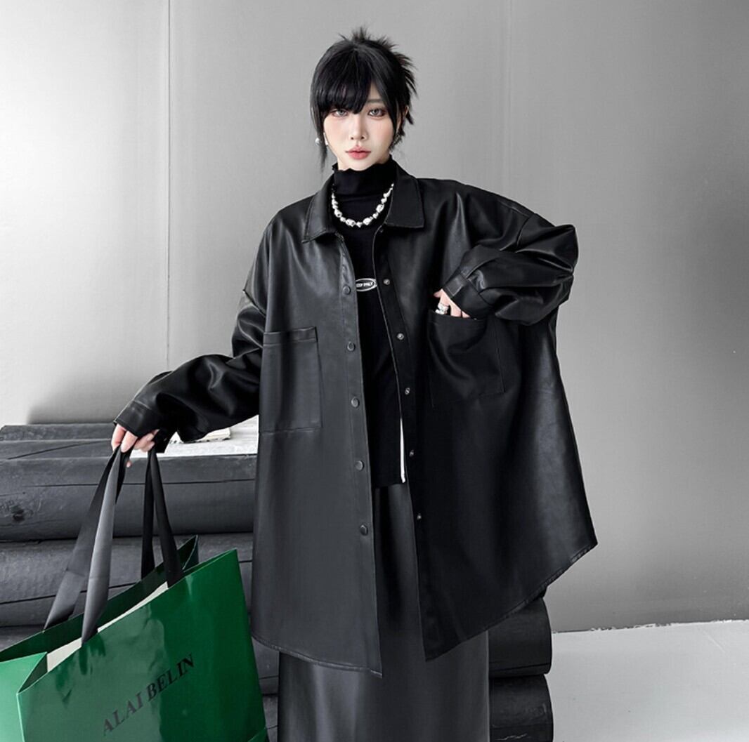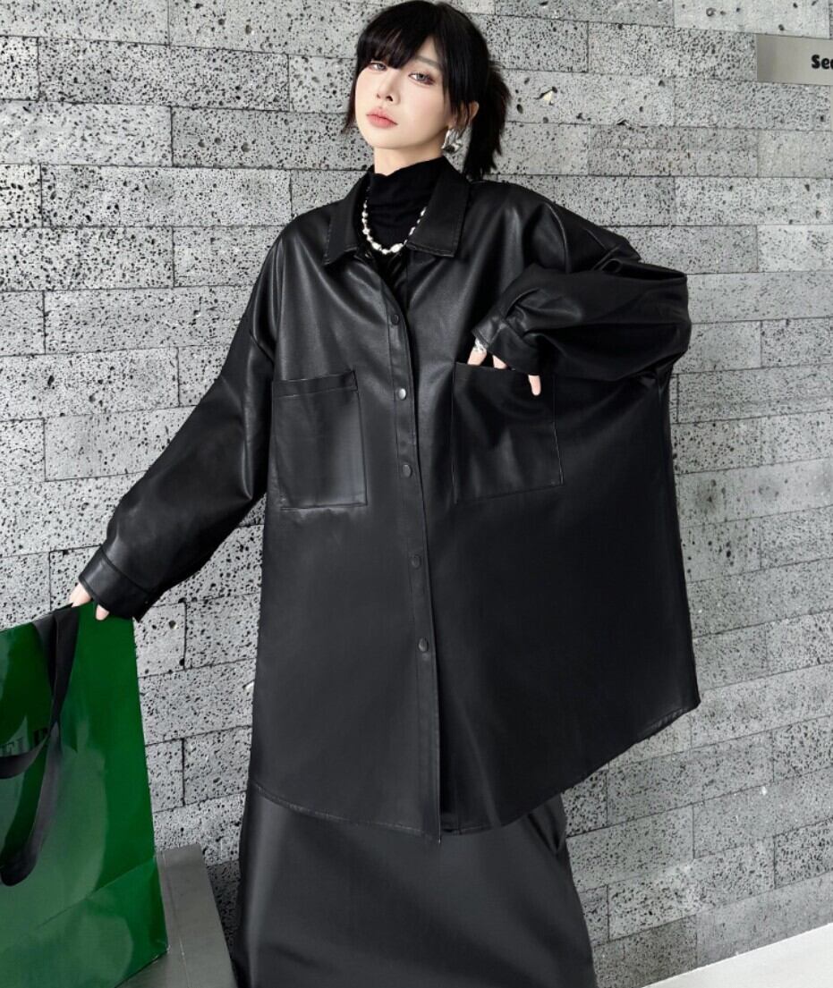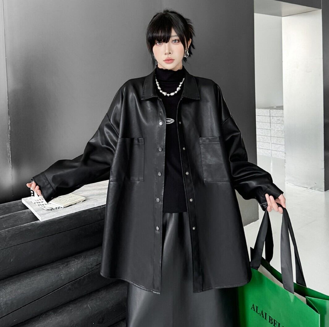 オーバーサイズ フェイクレザー シャツジャケット/レディース 韓国ファッション モード系|NEIRA