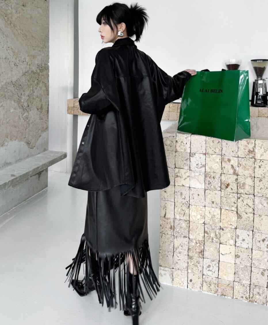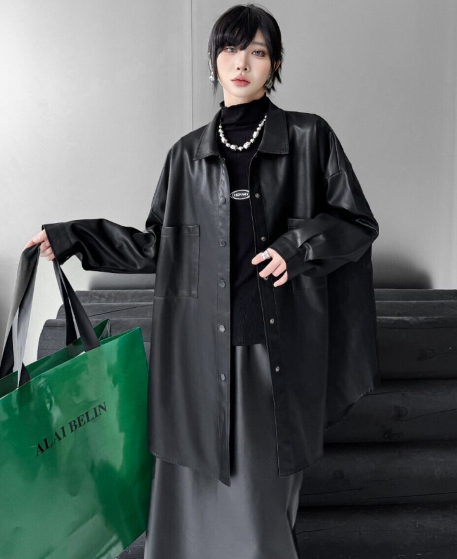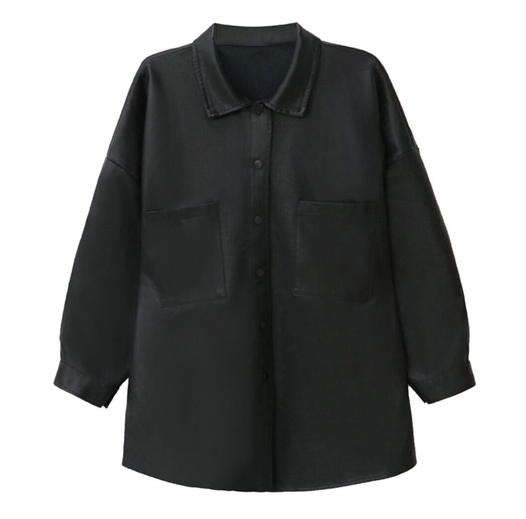 オーバーサイズ フェイクレザー シャツジャケット/レディース 韓国ファッション モード系|NEIRA
