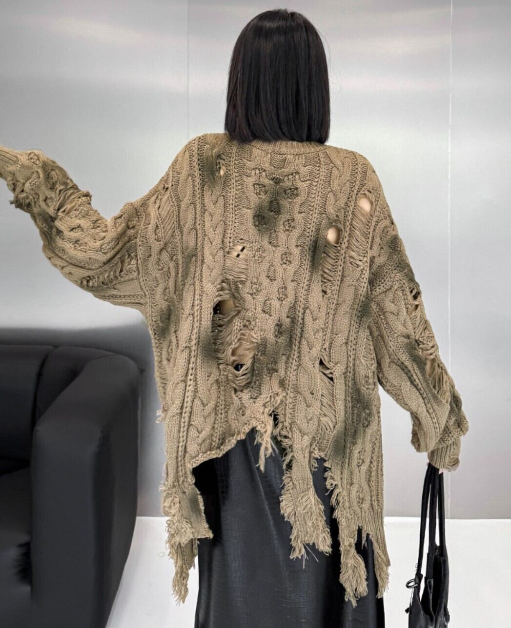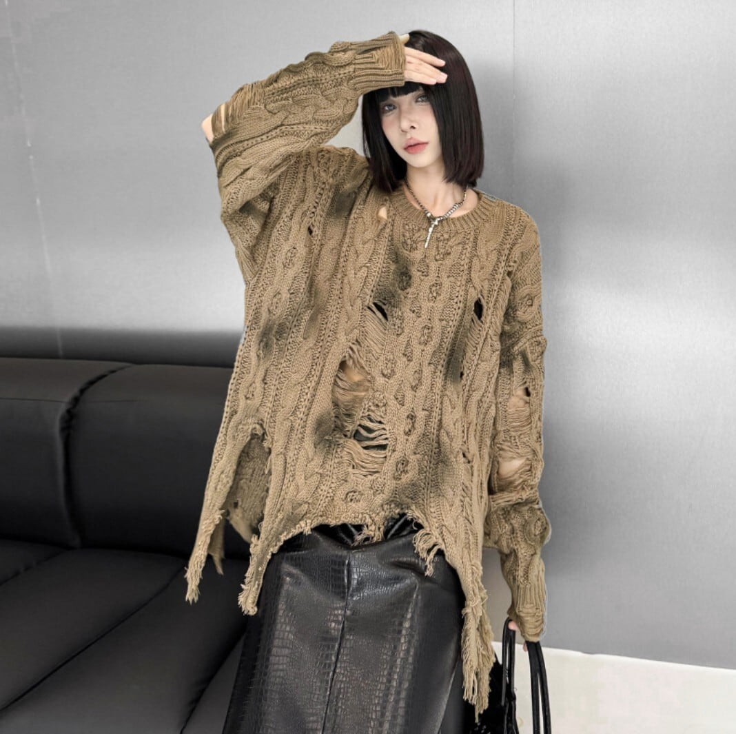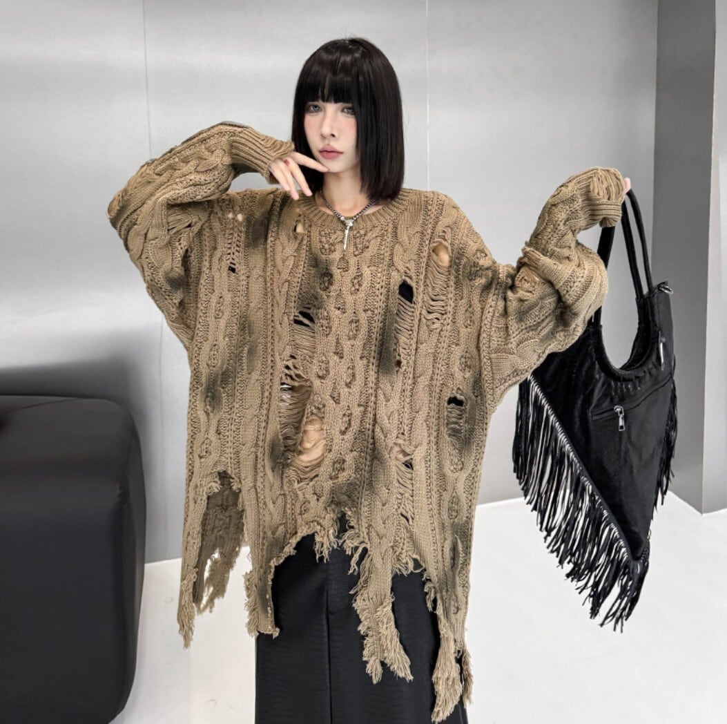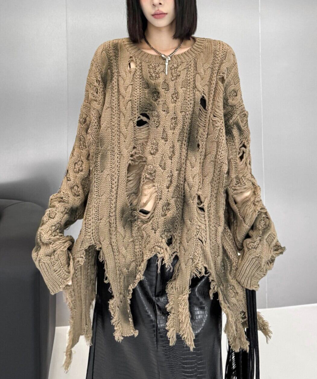 #ダメージニット #ケーブルニット #グランジファッション #ダークモード #韓国モード #個性派トップス #オーバーサイズ #ルーズシルエット #モード系 #ユニセックス風 #NEIRA