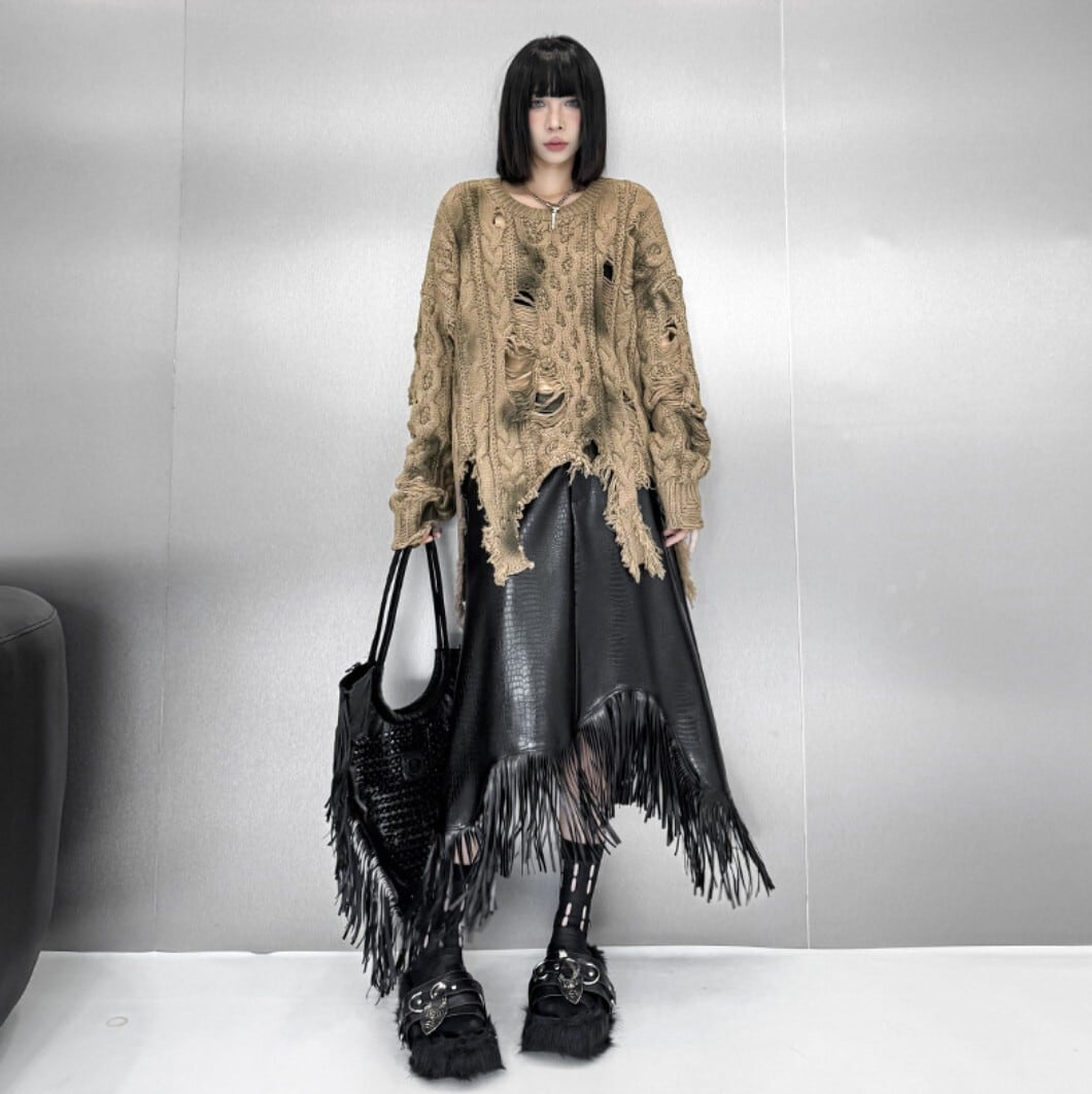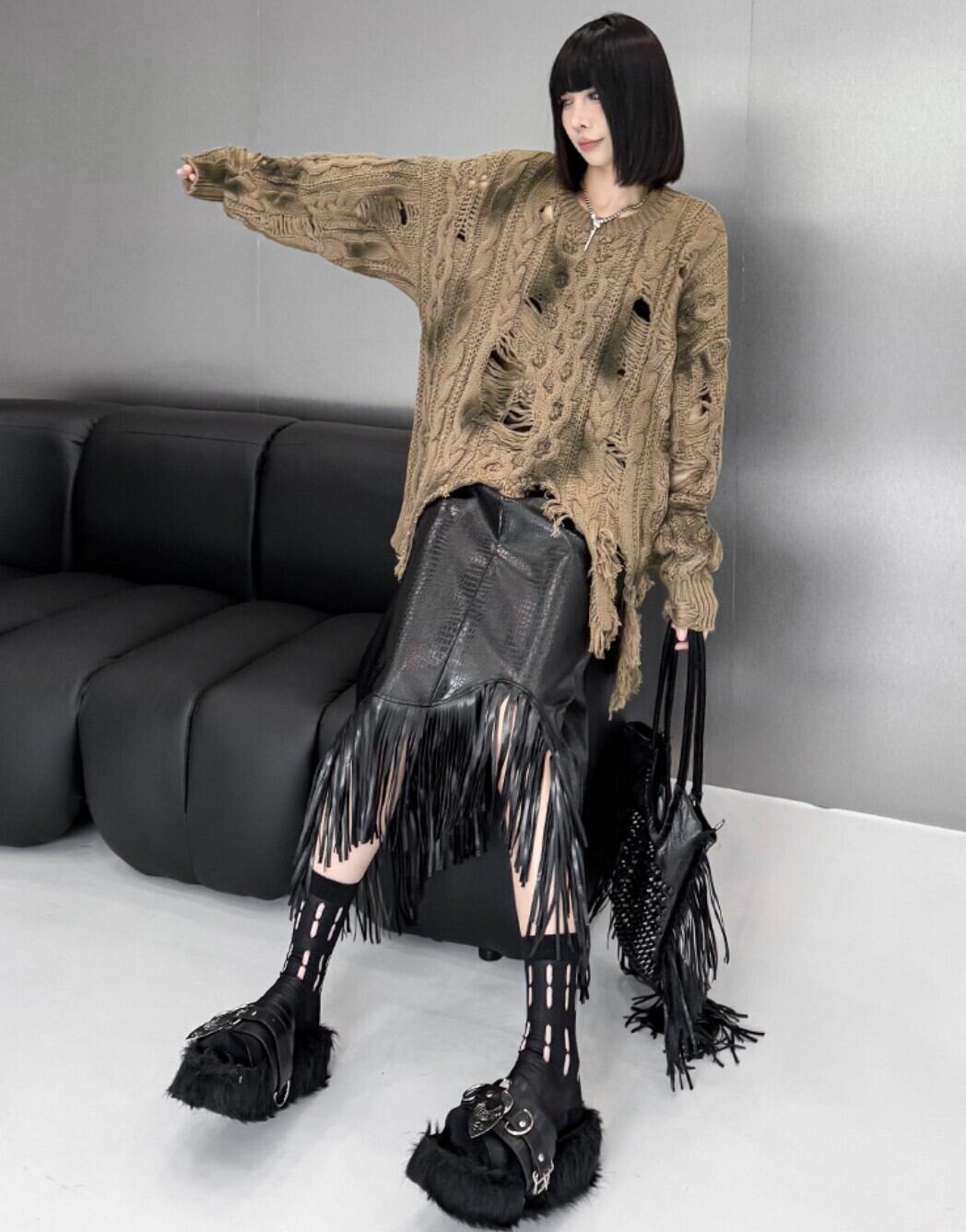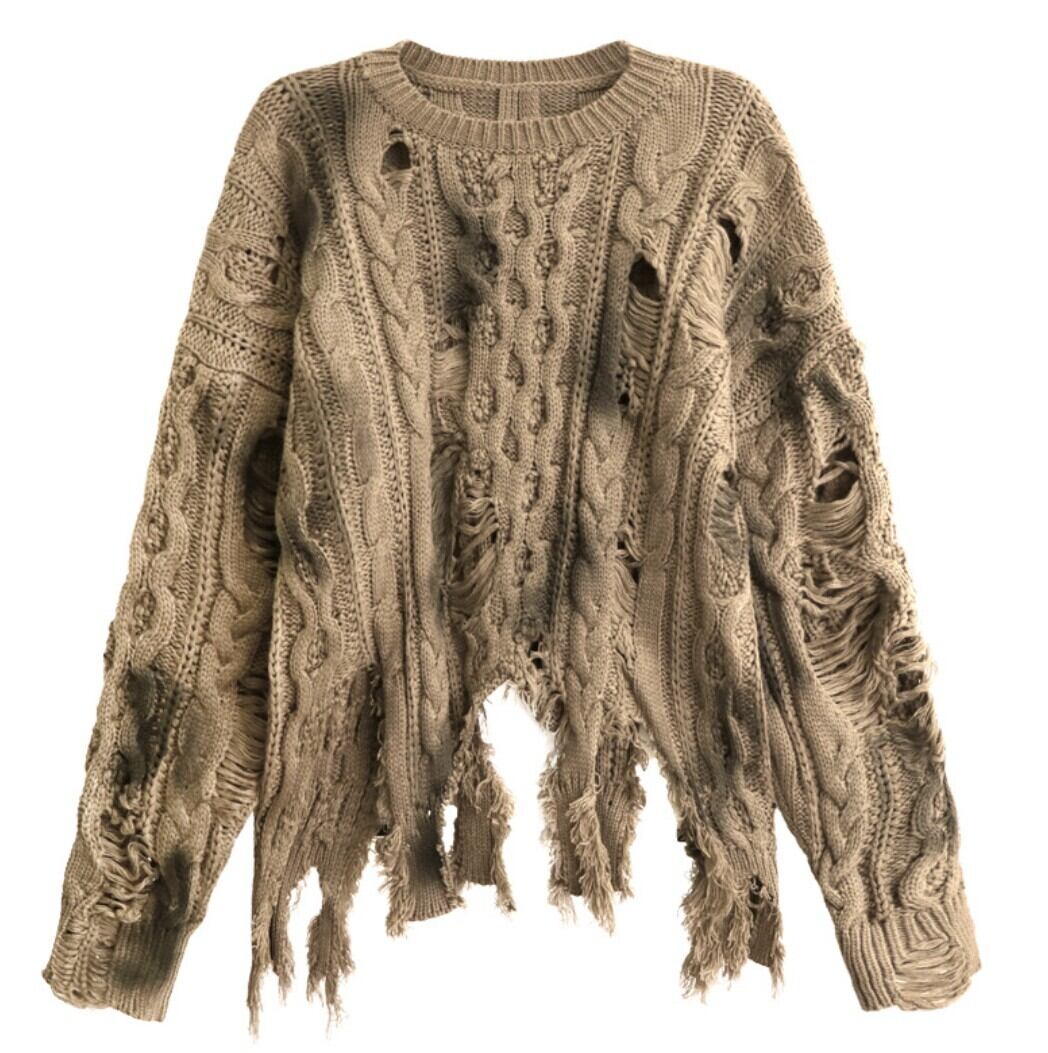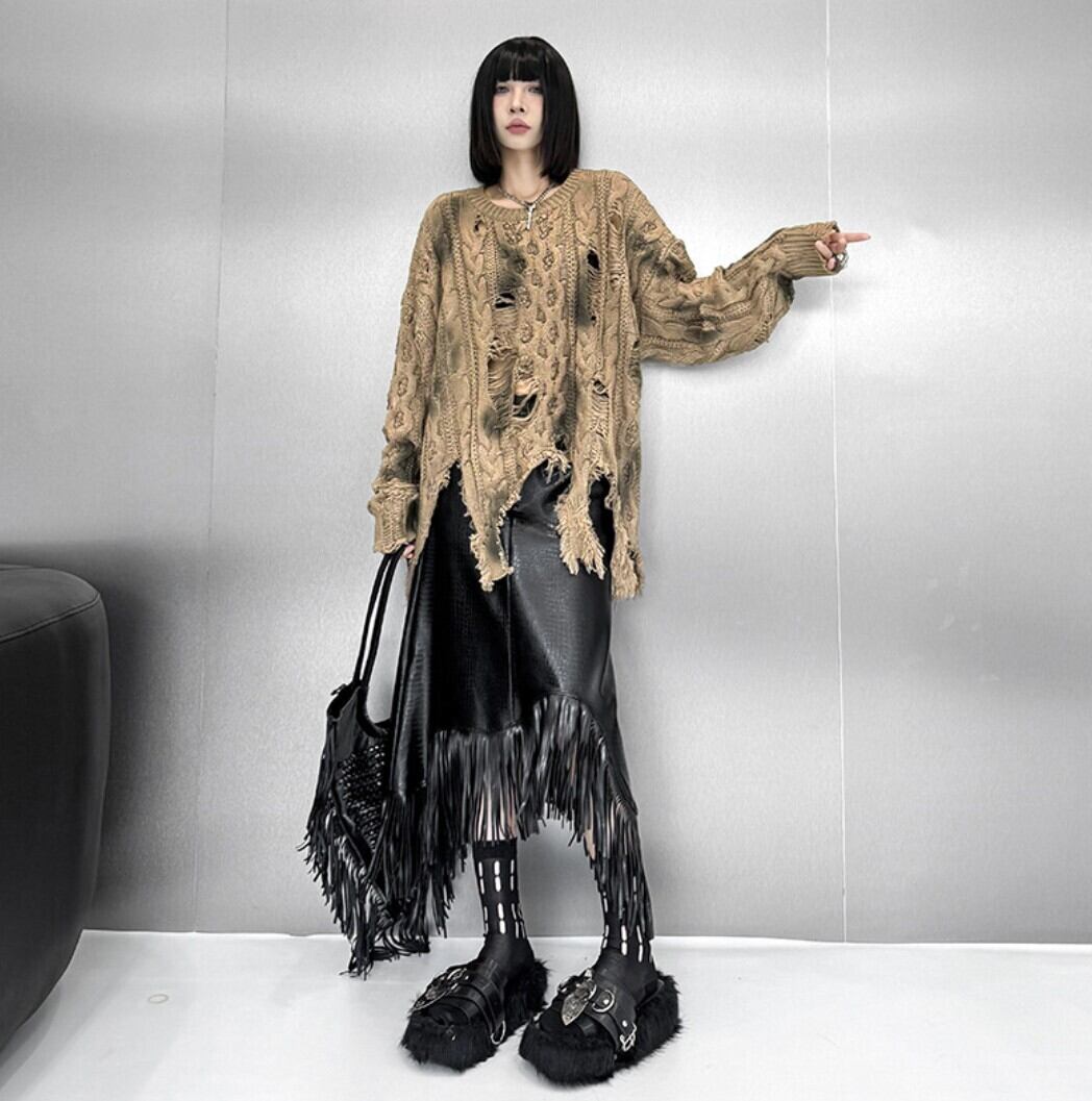 #ダメージニット #ケーブルニット #グランジファッション #ダークモード #韓国モード #個性派トップス #オーバーサイズ #ルーズシルエット #モード系 #ユニセックス風 #NEIRA