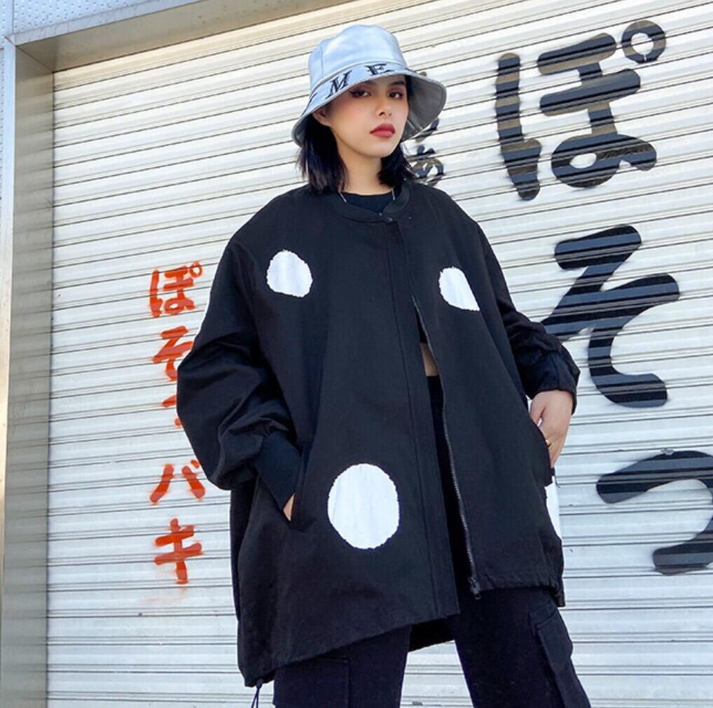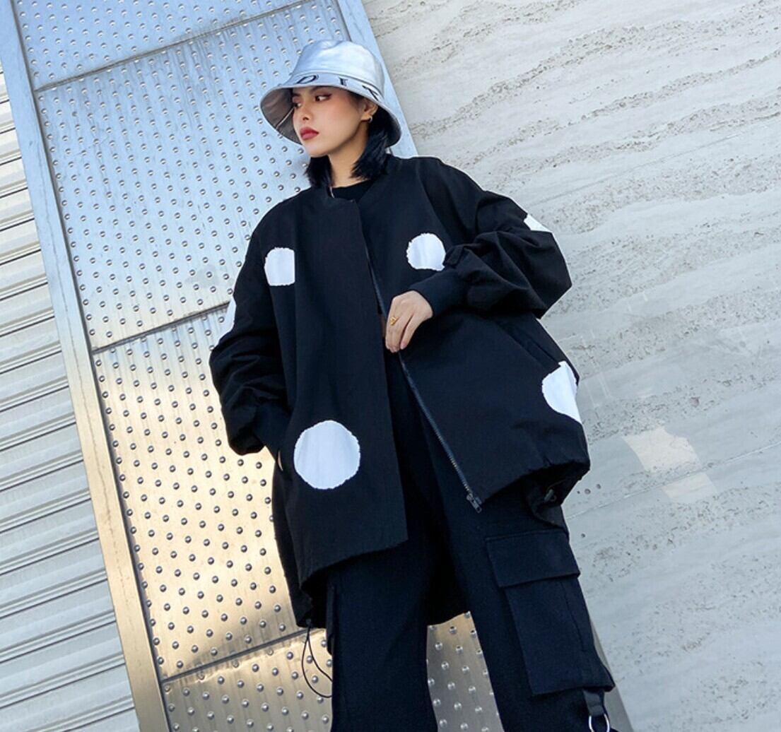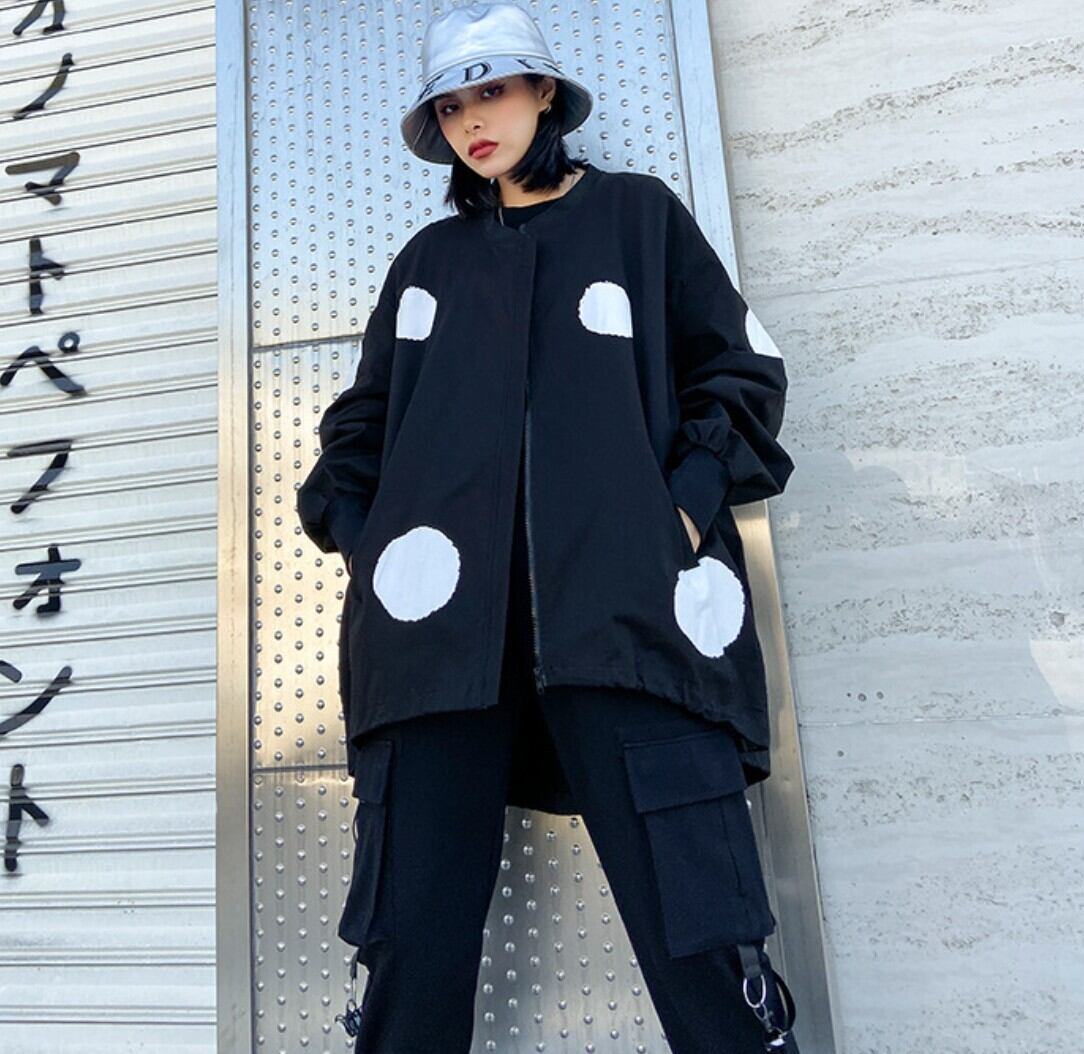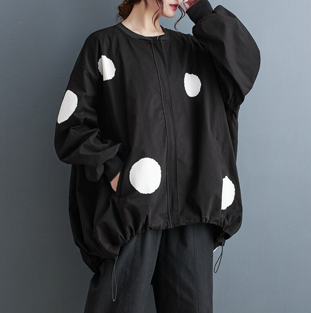 ビッグドットデザイン オーバーサイズジップブルゾン/レディース 韓国ファッション モード系|NEIRA