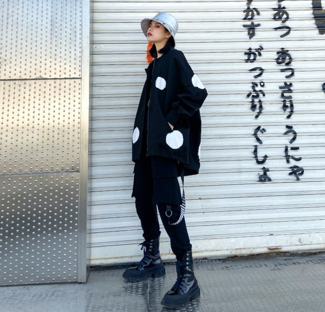 #NEIRA #モードファッション #ダークモード #オーバーサイズ #ジップブルゾン #ドットデザイン #ユニセックス #ストリートモード #個性派アウター #黒コーデ #ビッグシルエット #原宿系 #韓国モード #BASEショップ