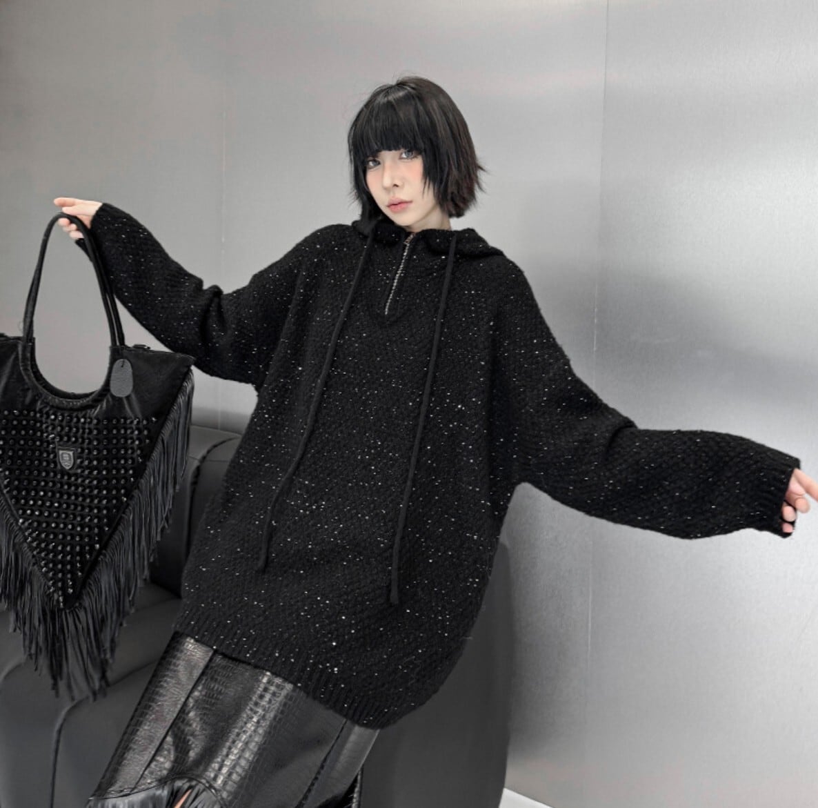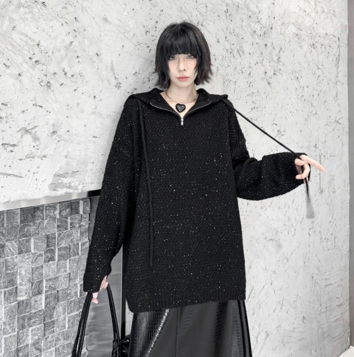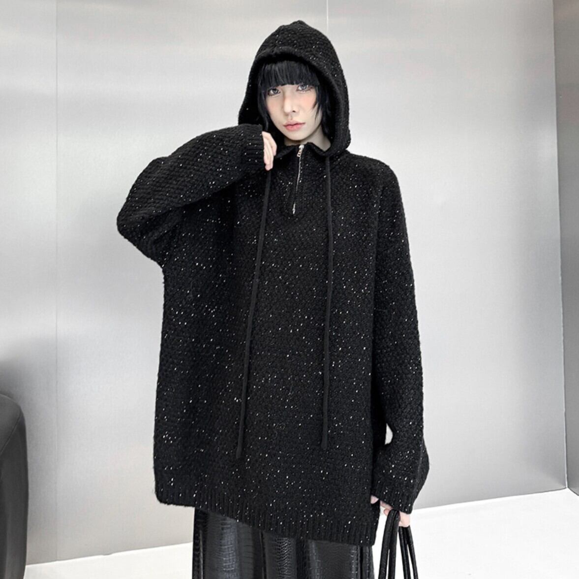 #NEIRA #ダークファッション #モード系 #ブラックコーデ #フーディーニット #ハーフジップ #オーバーサイズ #ユニセックス #韓国モード #ラメニット