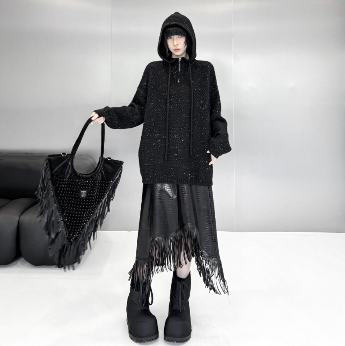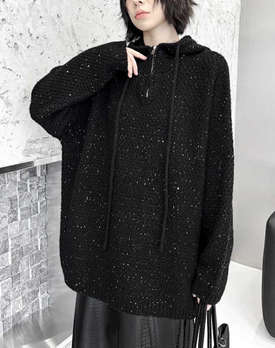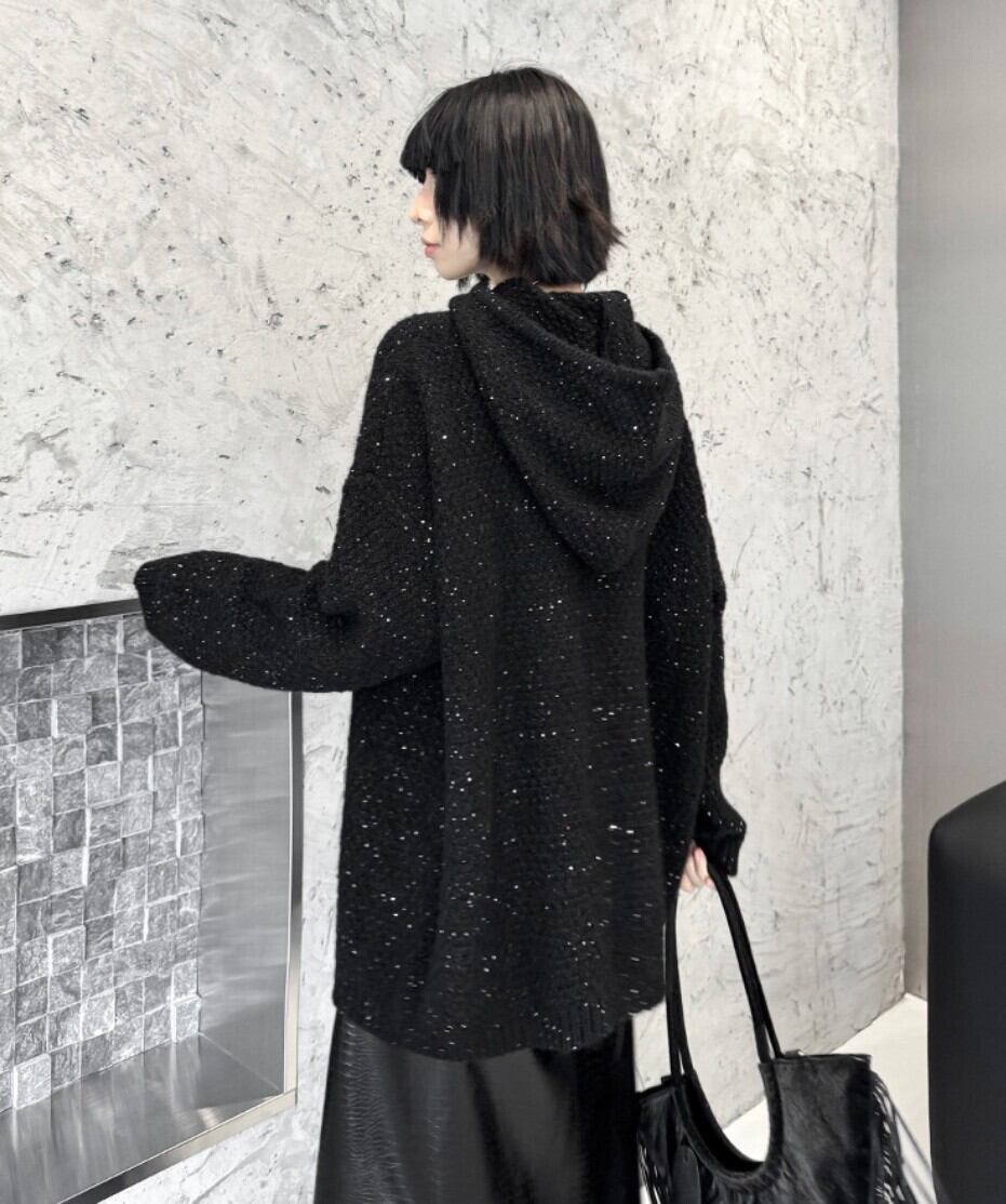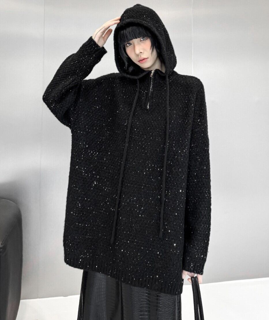 #NEIRA #ダークファッション #モード系 #ブラックコーデ #フーディーニット #ハーフジップ #オーバーサイズ #ユニセックス #韓国モード #ラメニット