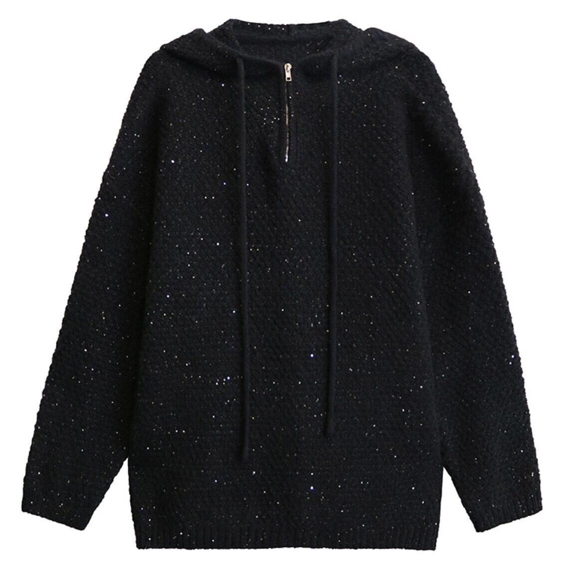 ラメ混ハーフジップオーバーサイズフーディーニット/レディース 韓国ファッション モード系|NEIRA