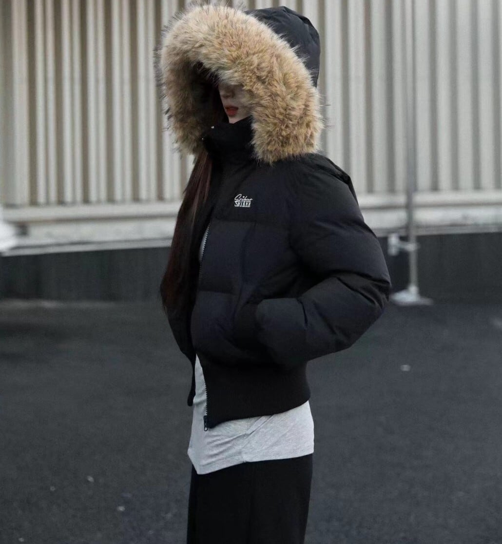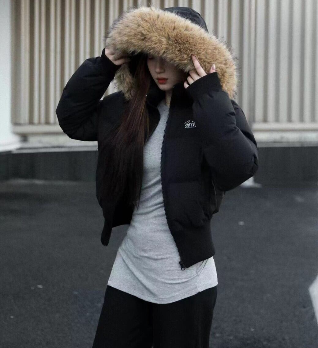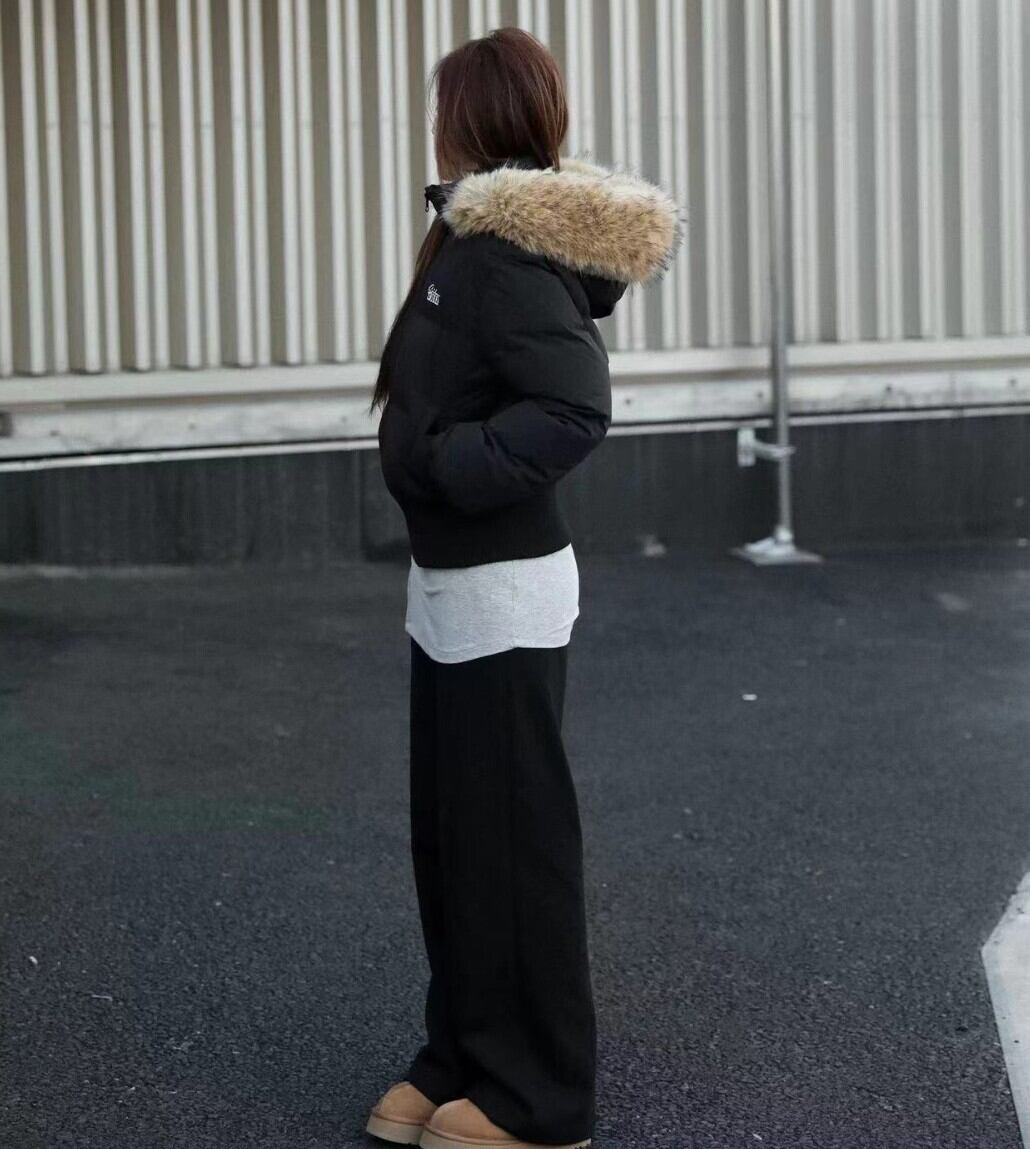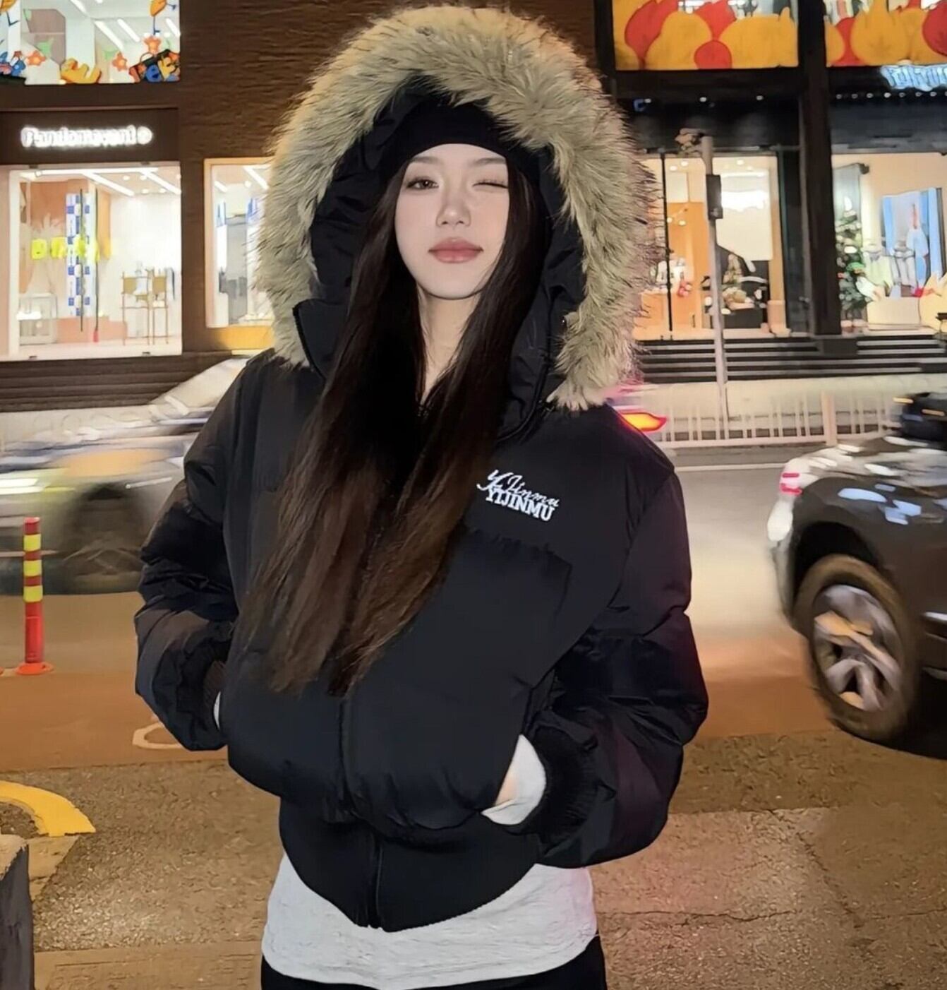 #NEIRA #ダウンジャケット #ショートアウター #ファーフード #中綿アウター #冬アウター #韓国ファッション #ストリートコーデ #モードカジュアル #ブラックコーデ #防寒アイテム #レディースアウター