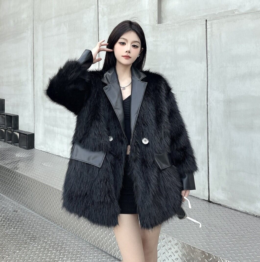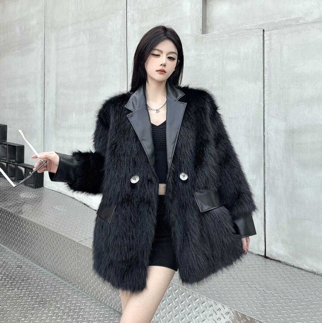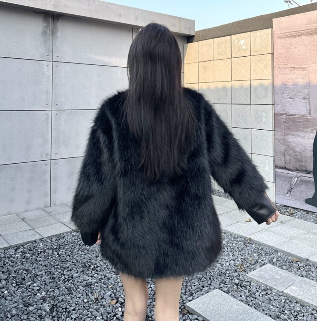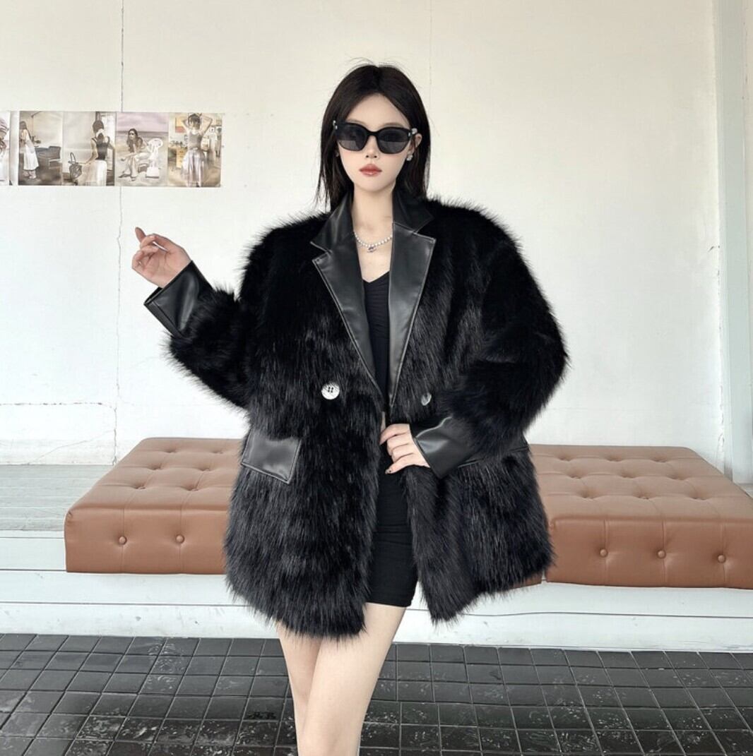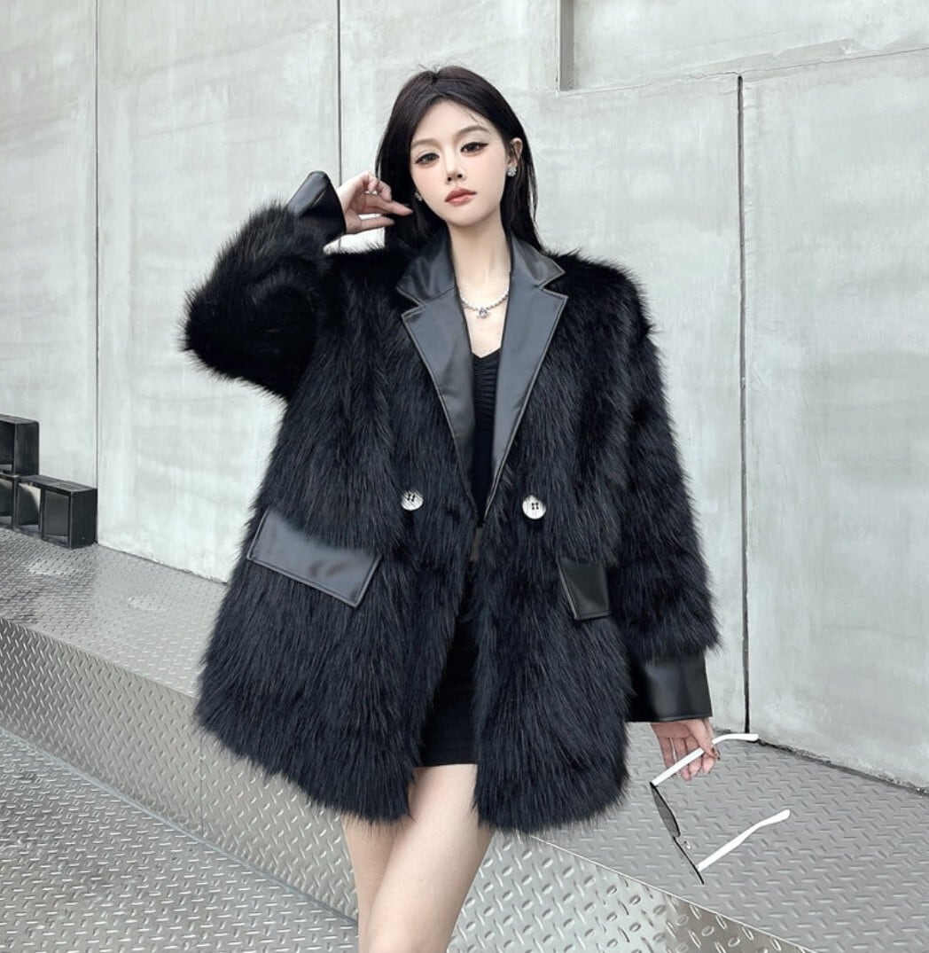 #NEIRA #フェイクファー #フェイクレザー #ファーコート #ミドルコート #ダブルコート #モードファッション #韓国モード #ブラックコーデ #秋冬アウター