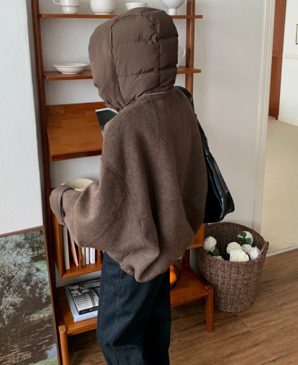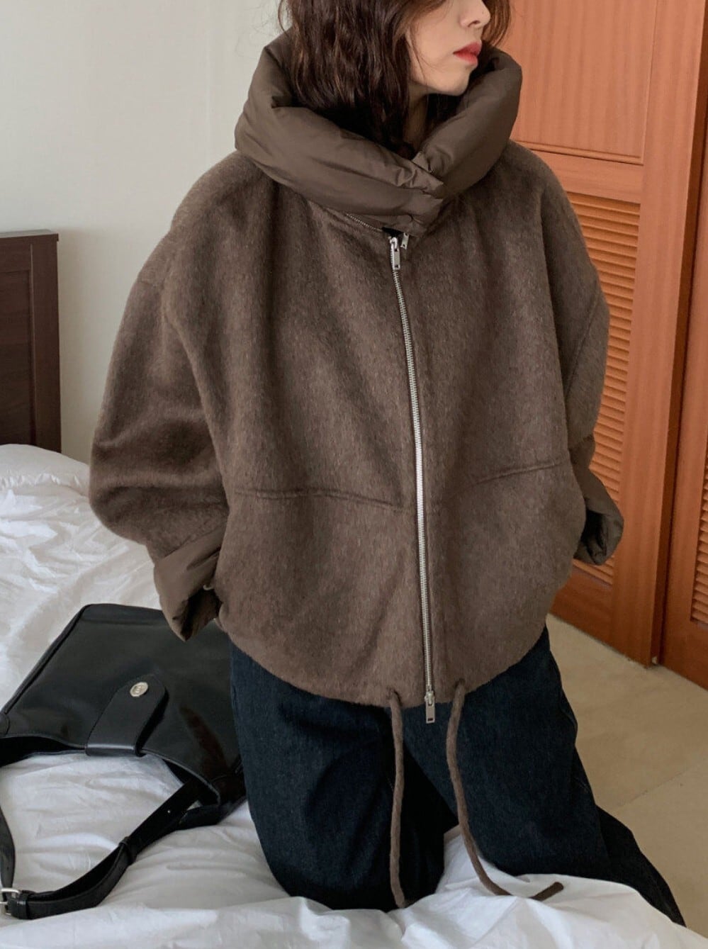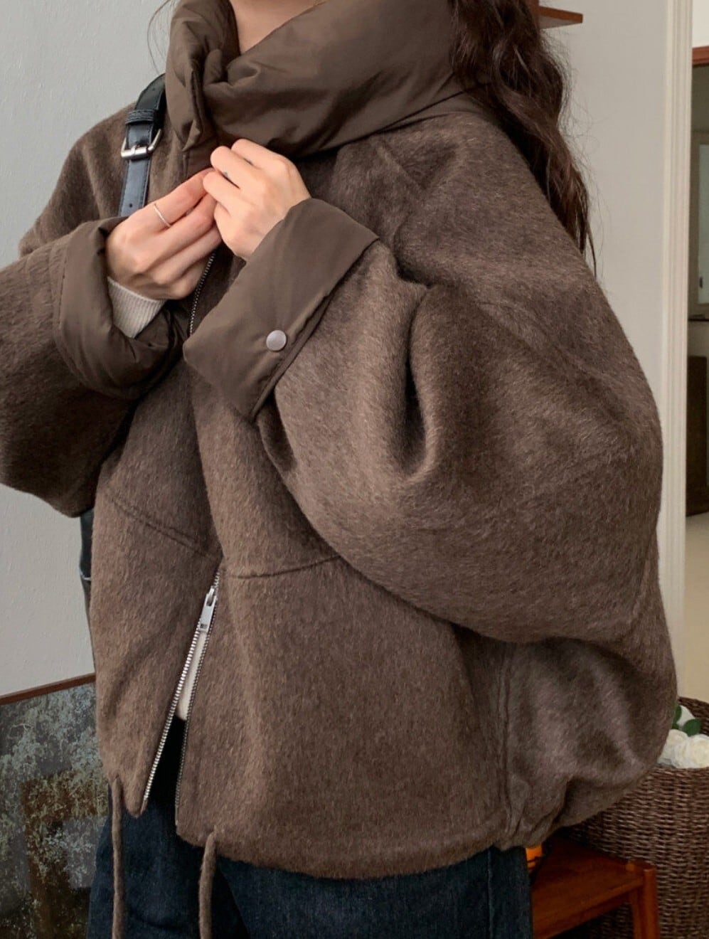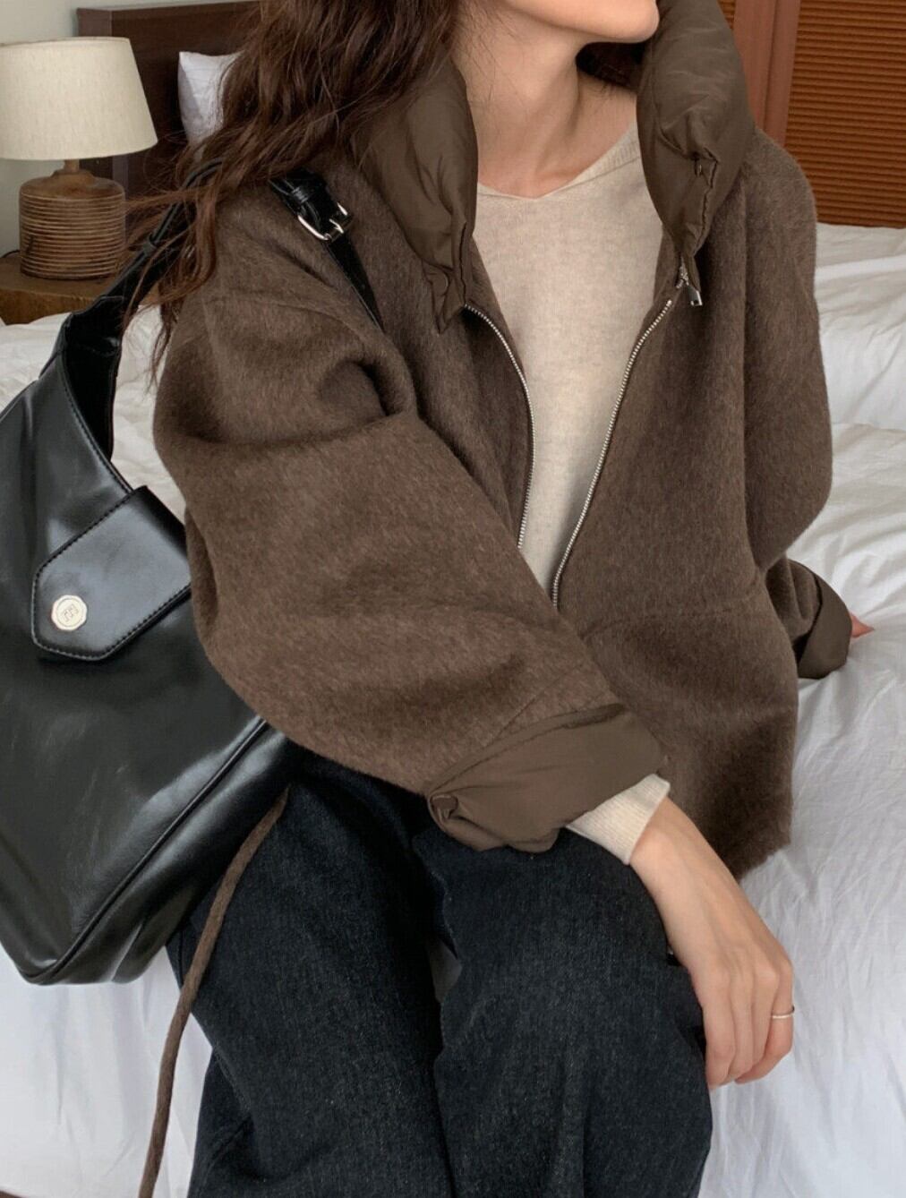 中綿ネックドッキング ウールライクショートブルゾン/レディース 韓国ファッション モード系|NEIRA