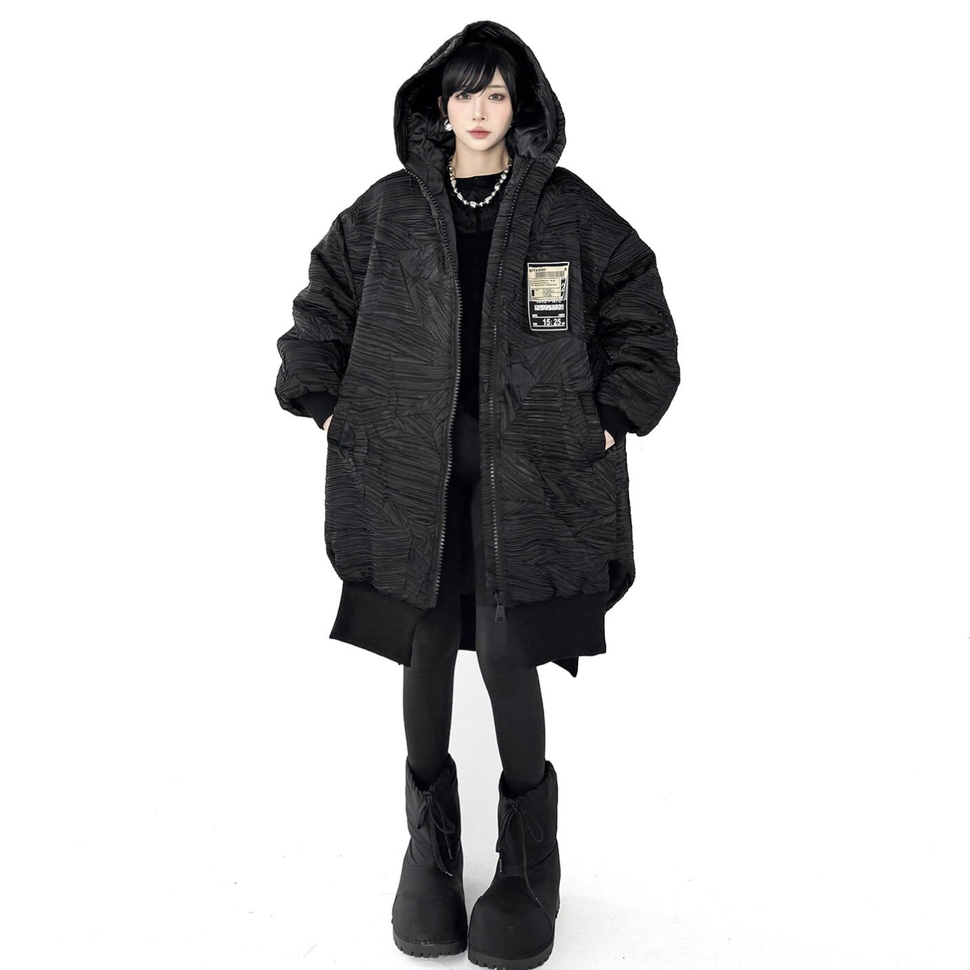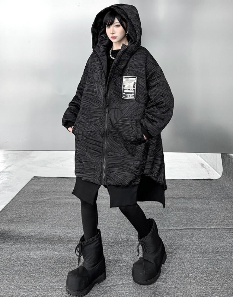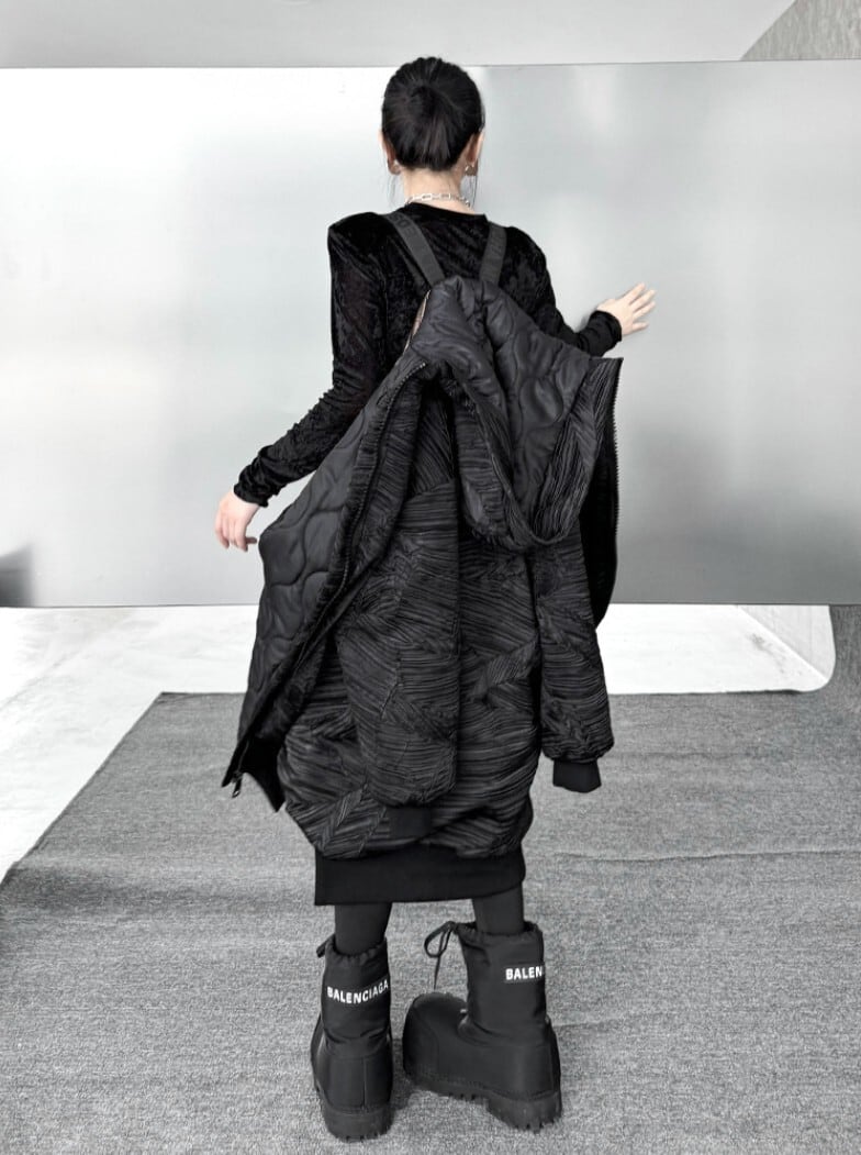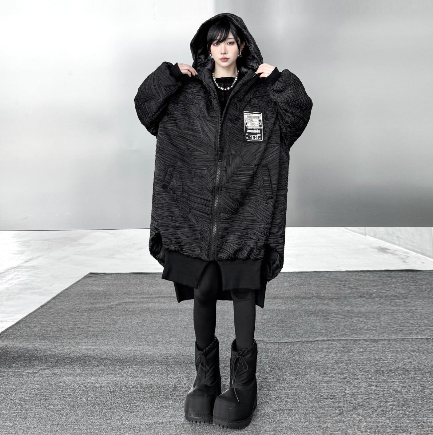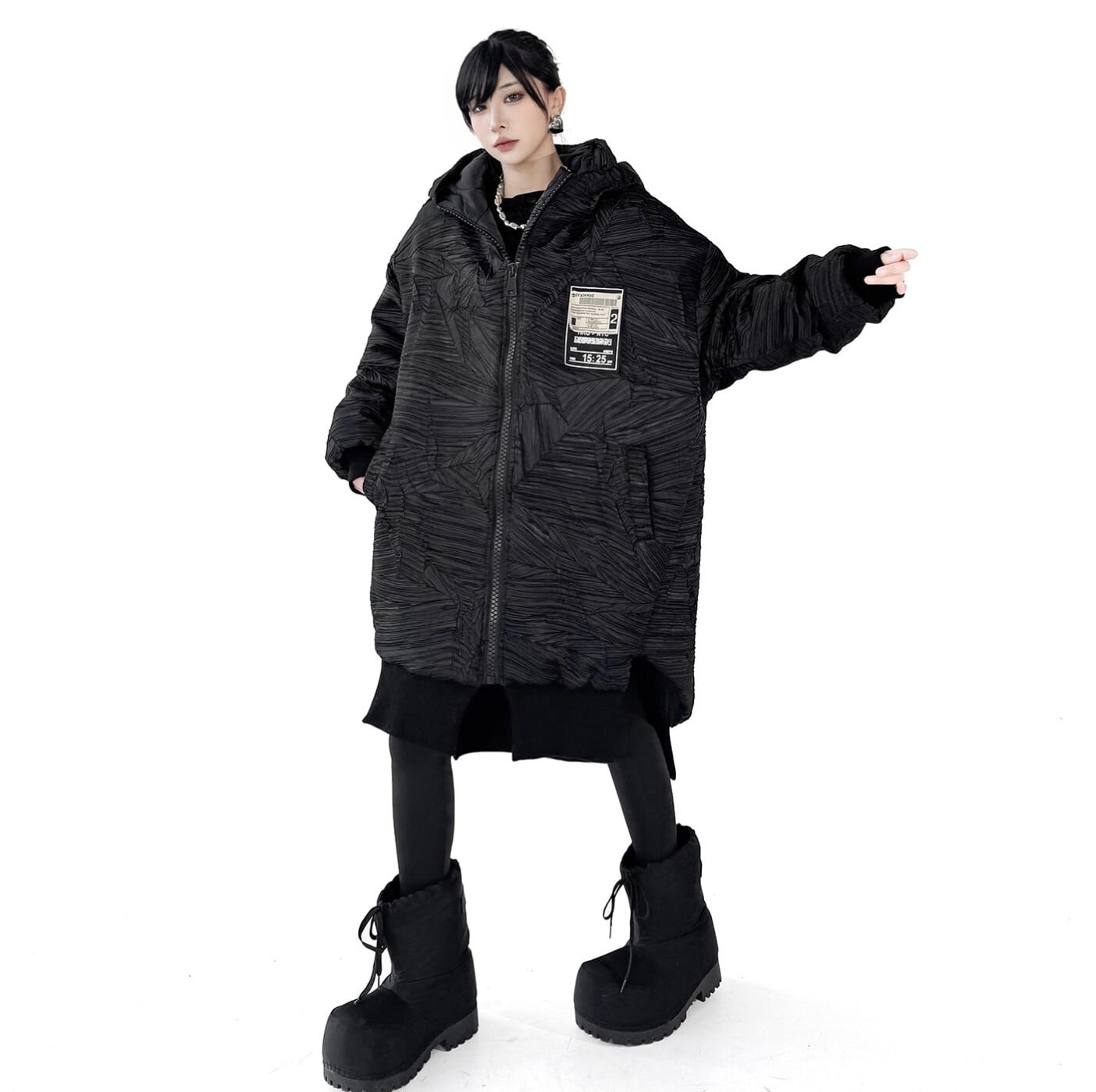 #NEIRA #ダークファッション #モード系 #韓国モード #フーデッドコート #中綿コート #オーバーサイズ #個性派アウター #ブラックコーデ #ストリートモード #ユニセックス #病みかわいい