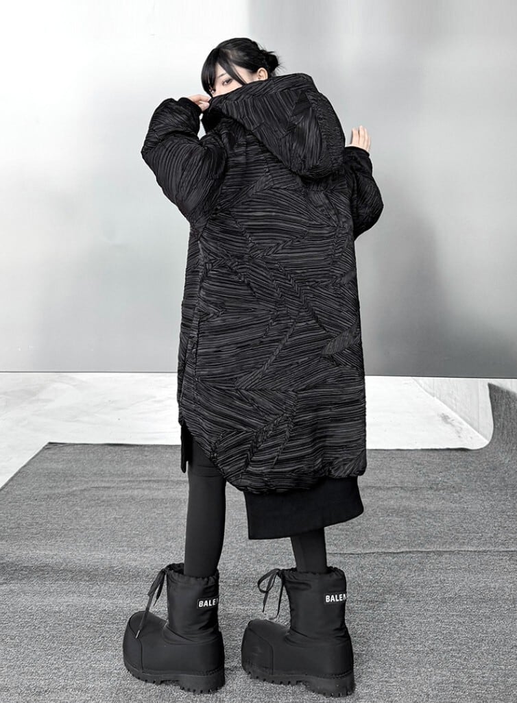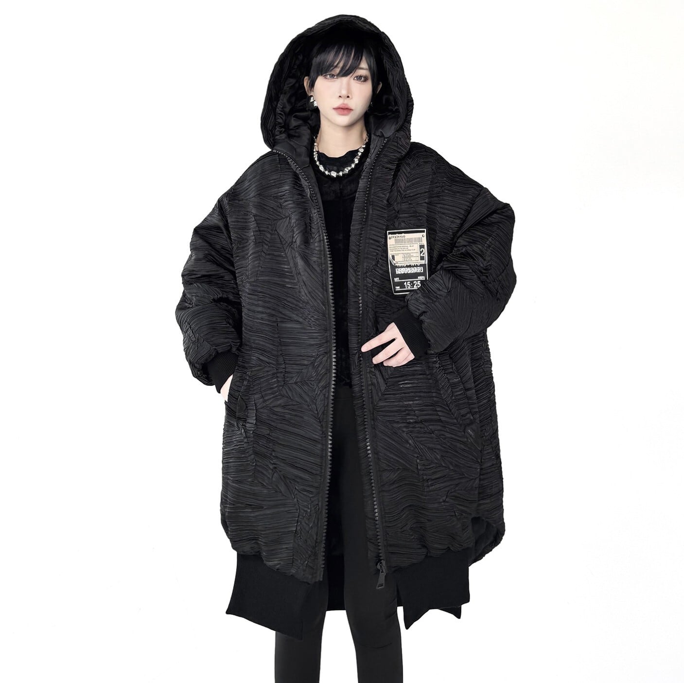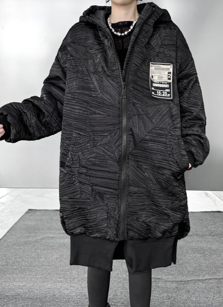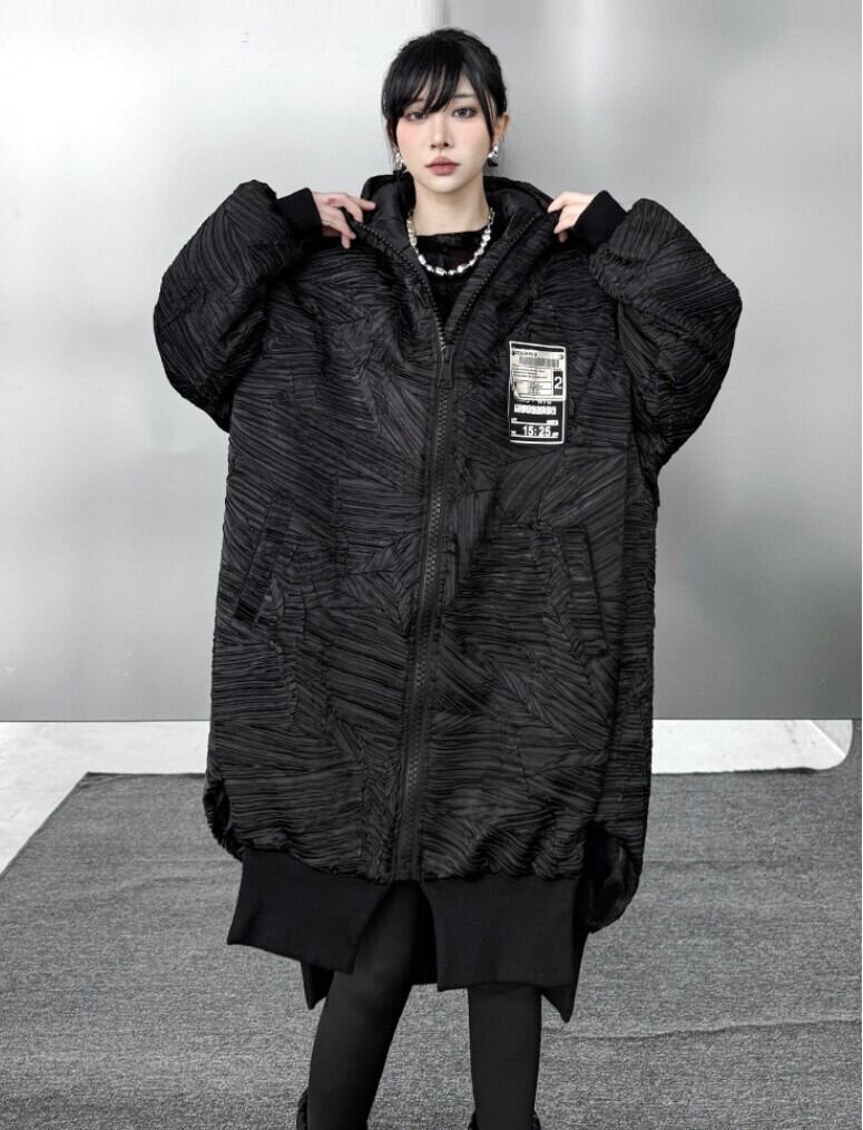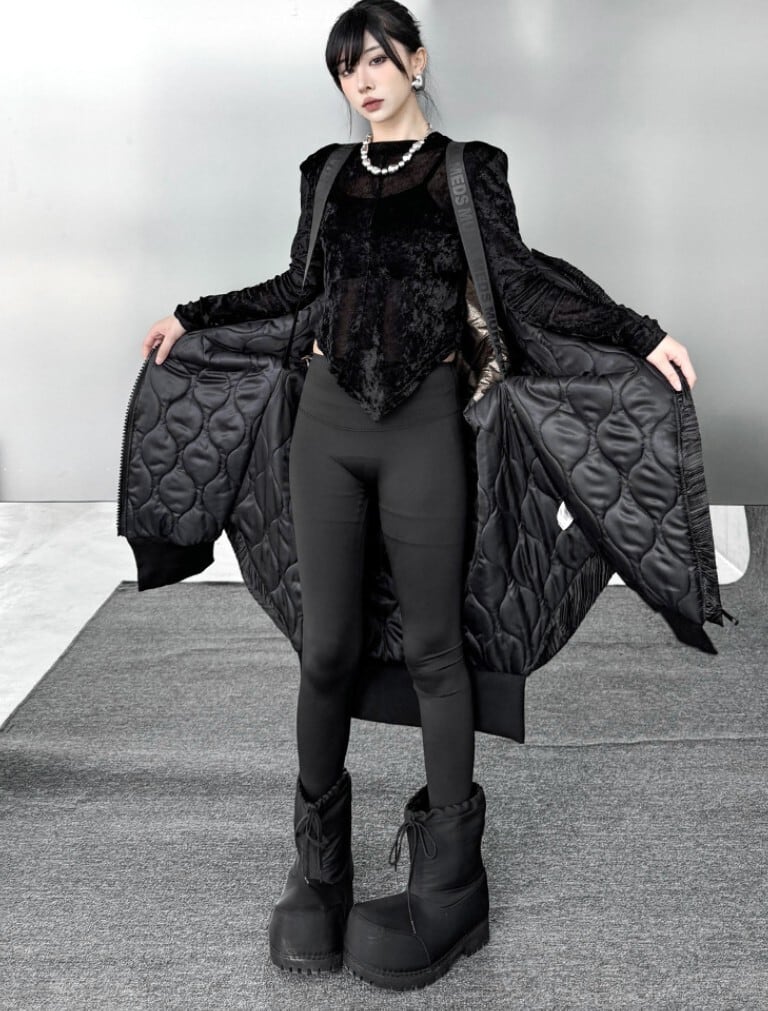 #NEIRA #ダークファッション #モード系 #韓国モード #フーデッドコート #中綿コート #オーバーサイズ #個性派アウター #ブラックコーデ #ストリートモード #ユニセックス #病みかわいい