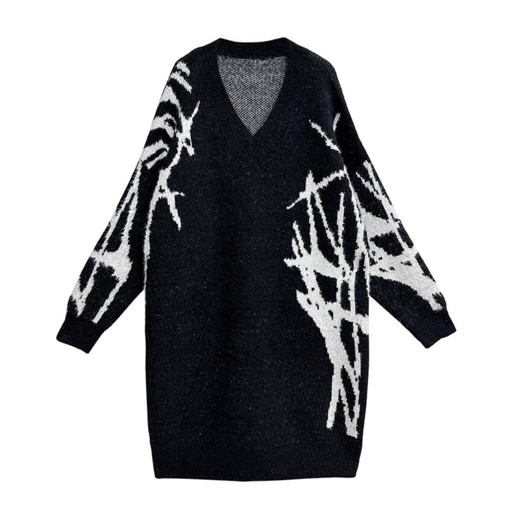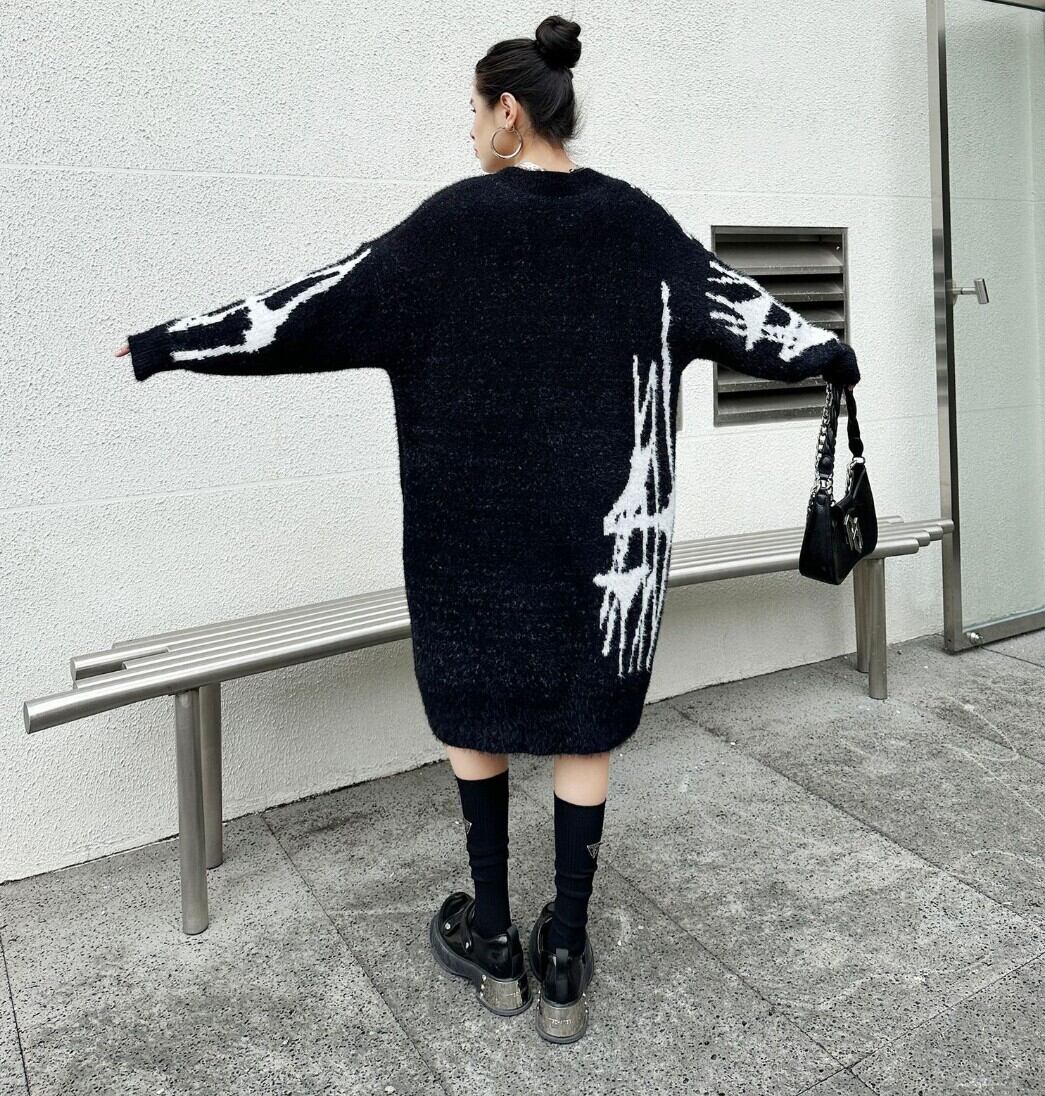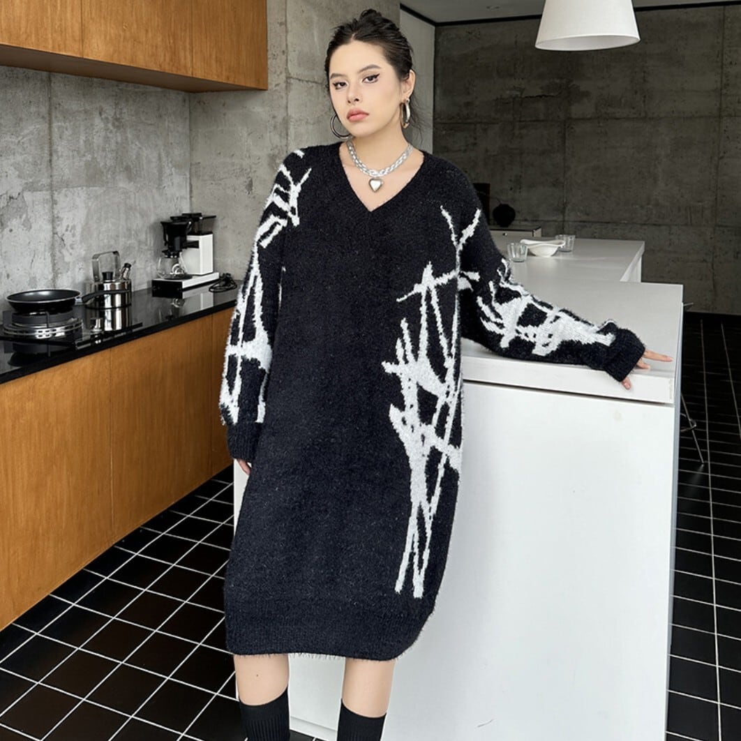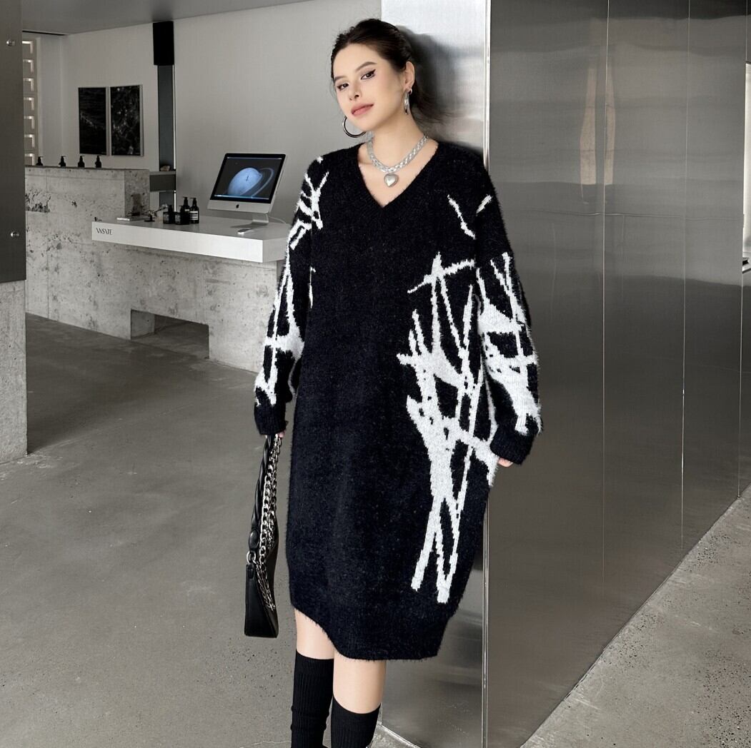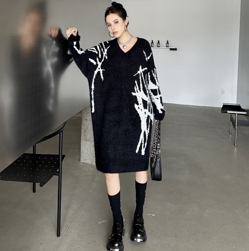 #NEIRA #ニットワンピース #Vネックワンピース #配色ニット #モードファッション #韓国ファッション #ダークコーデ #個性派ファッション #オーバーサイズ #ミディ丈 #秋冬コーデ #ストリートモード