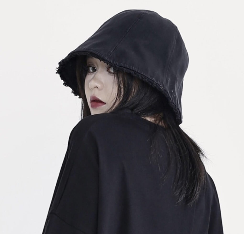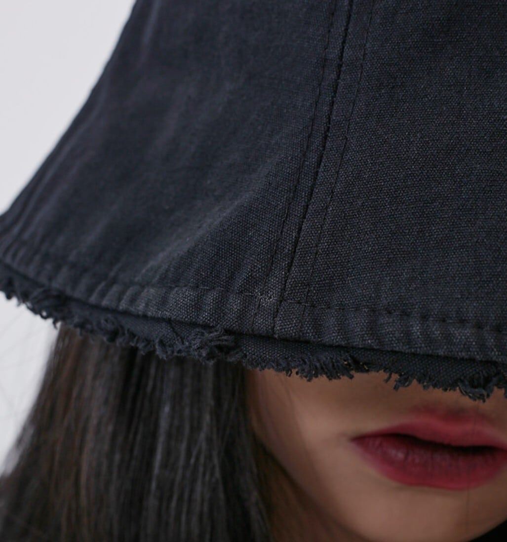 #バケットハット #ブラックハット #ユニセックス #ヴィンテージ加工 #フリンジデザイン #モードコーデ #ストリートファッション #ミニマル #韓国ファッション #NEIRA
