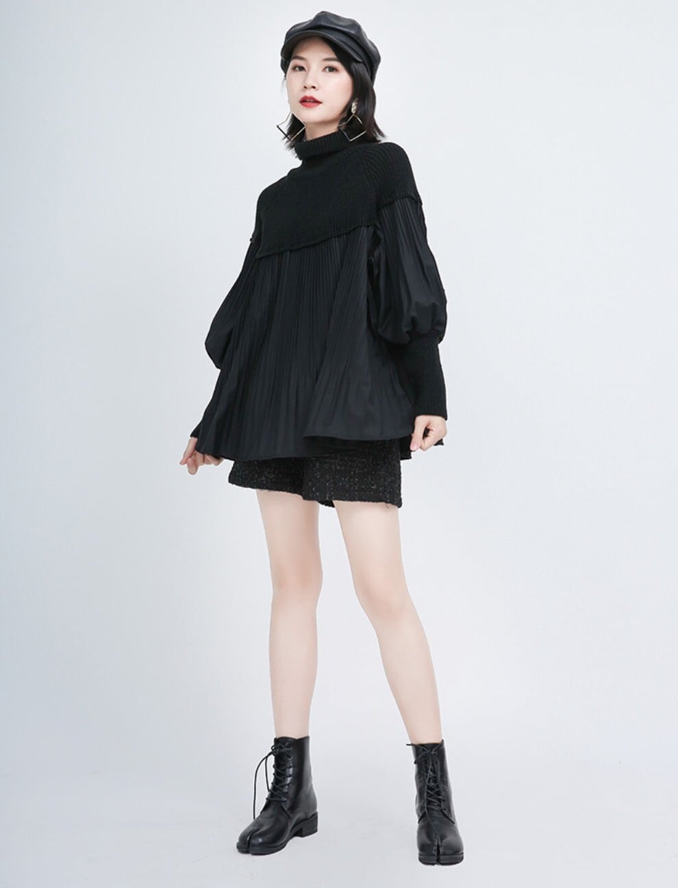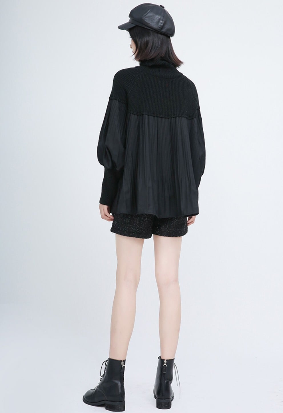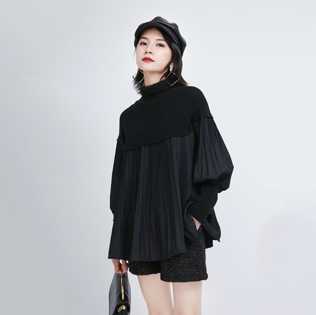 モダンバイカラープリーツセーター・ニット/レディース 韓国ファッション モード系|NEIRA