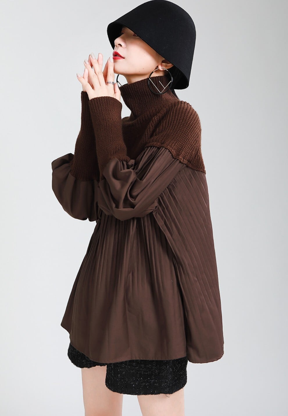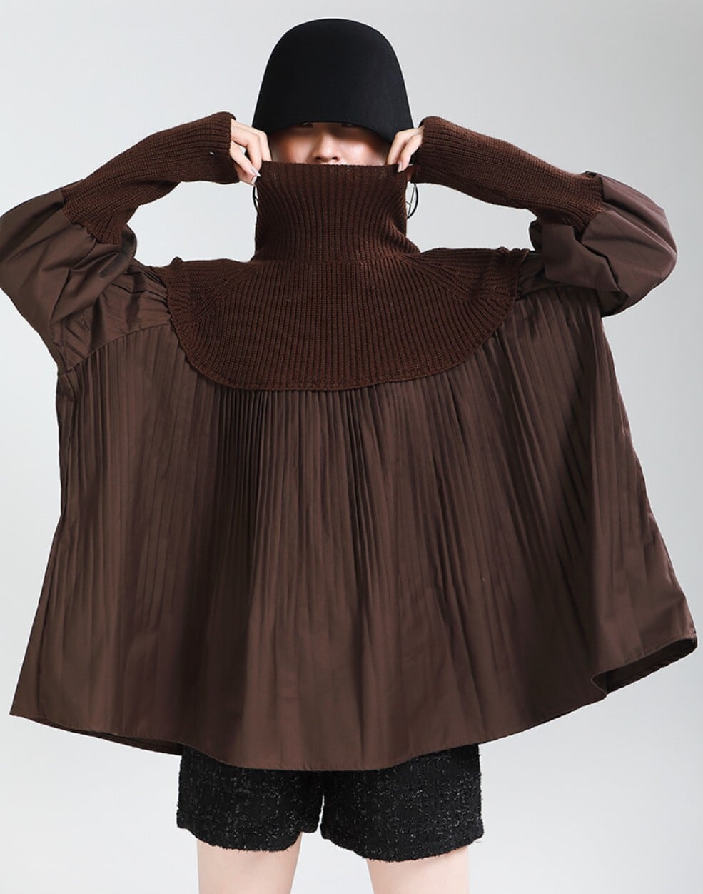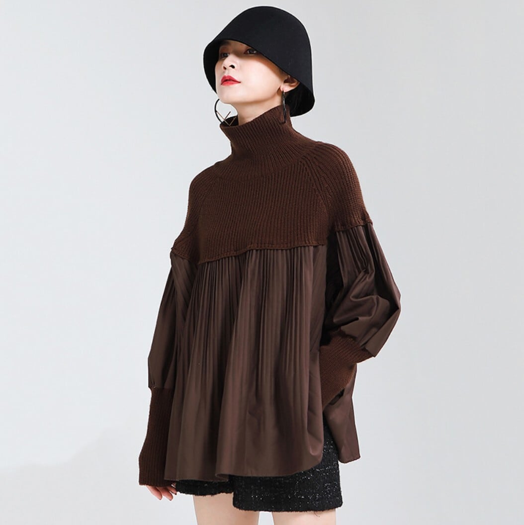モダンバイカラープリーツセーター・ニット/レディース 韓国ファッション モード系|NEIRA