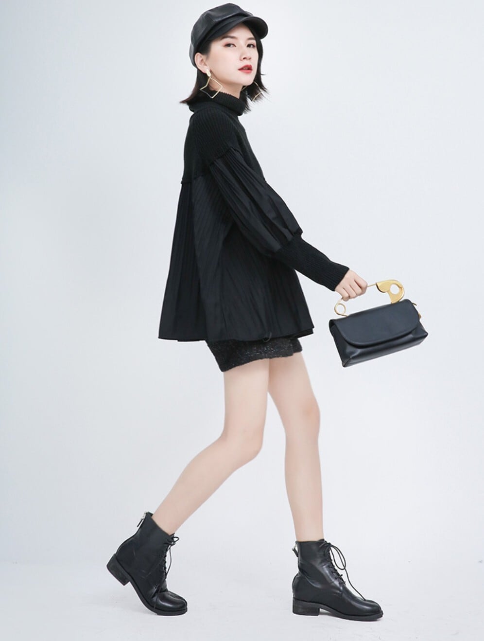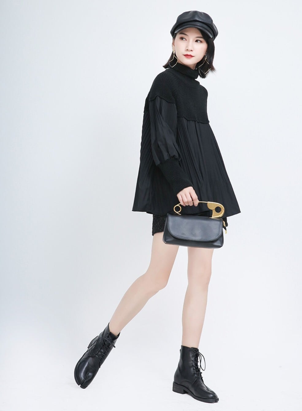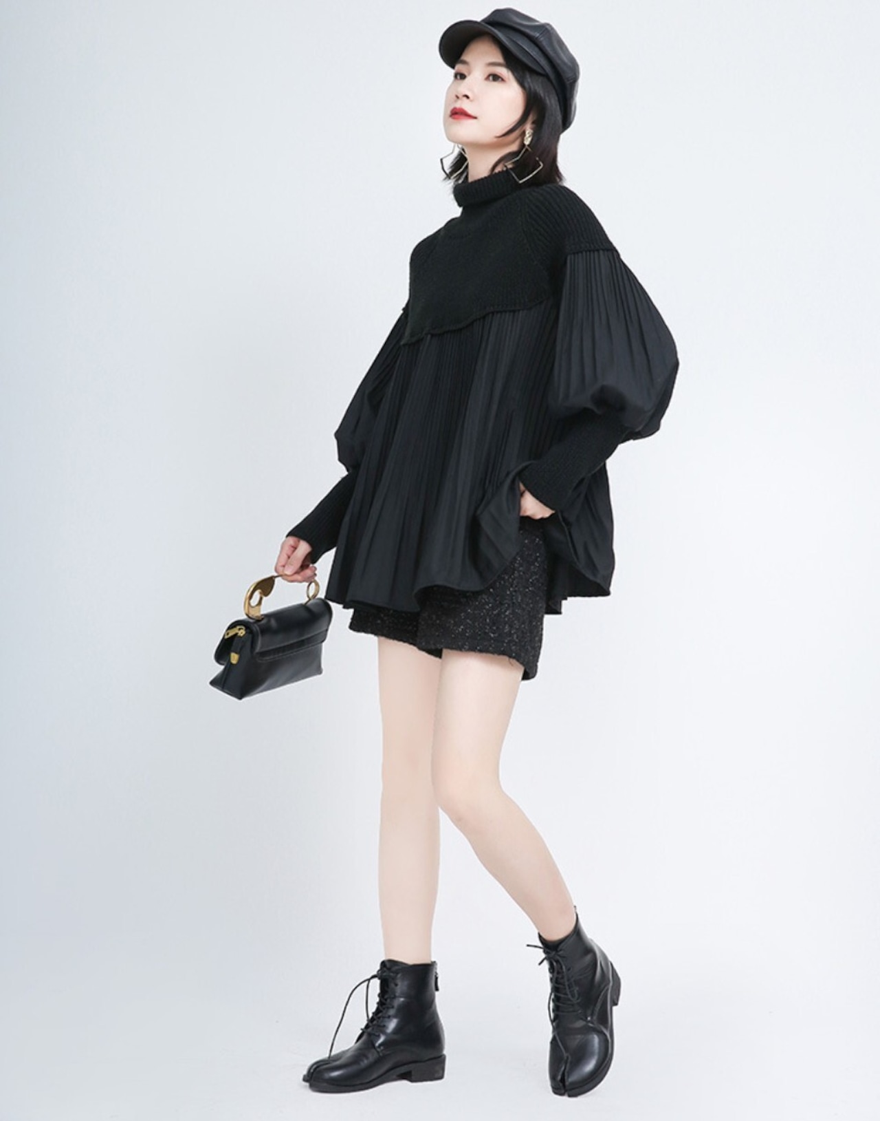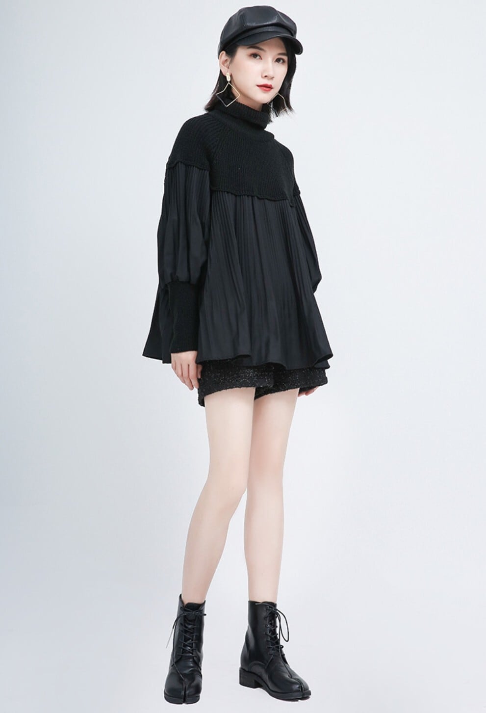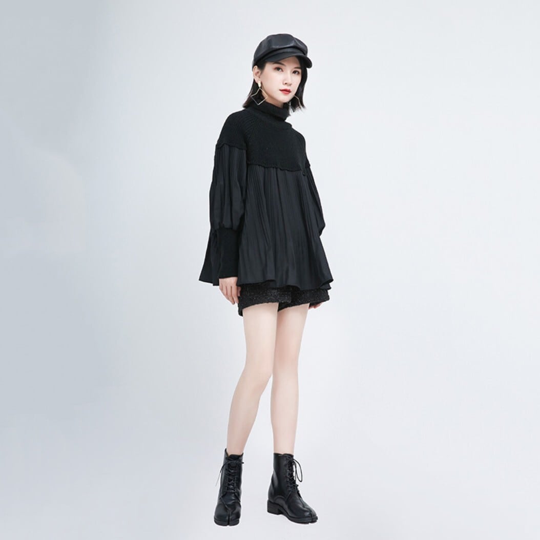 #NEIRA #モード系 #韓国ファッション #ダークモード #ニットトップス #タートルネック #プリーツトップス #チュニック丈 #オーバーサイズ #個性派ファッション