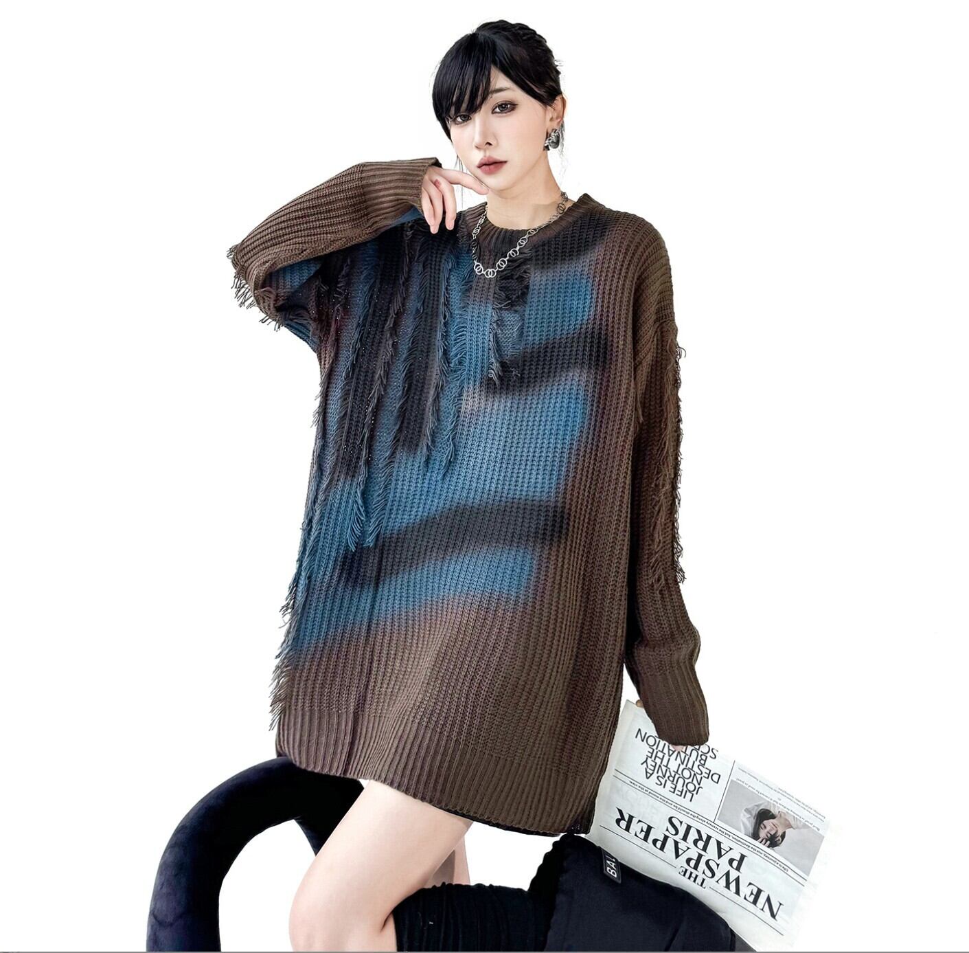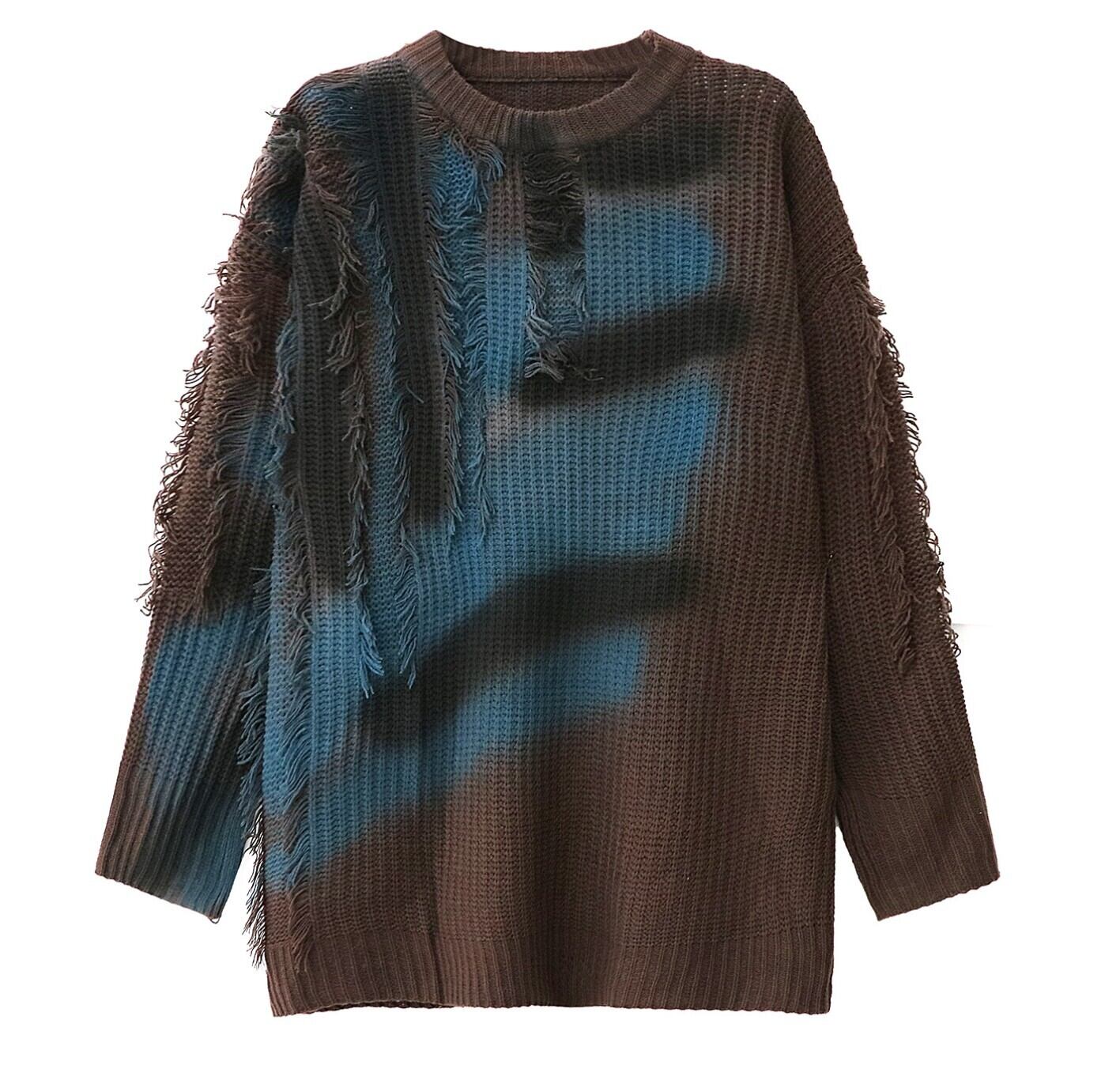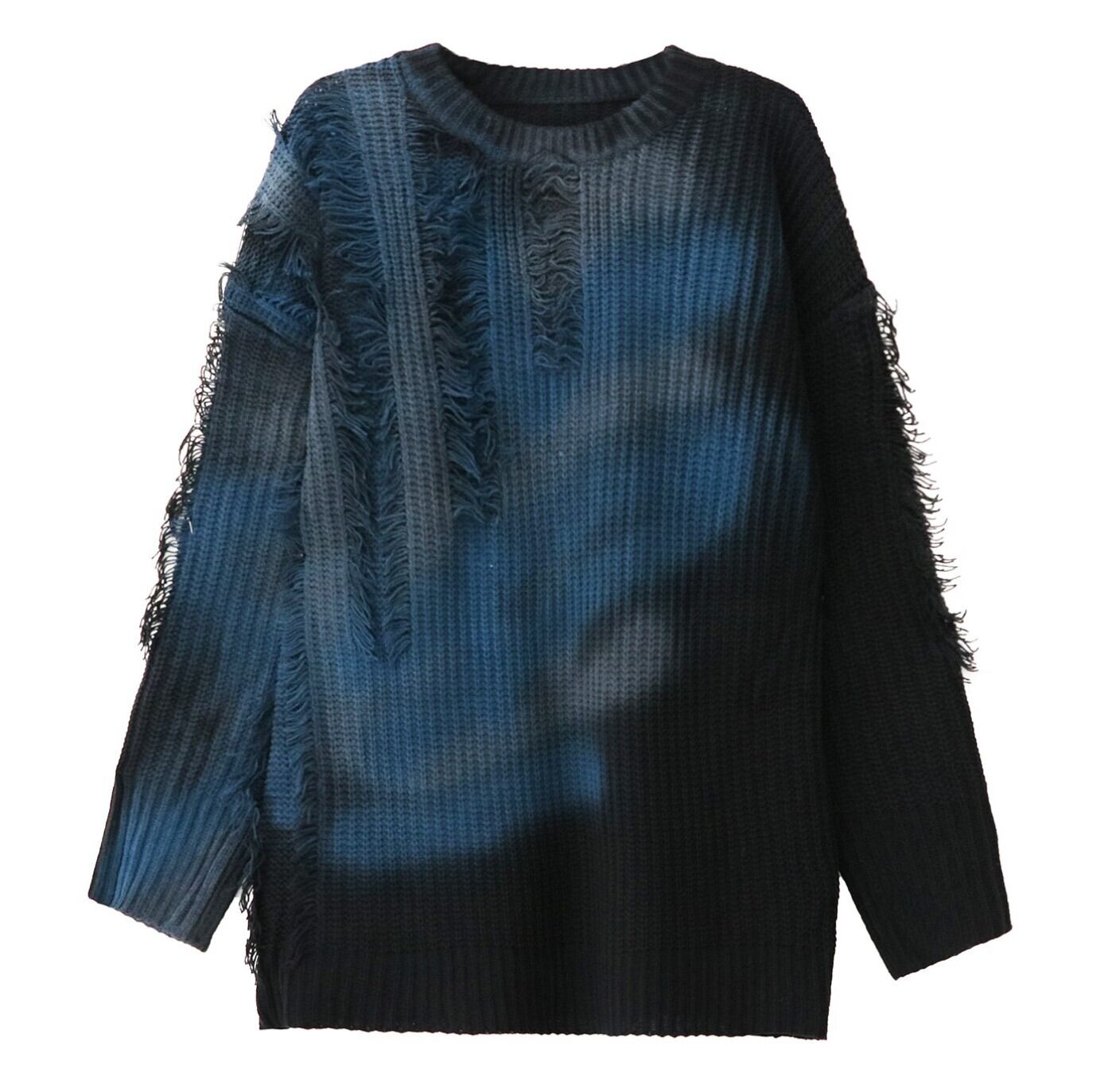 ブルーグラデ フリンジダメージオーバーニット / 韓国モード