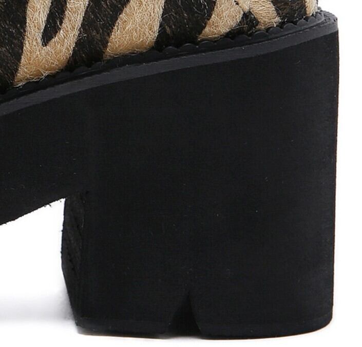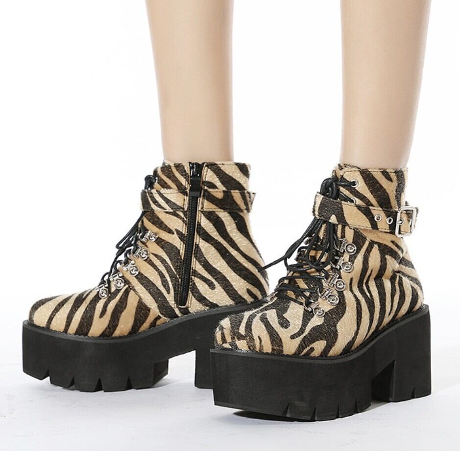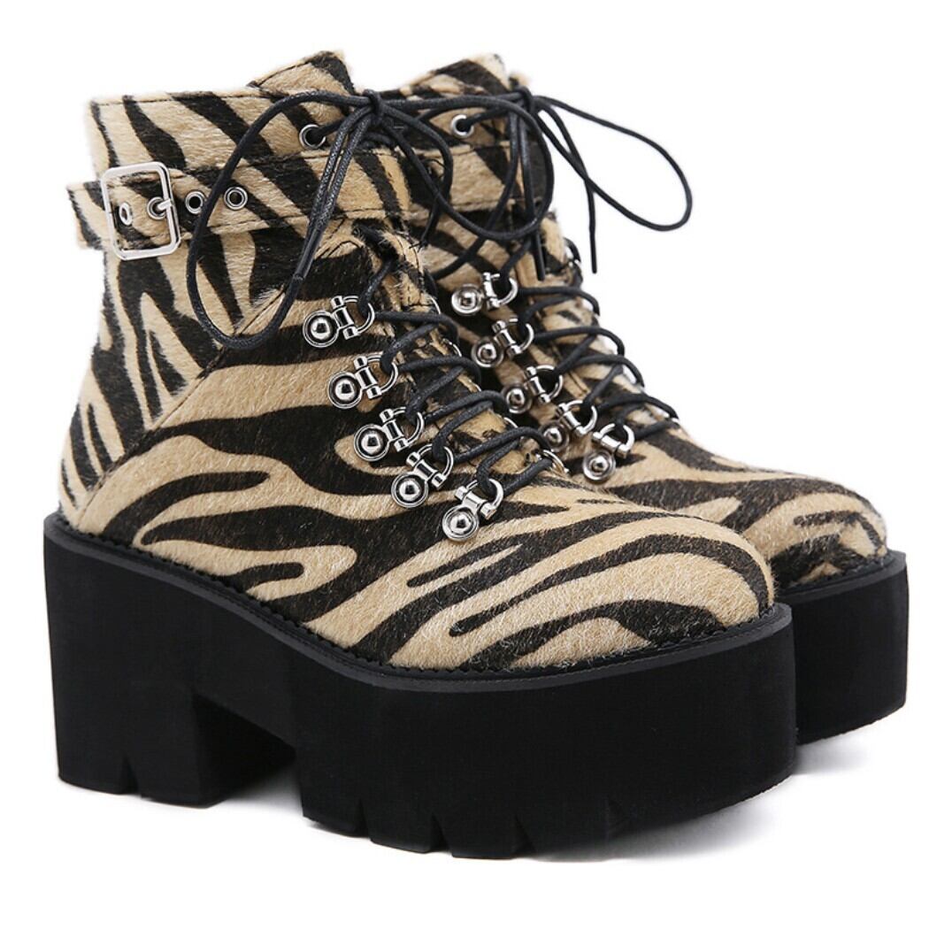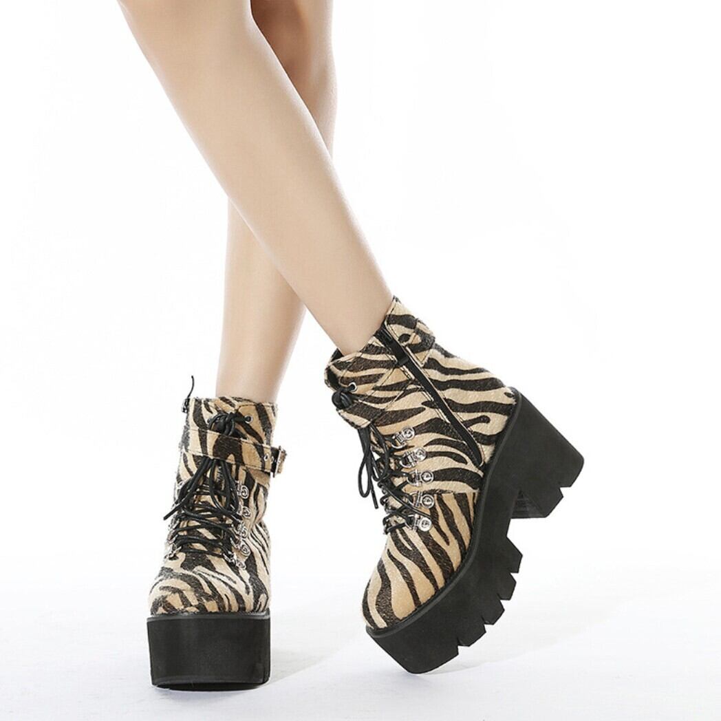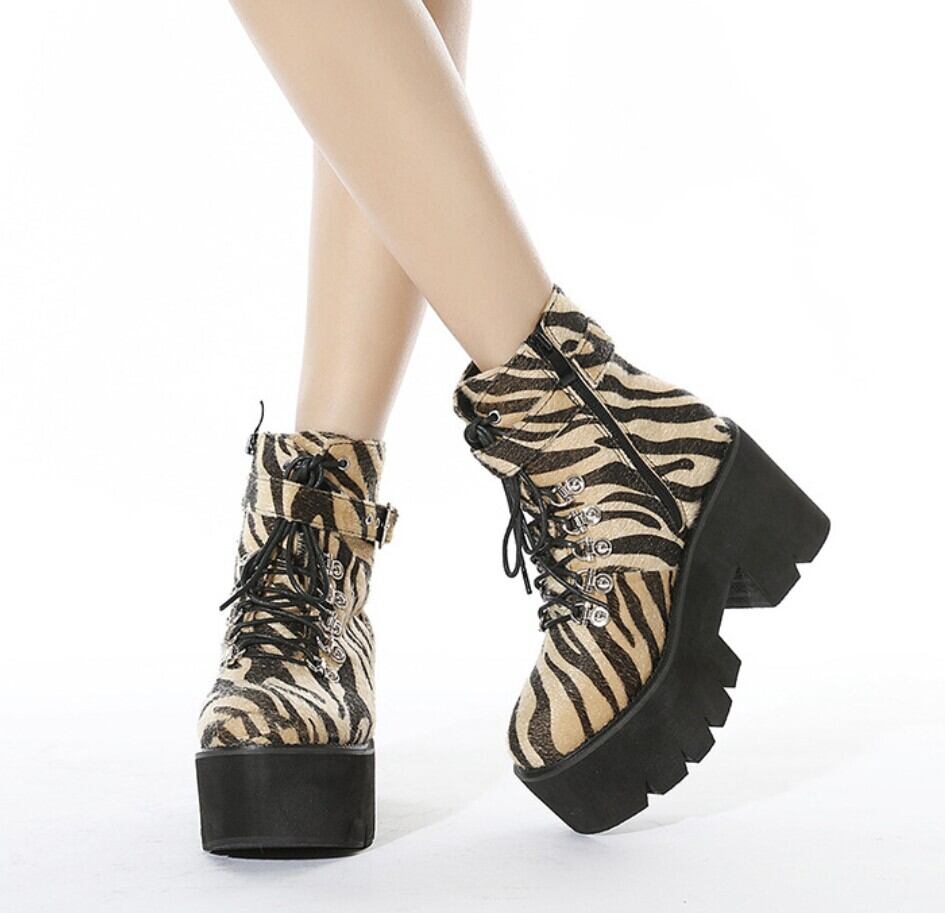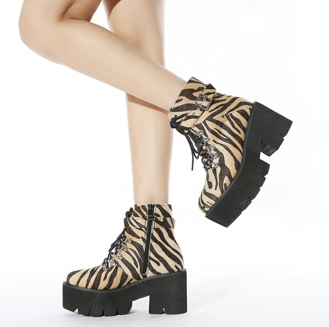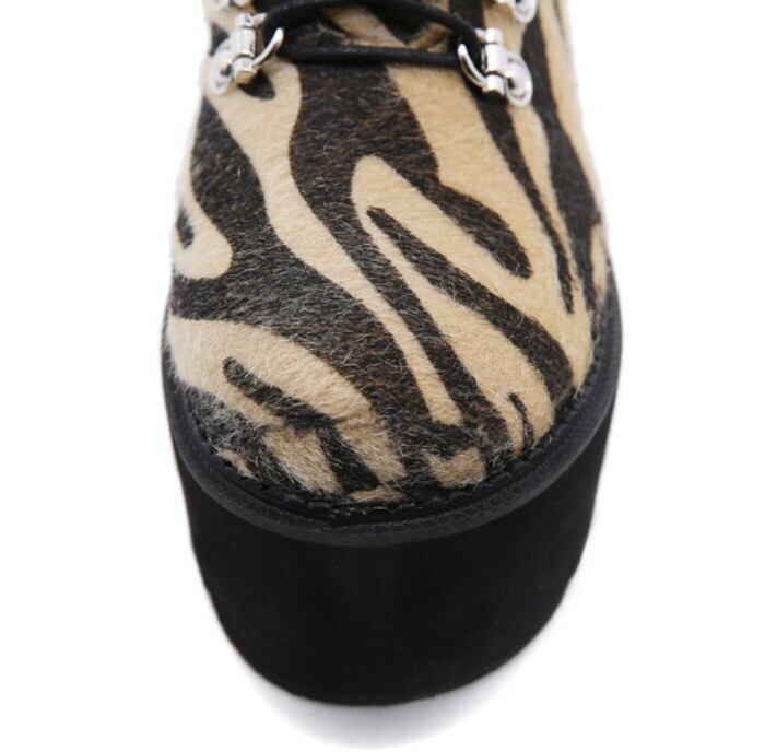 ゼブラ柄ハラコ風 厚底レースアップショートブーツ/ 韓国モード
