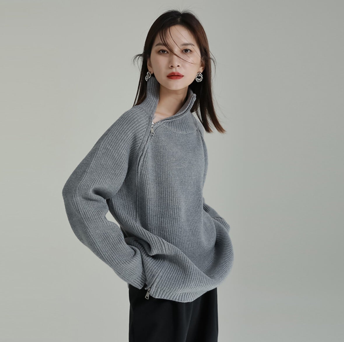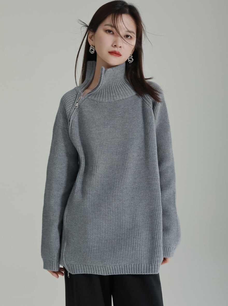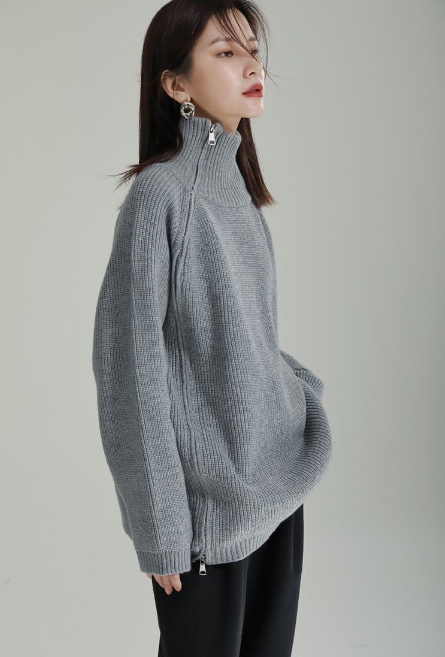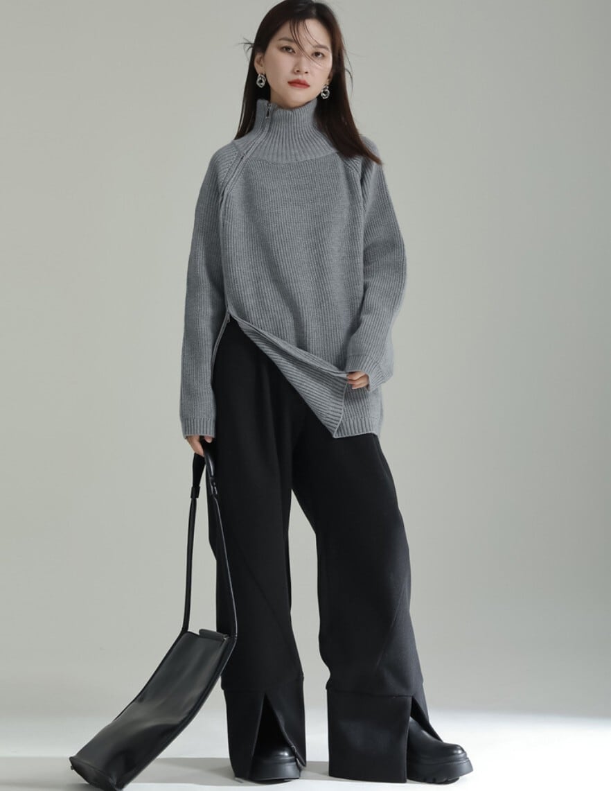 【即発送/送料無料】サイドジップハイネックニットプルオーバー / 韓国モード