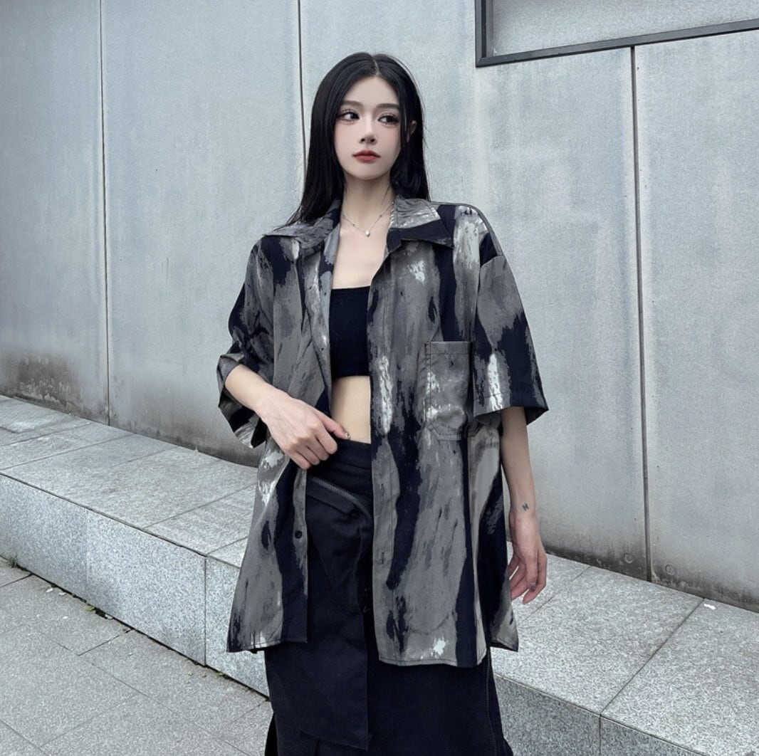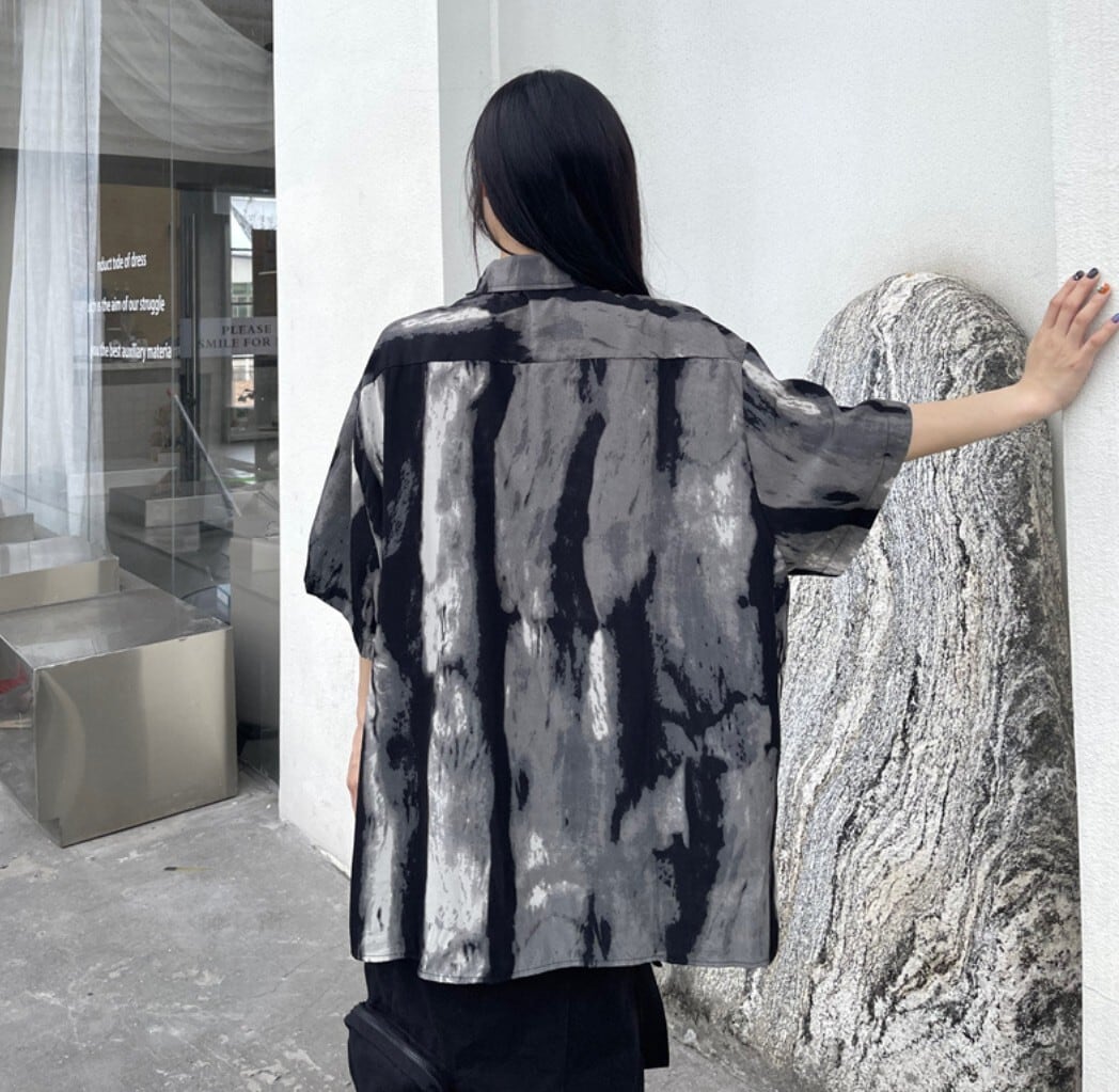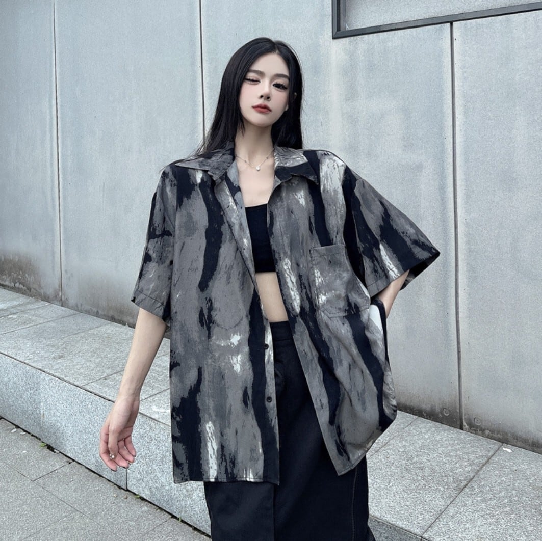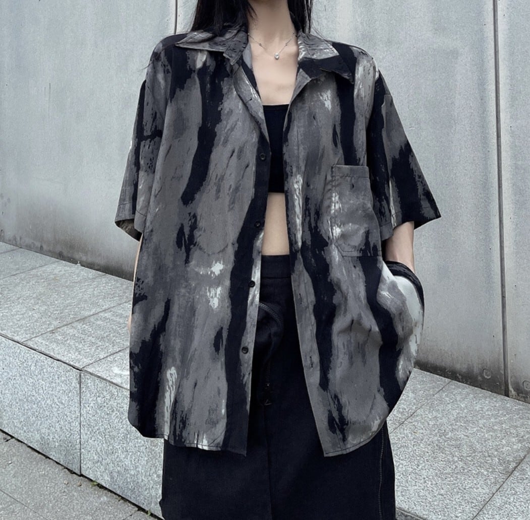 インクカモ柄 ビッグポケット半袖シャツジャケット / 韓国モード