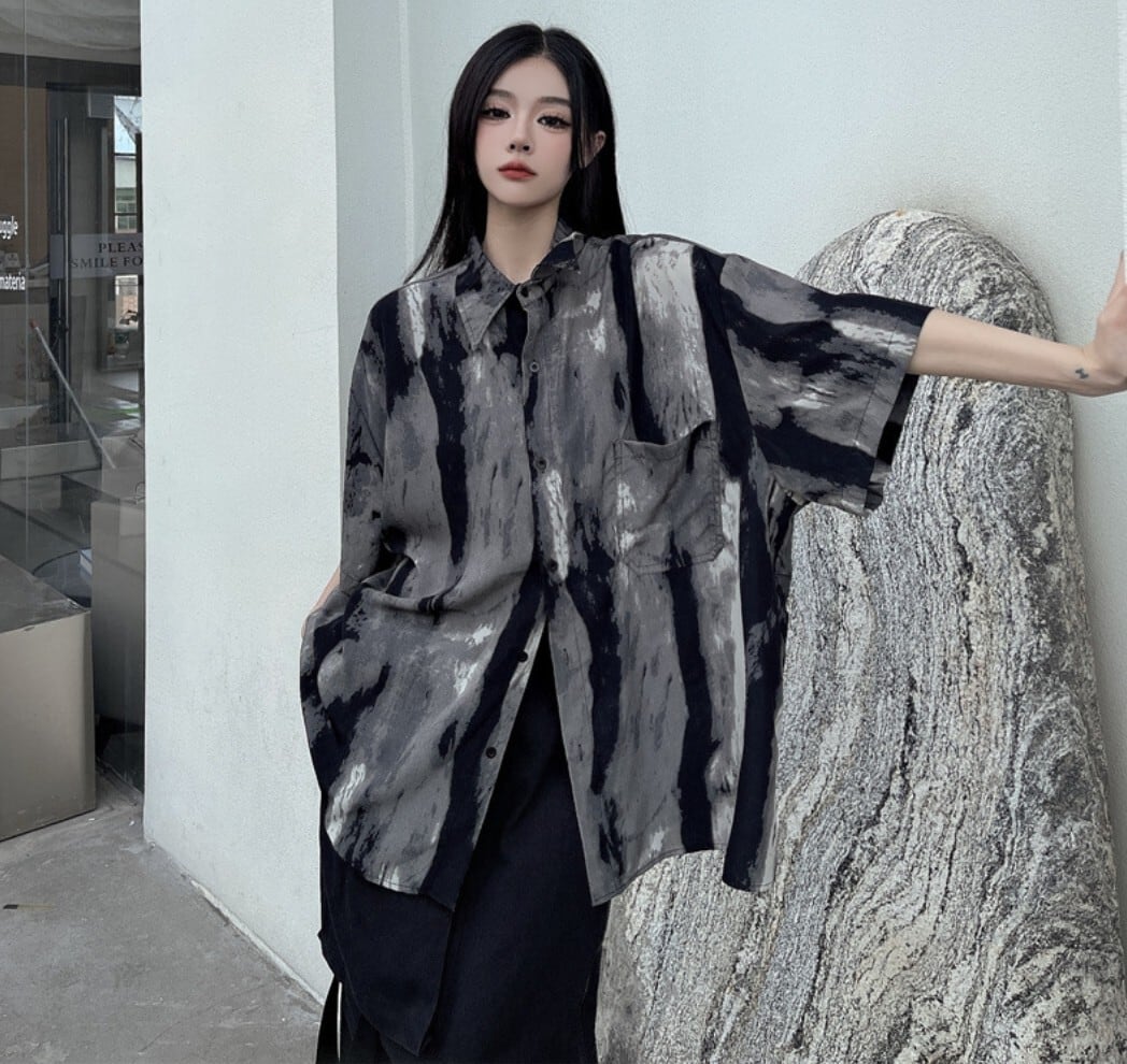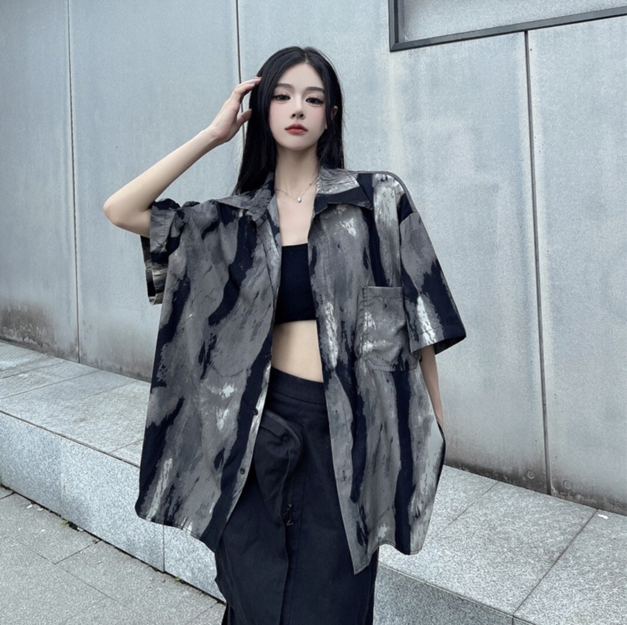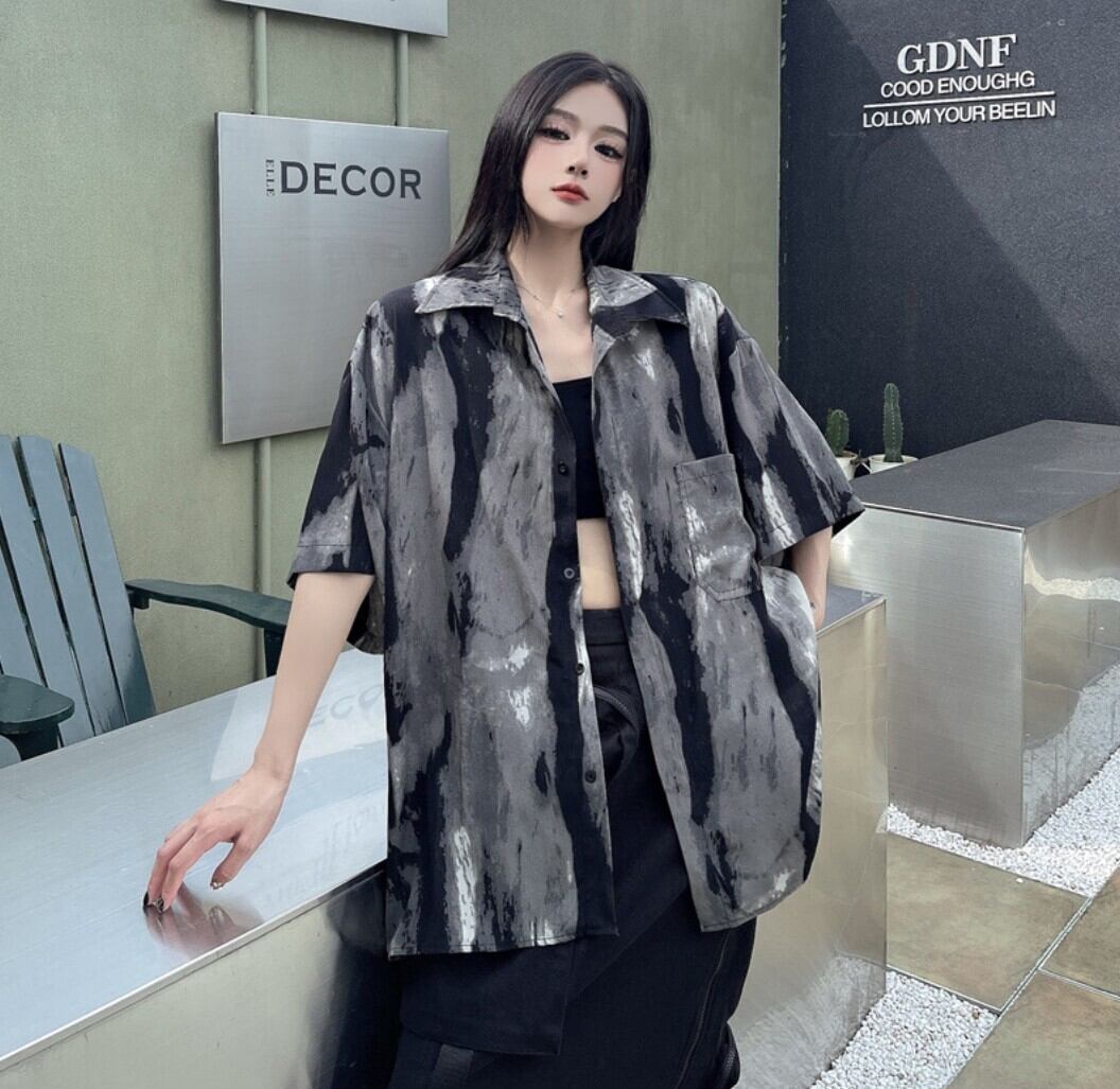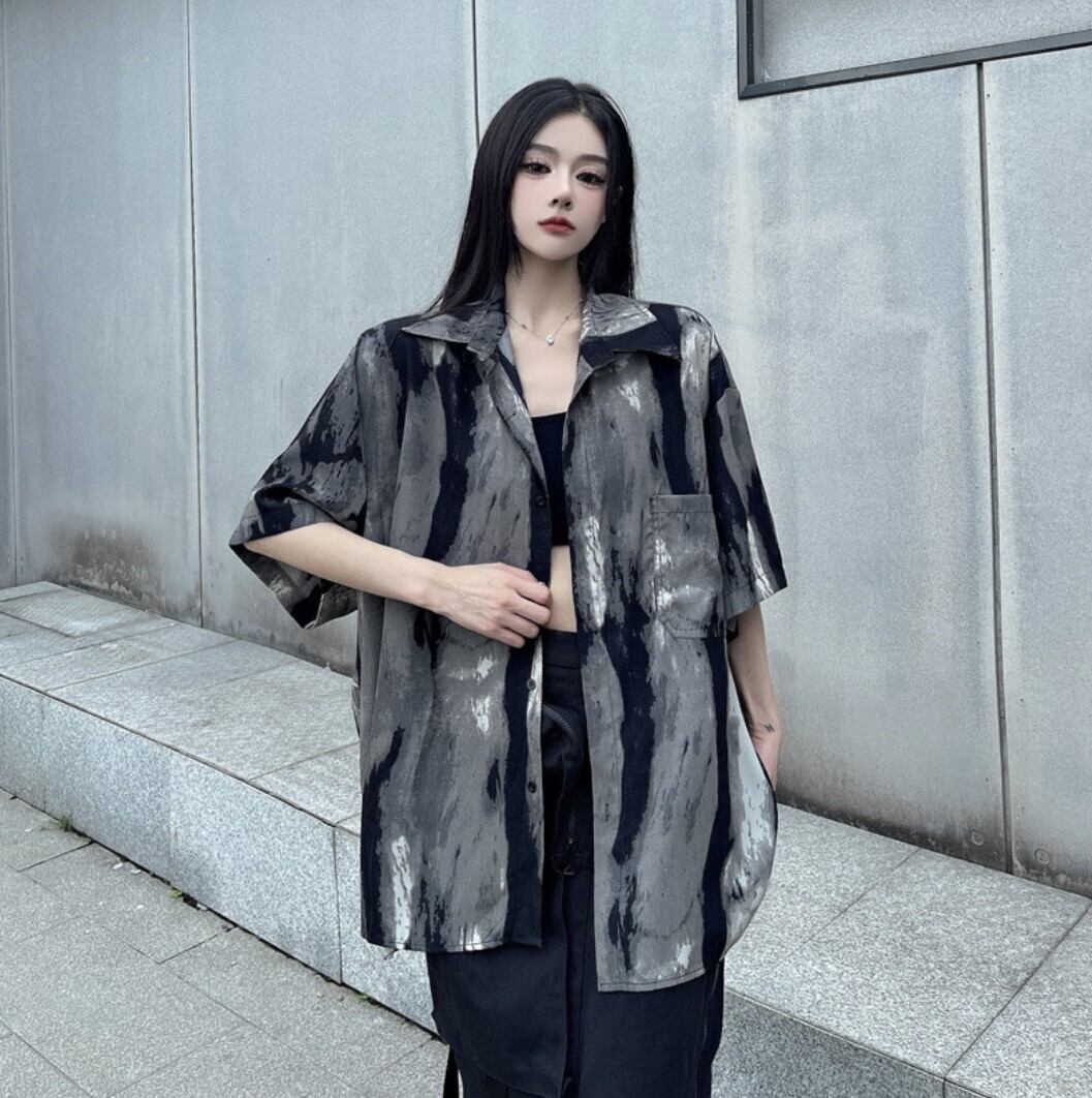 インクカモ柄 ビッグポケット半袖シャツジャケット / 韓国モード