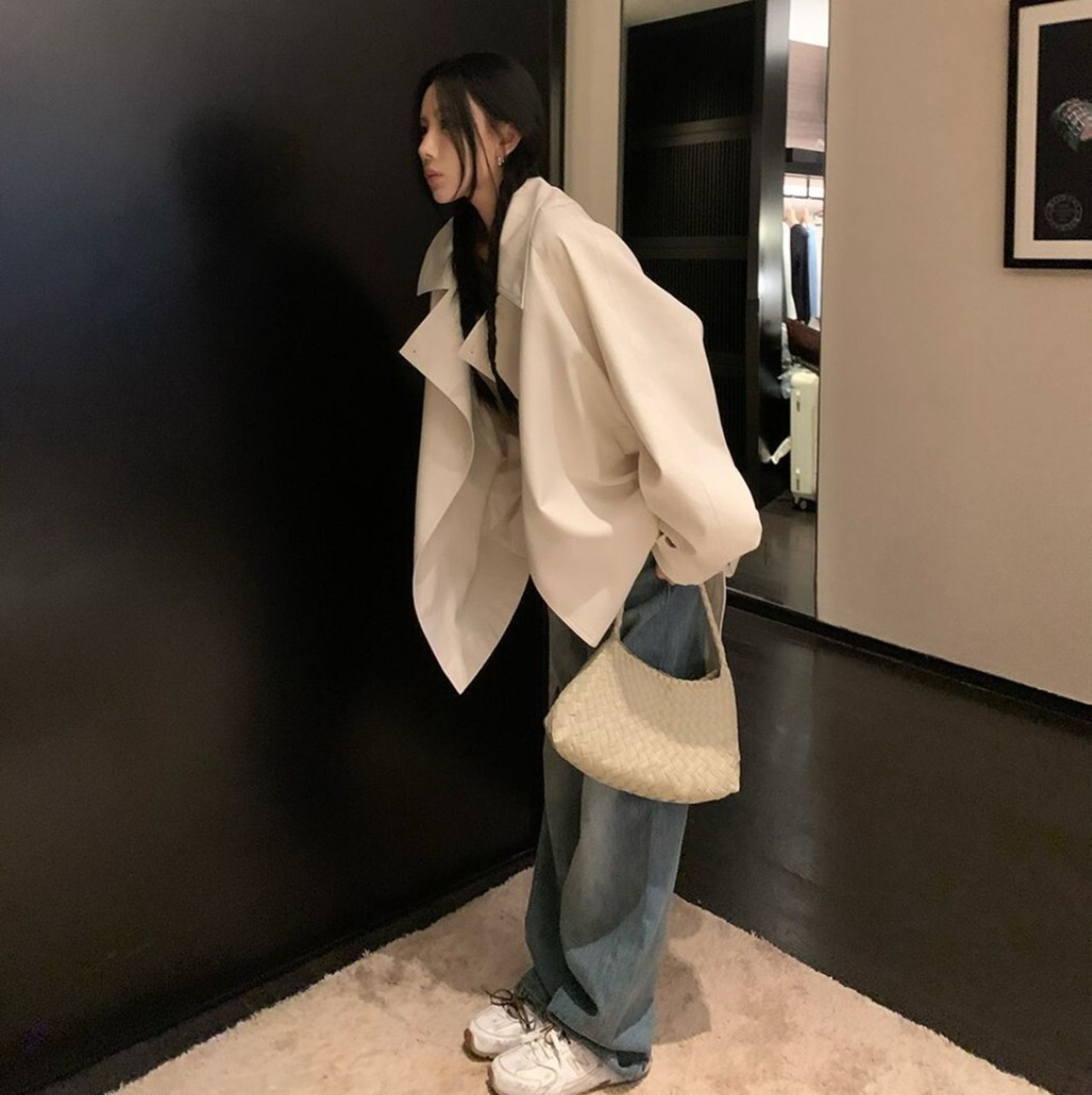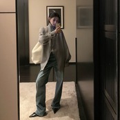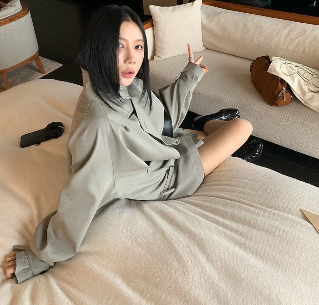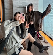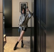 ・ミニ丈ボトムとロングブーツを合わせて、韓国モード寄りの着こなしに