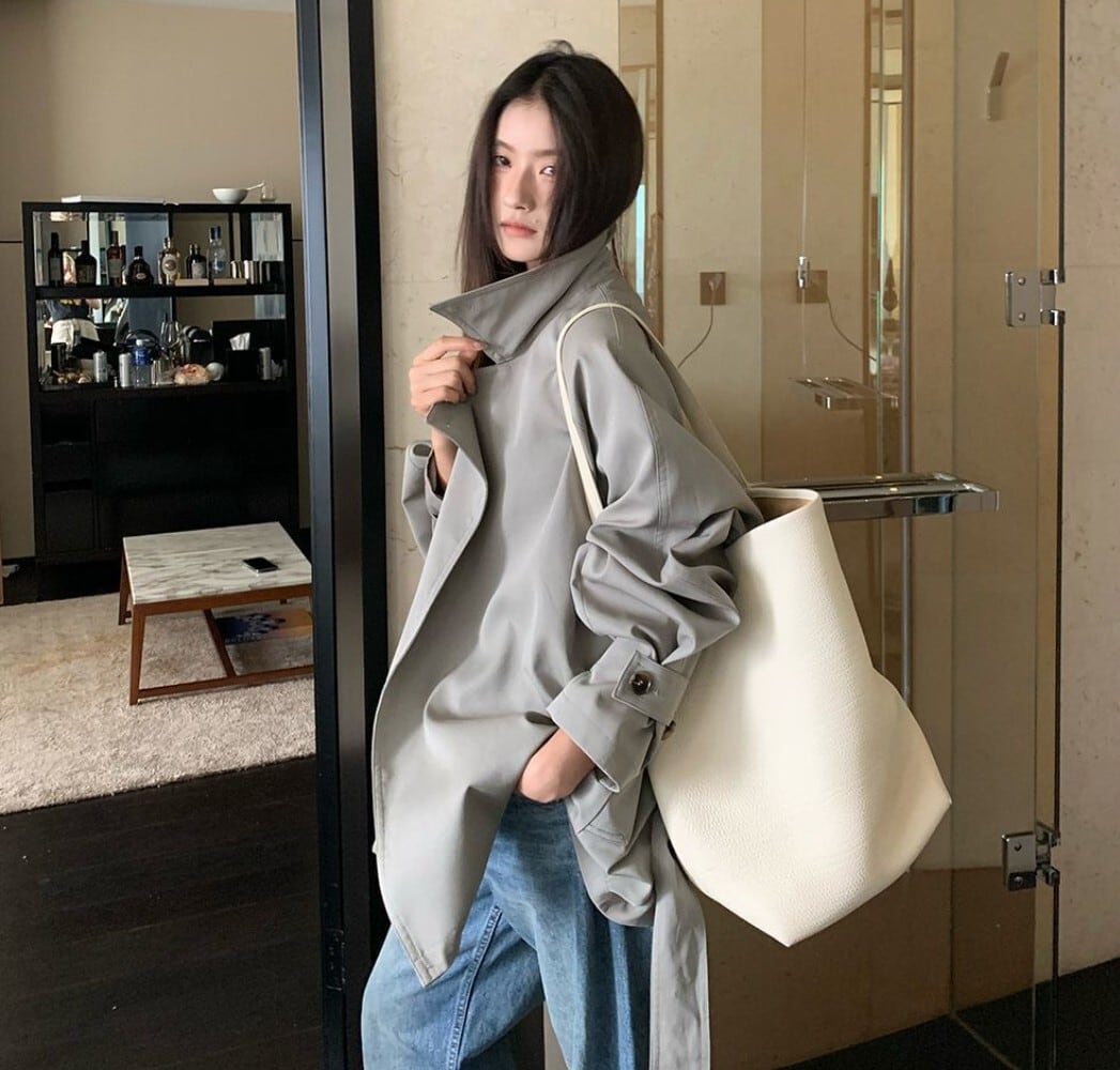 普通のトレンチよりもデザイン性がありつつ、着こなしには取り入れやすい絶妙なボリューム感に仕上がっています。