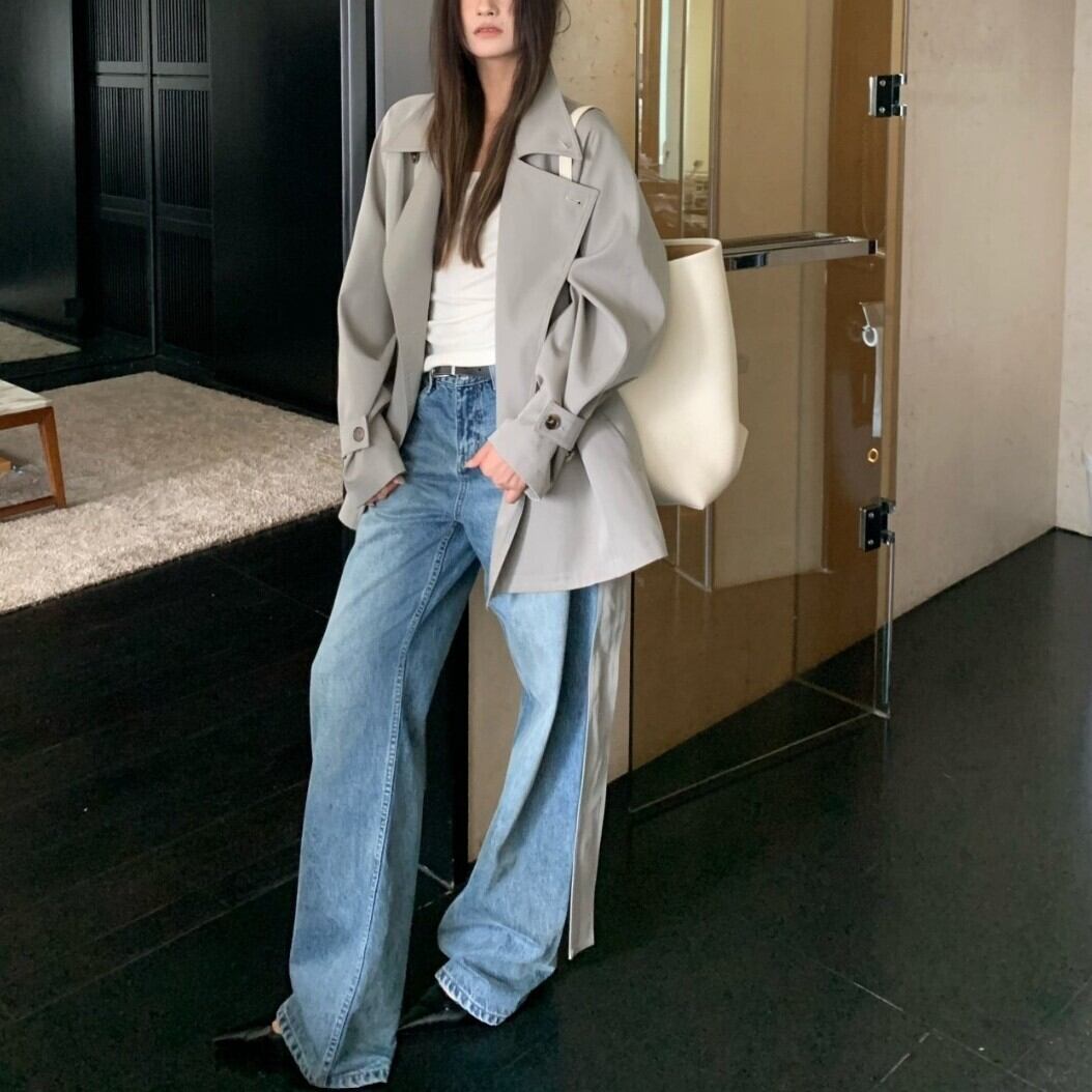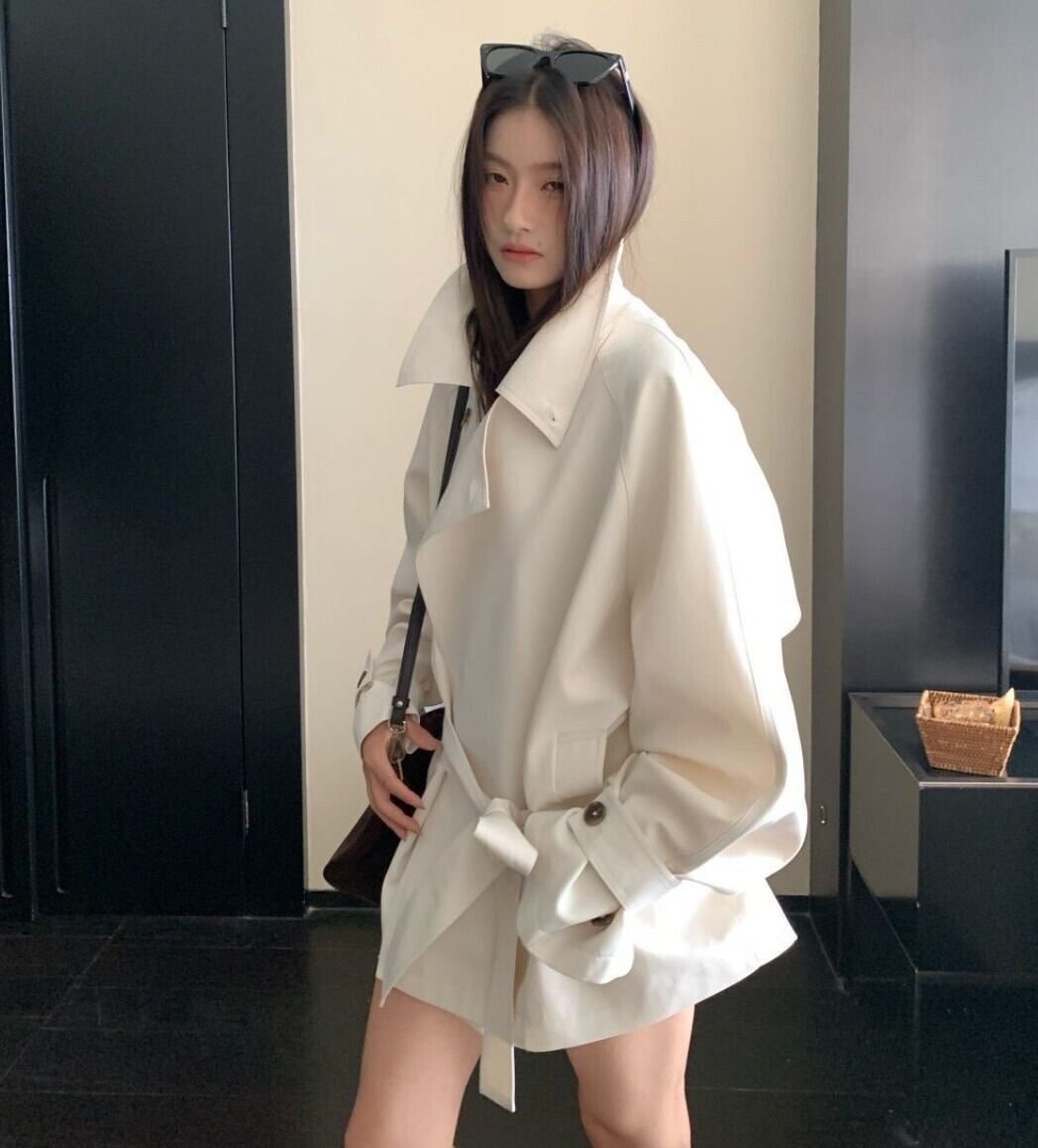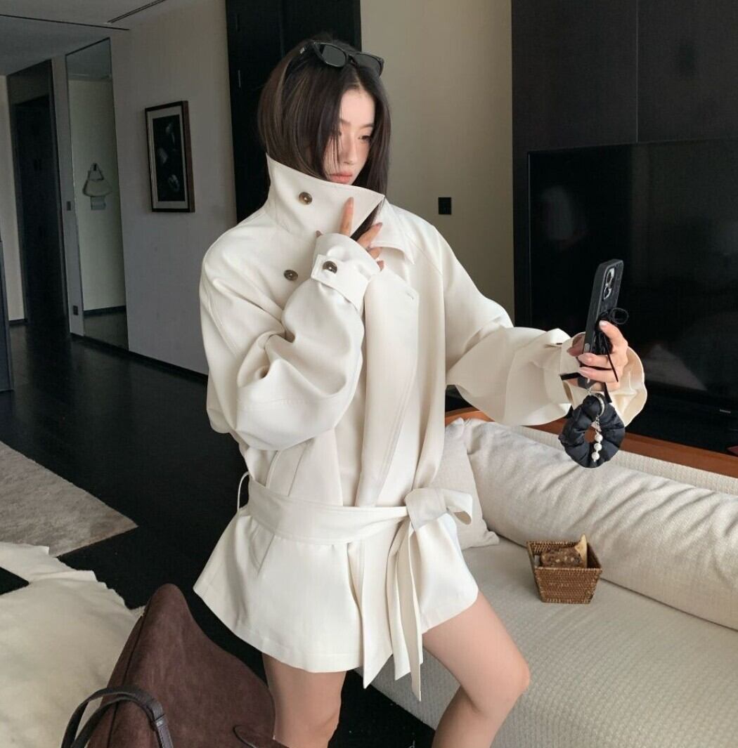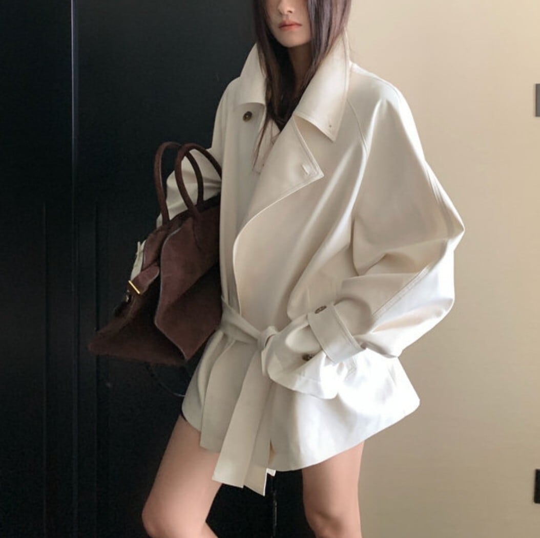 アシンメトリーラペル ベルト付きトレンチジャケット / 韓国モード