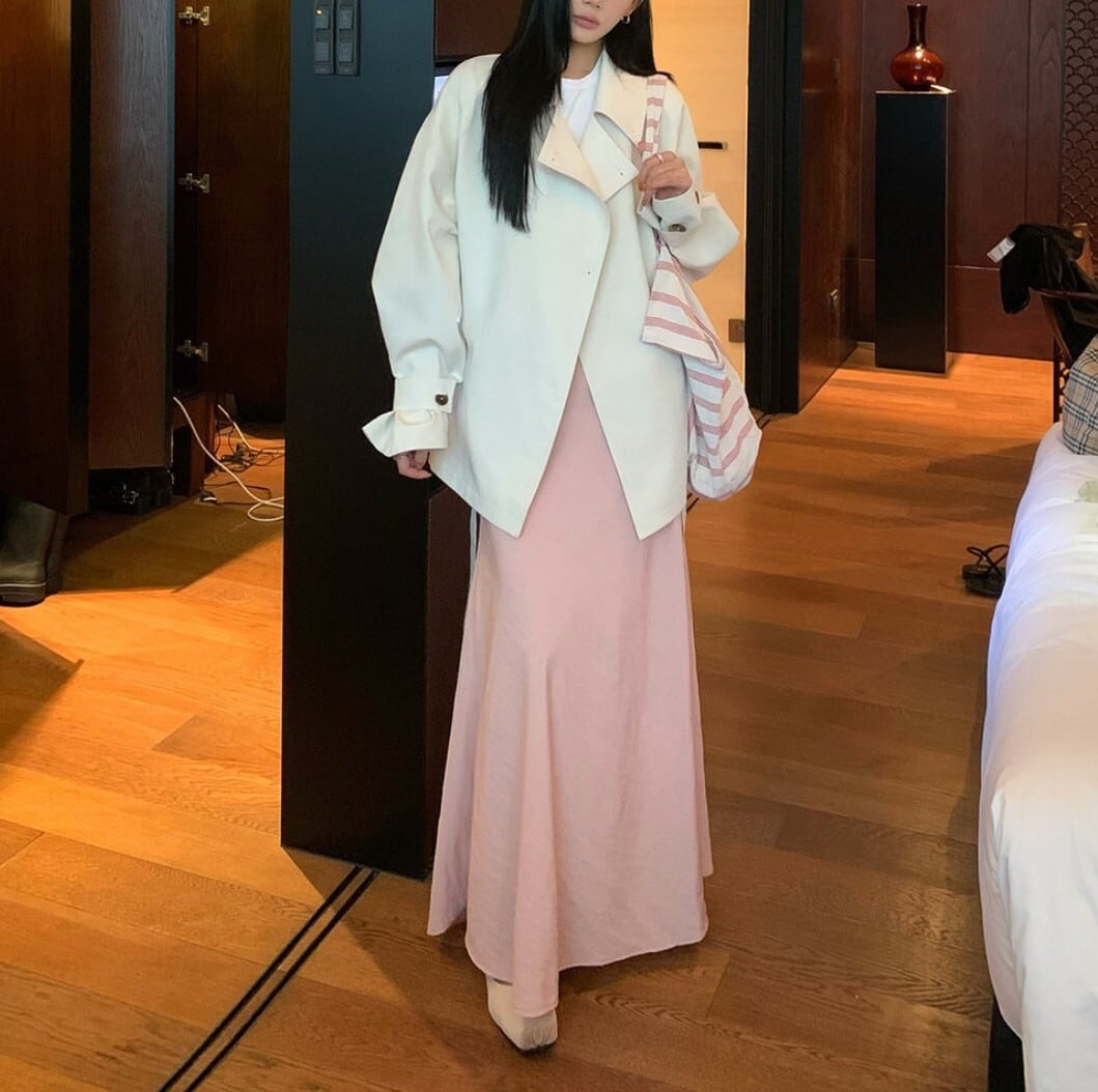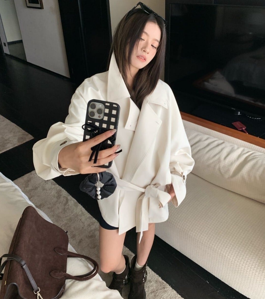 ミニ丈ボトムからデニム、ロングスカートまで幅広く合わせやすく、韓国モードやストリート寄りのスタイリングにも相性の良いデザイン。