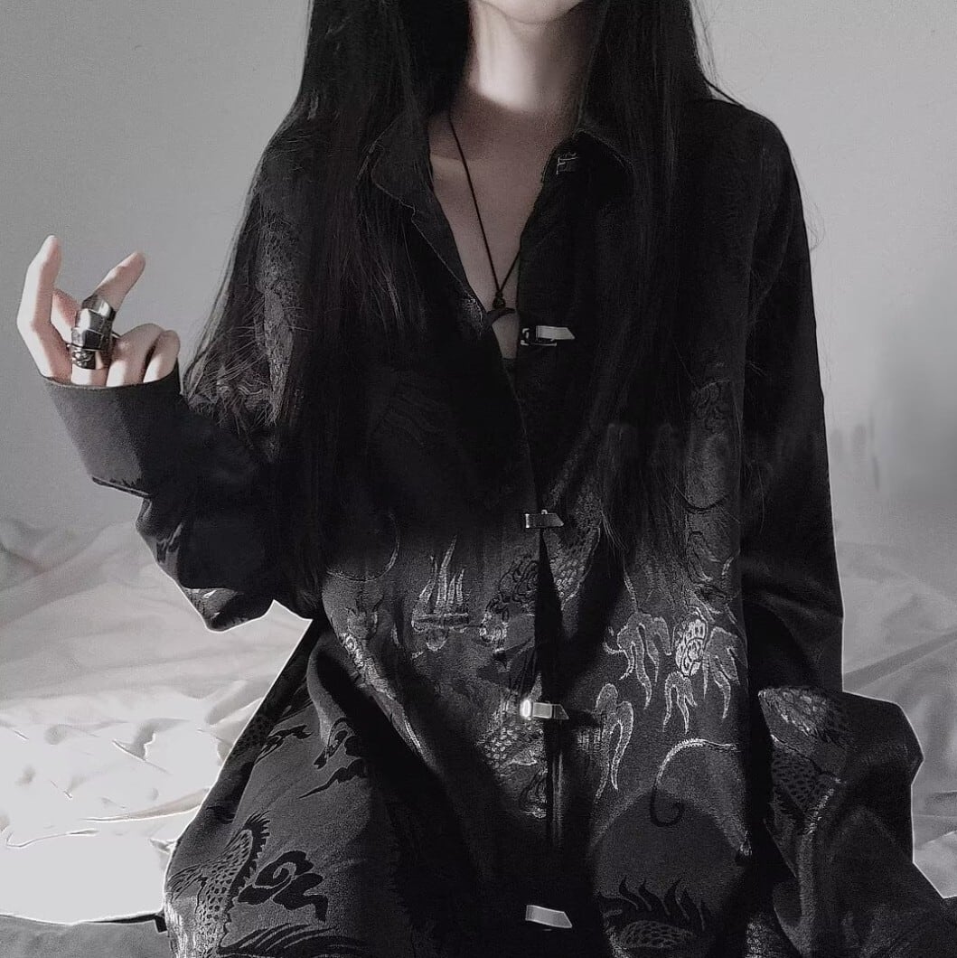 ドラゴンジャカード チャイナボタンシャツ / 韓国モード
