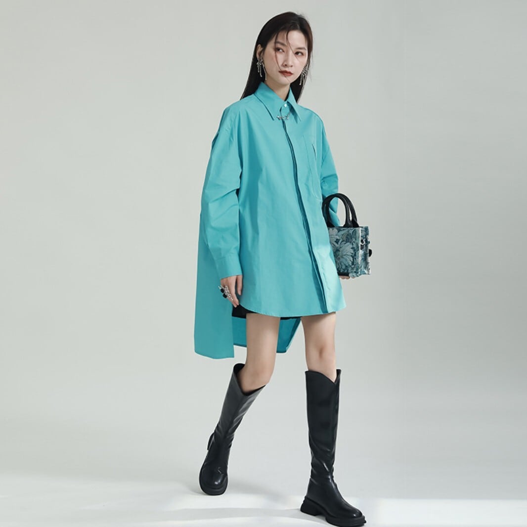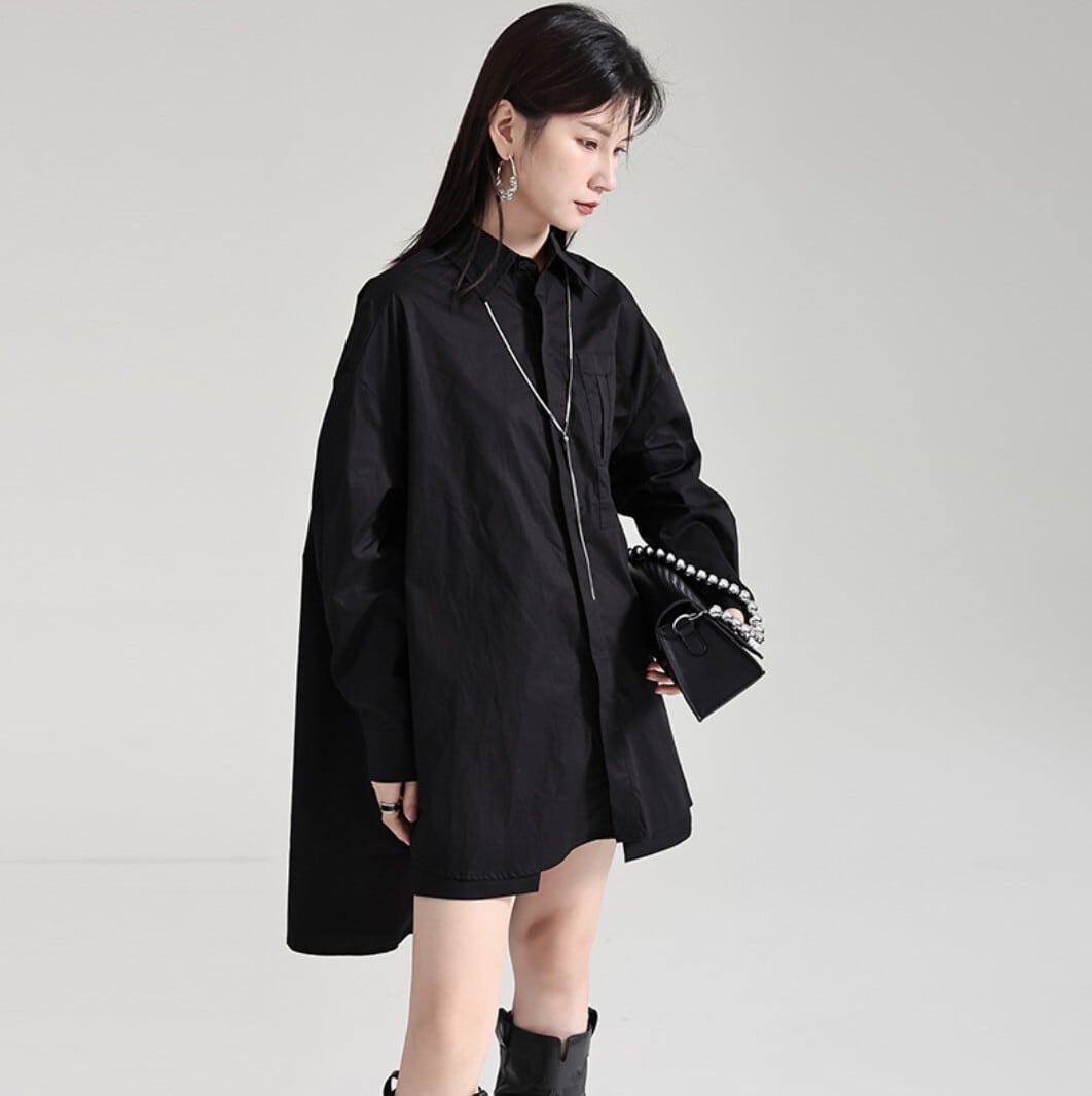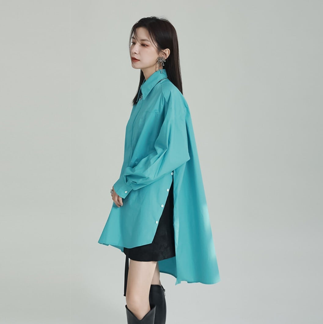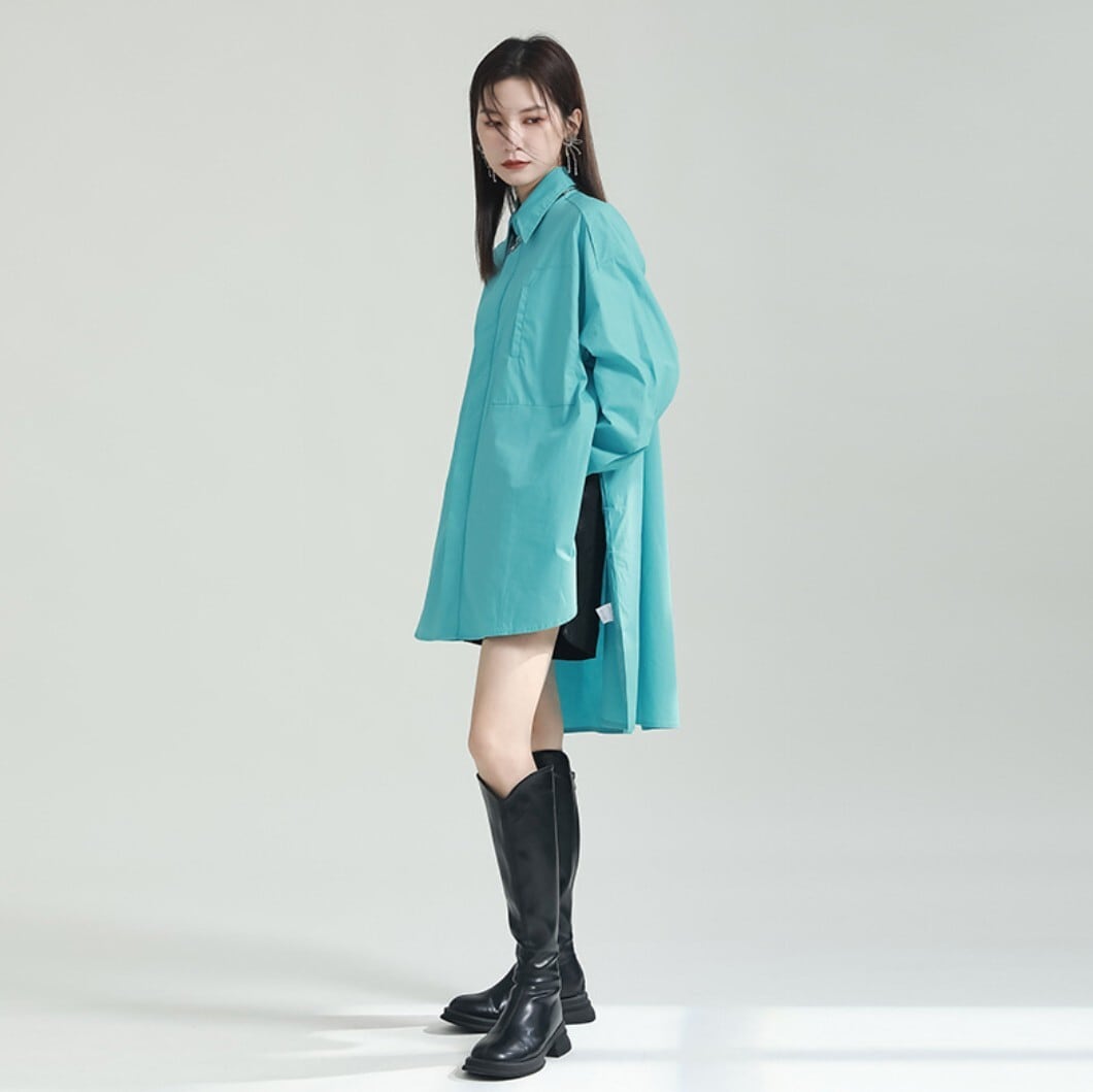 前後差バックロングシャツ(ブラック/ホワイト/ブルー) / 韓国モード