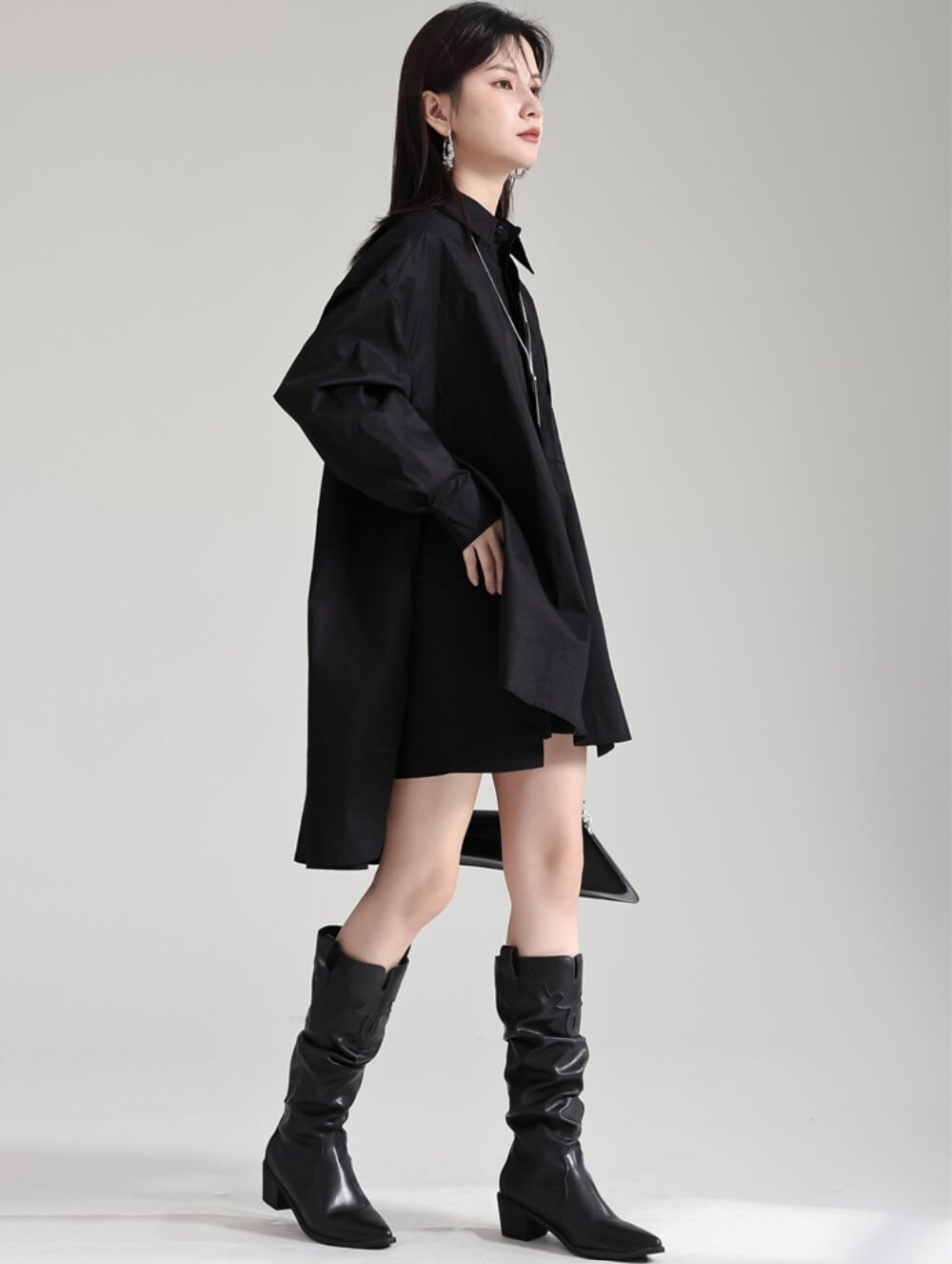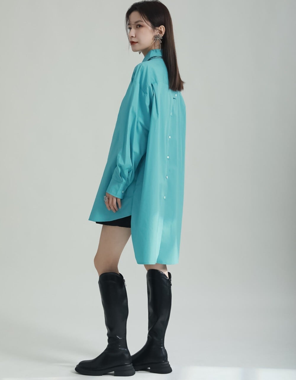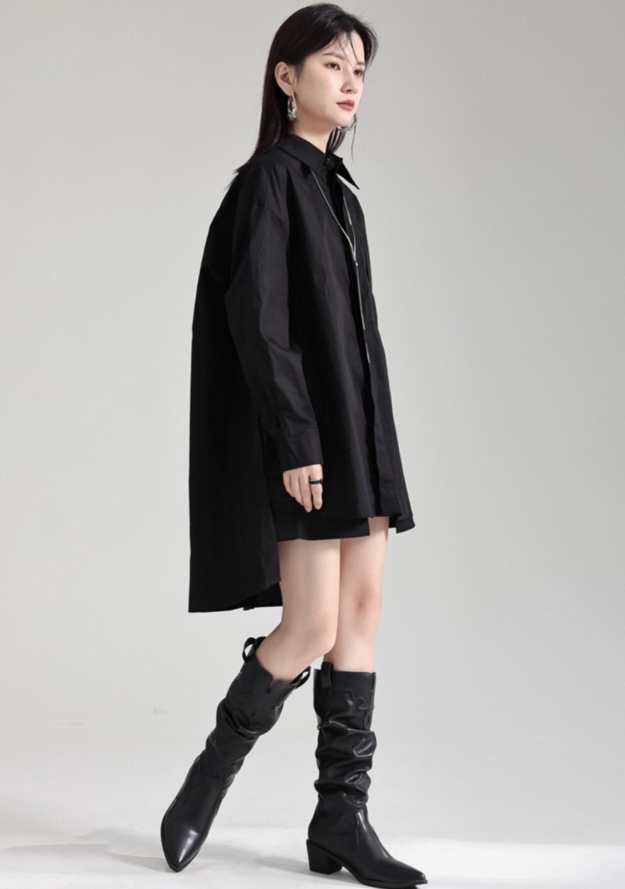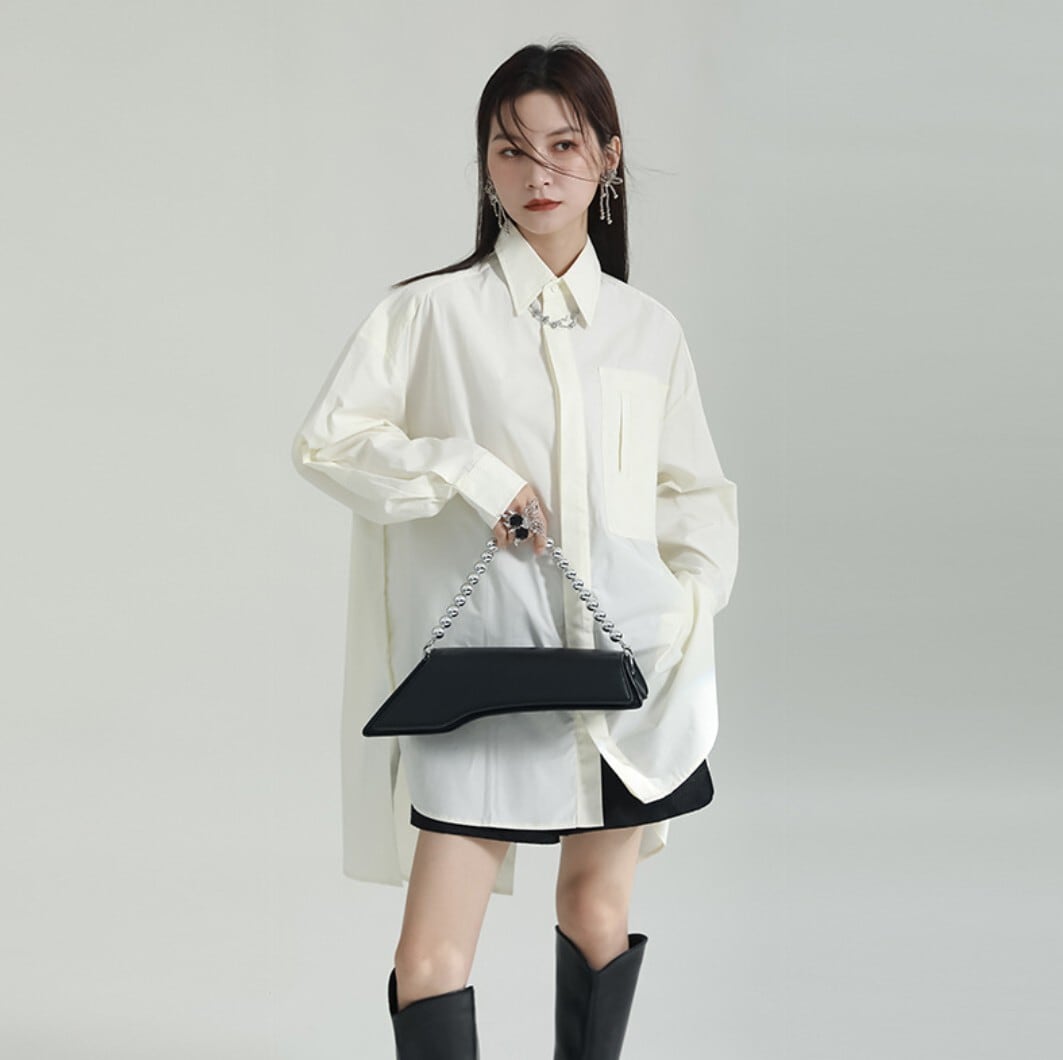 前後差バックロングシャツ(ブラック/ホワイト/ブルー) / 韓国モード